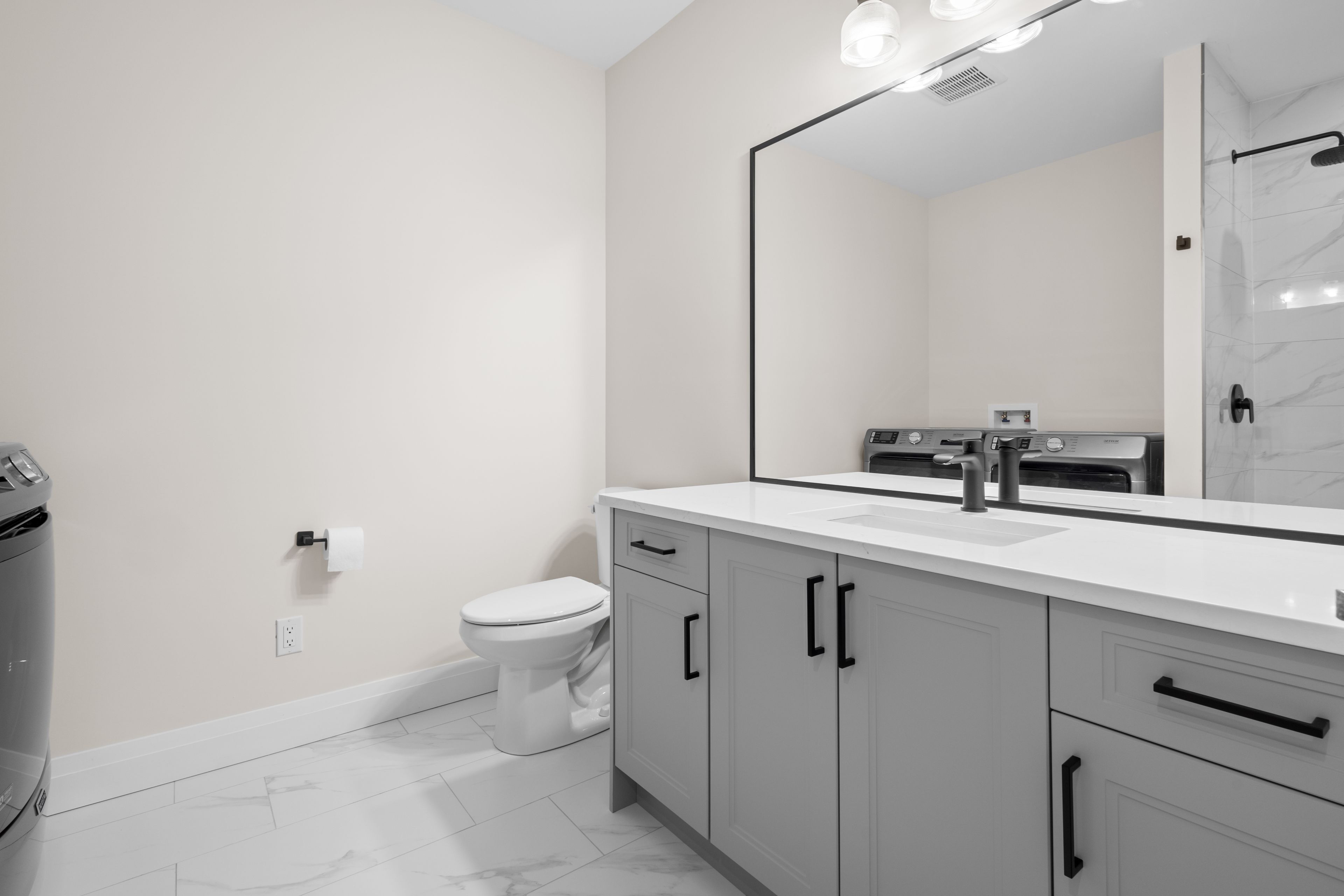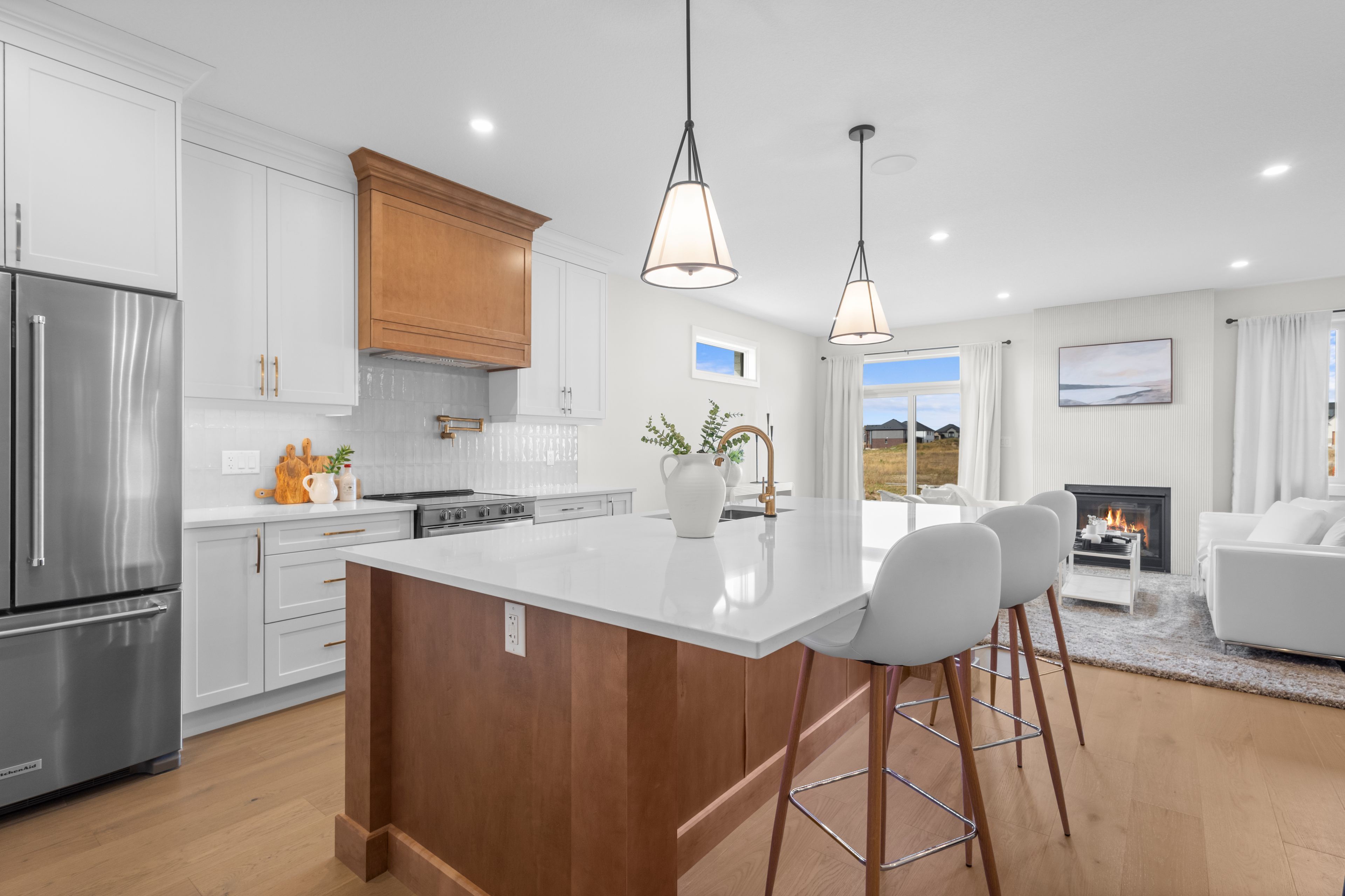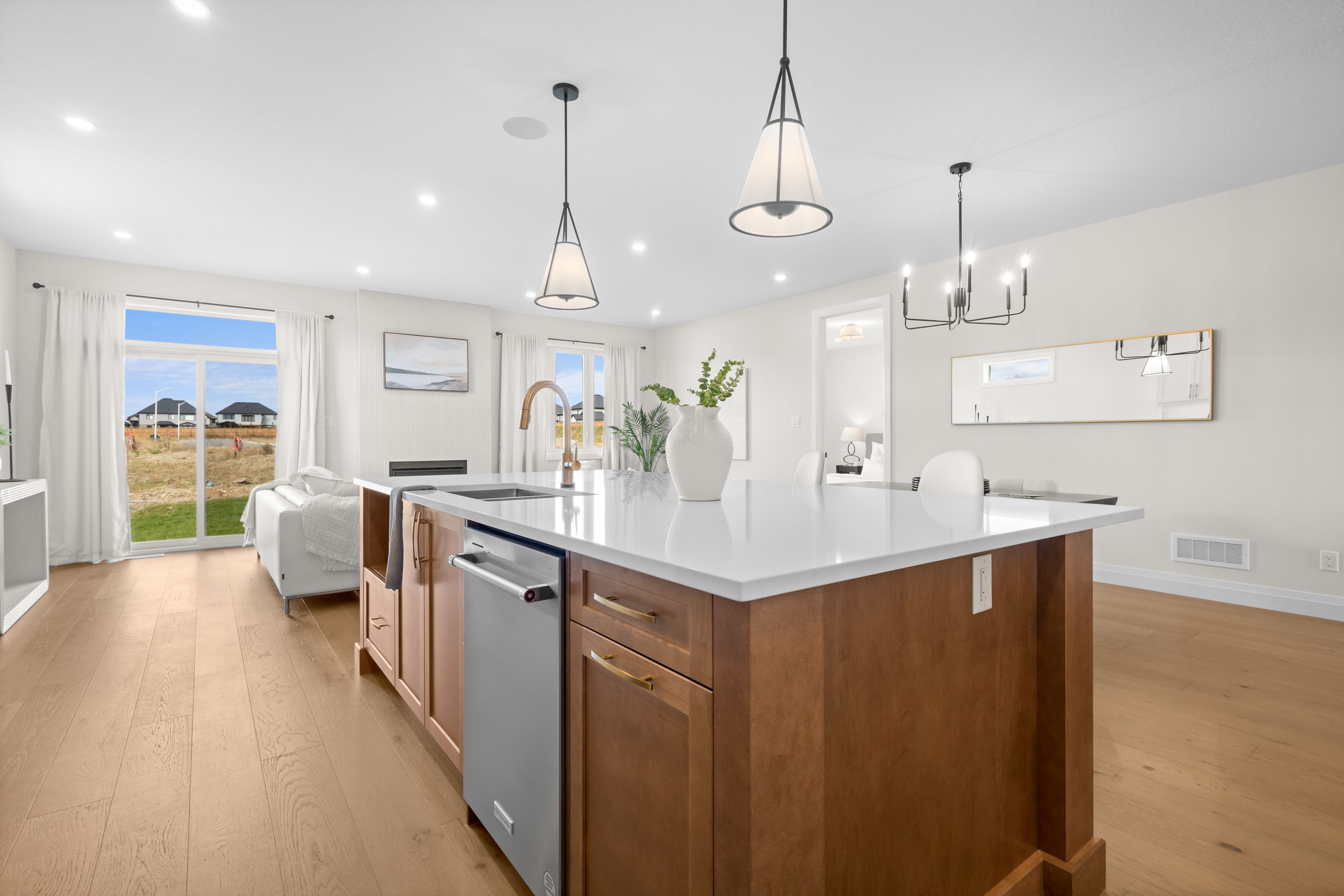 • Quality finishes like 9' ceilings, quartz countertops, and engineered hardwood.