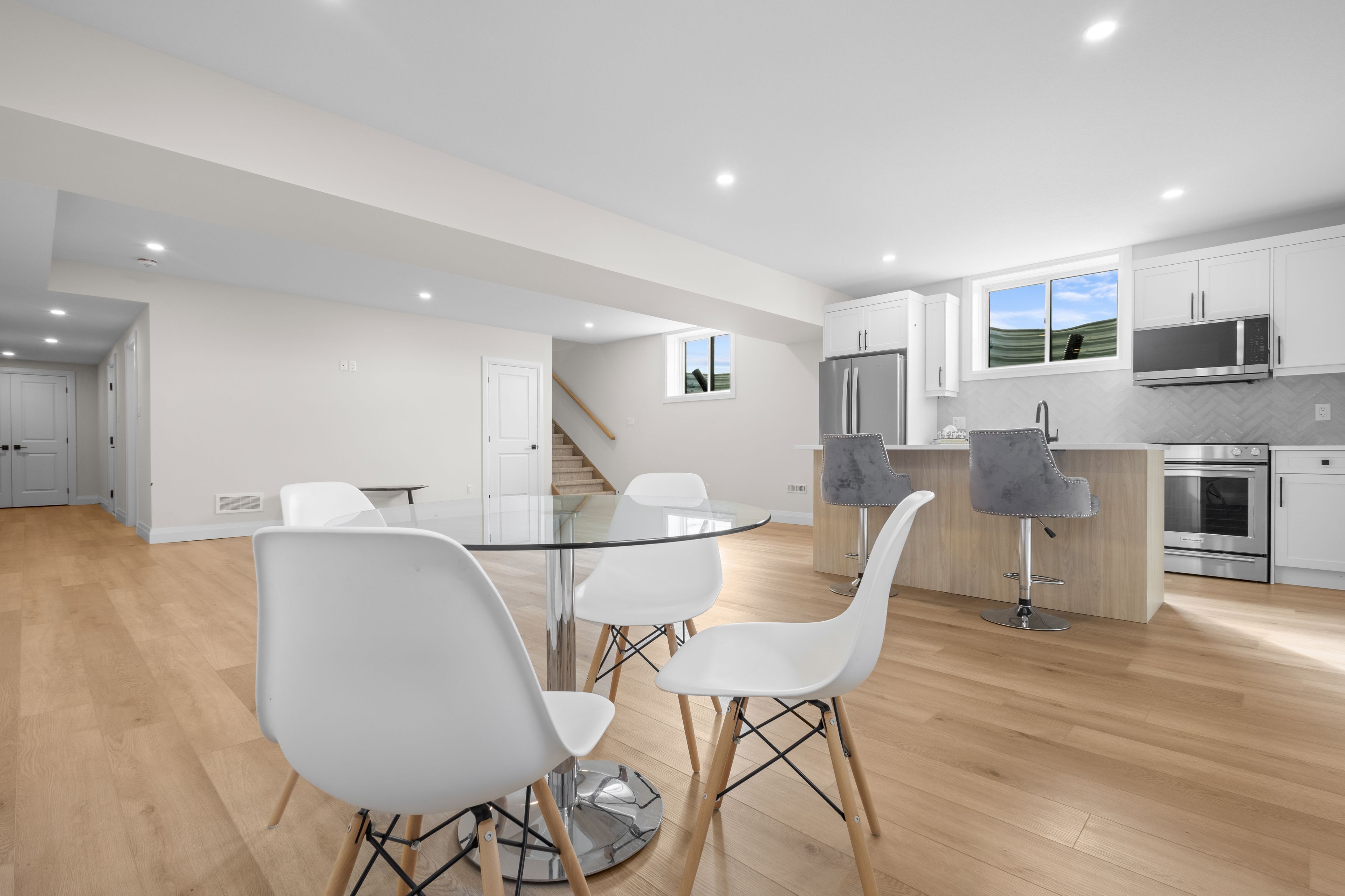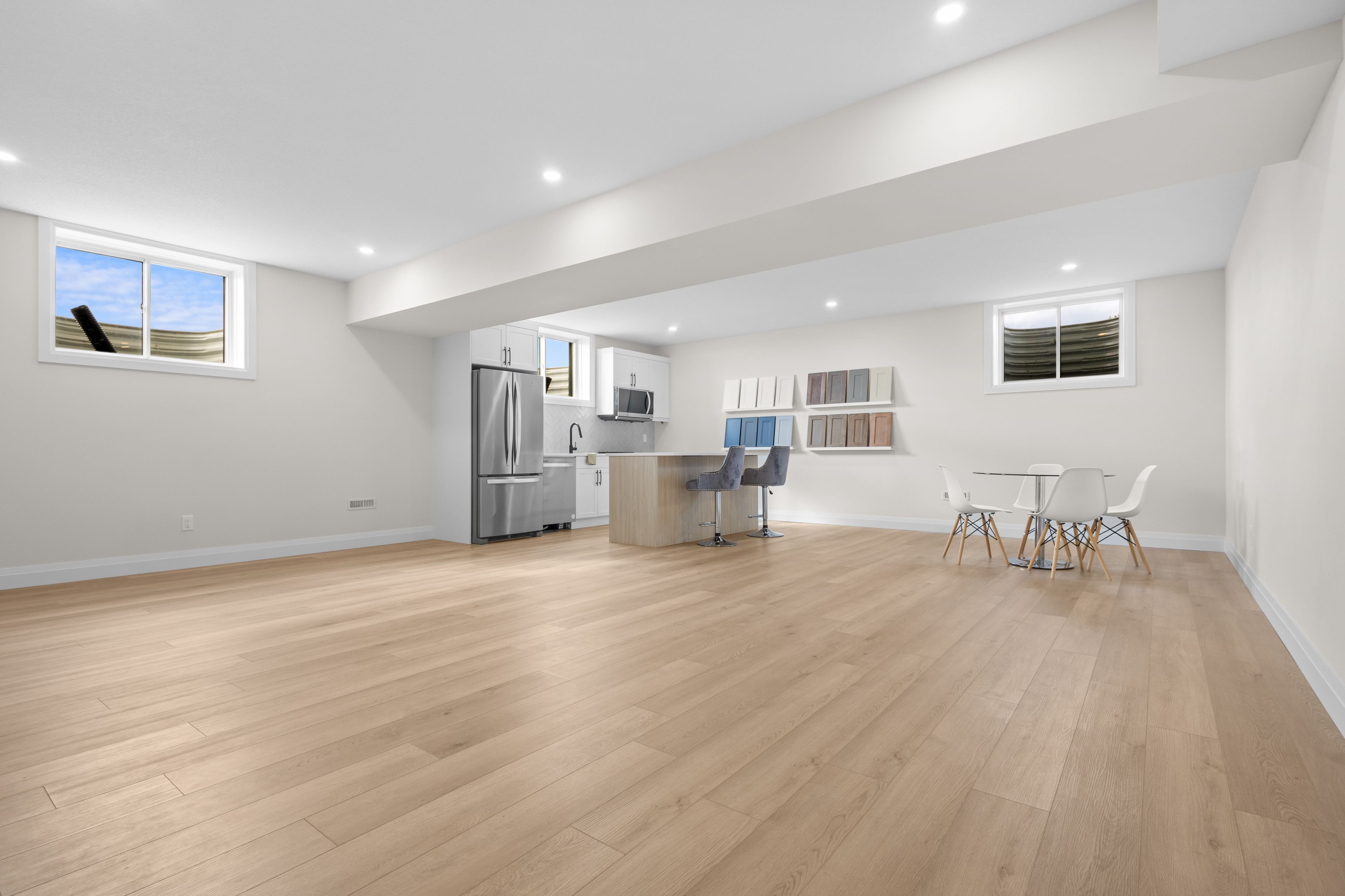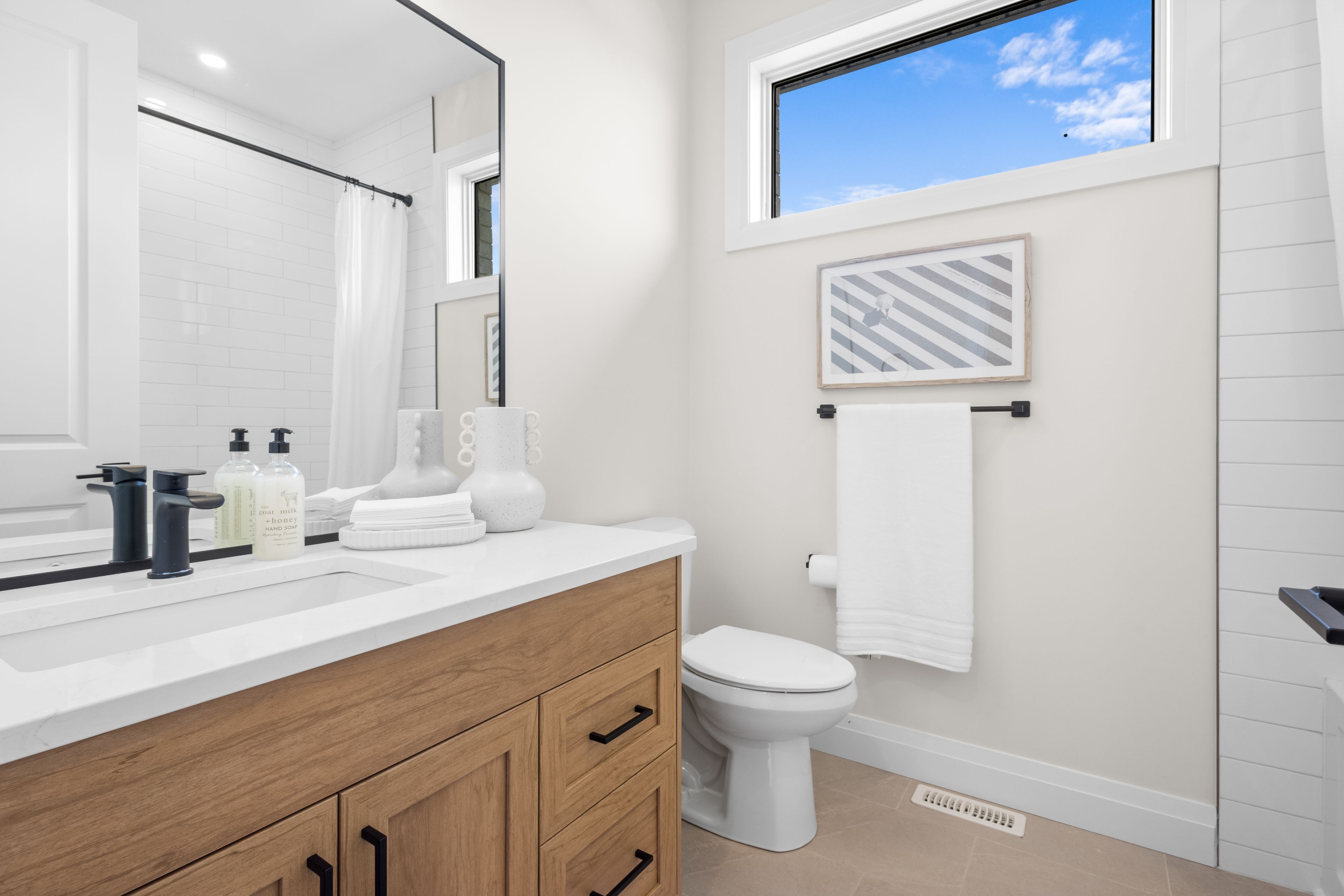 • Quality finishes like 9' ceilings, quartz countertops, and engineered hardwood.