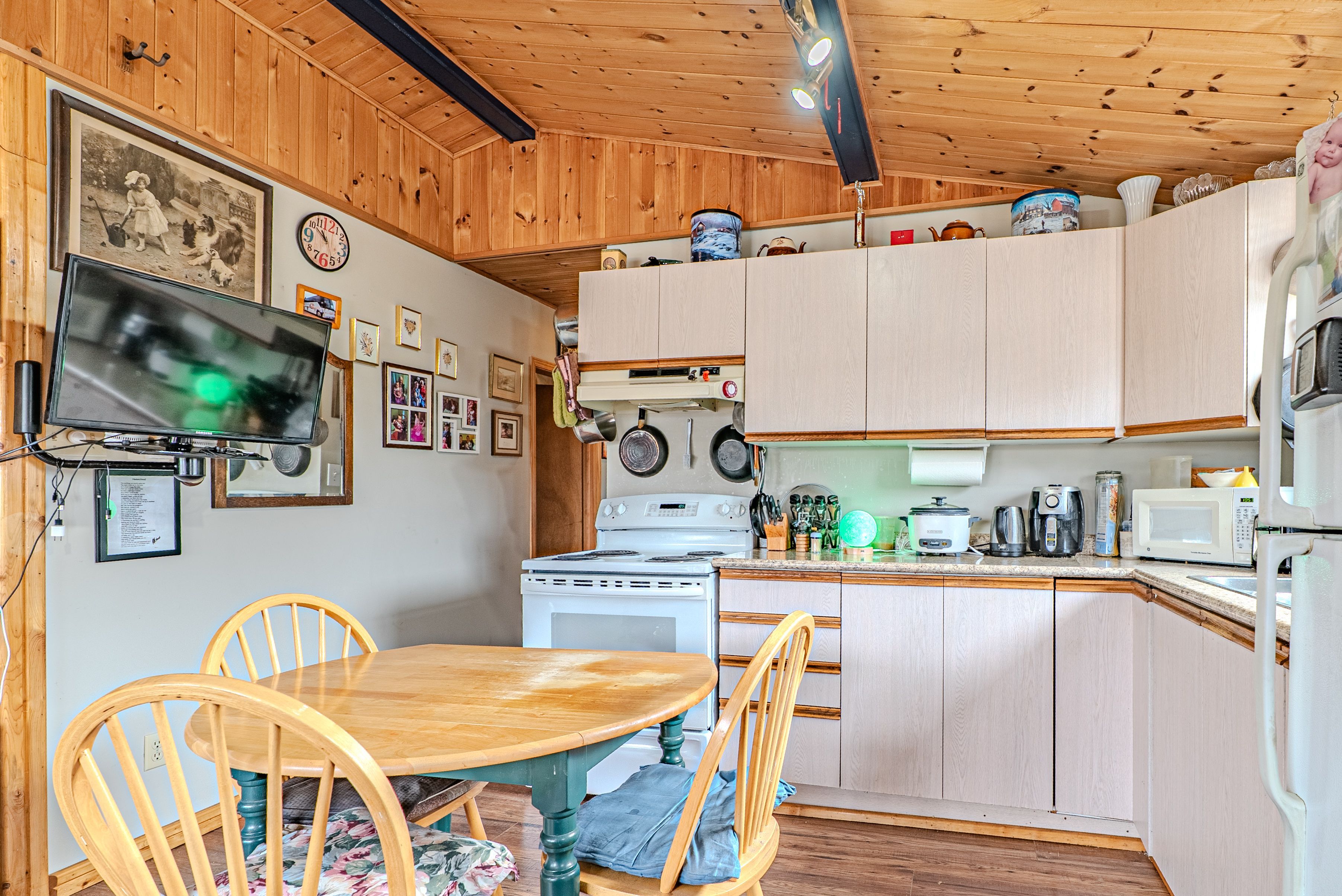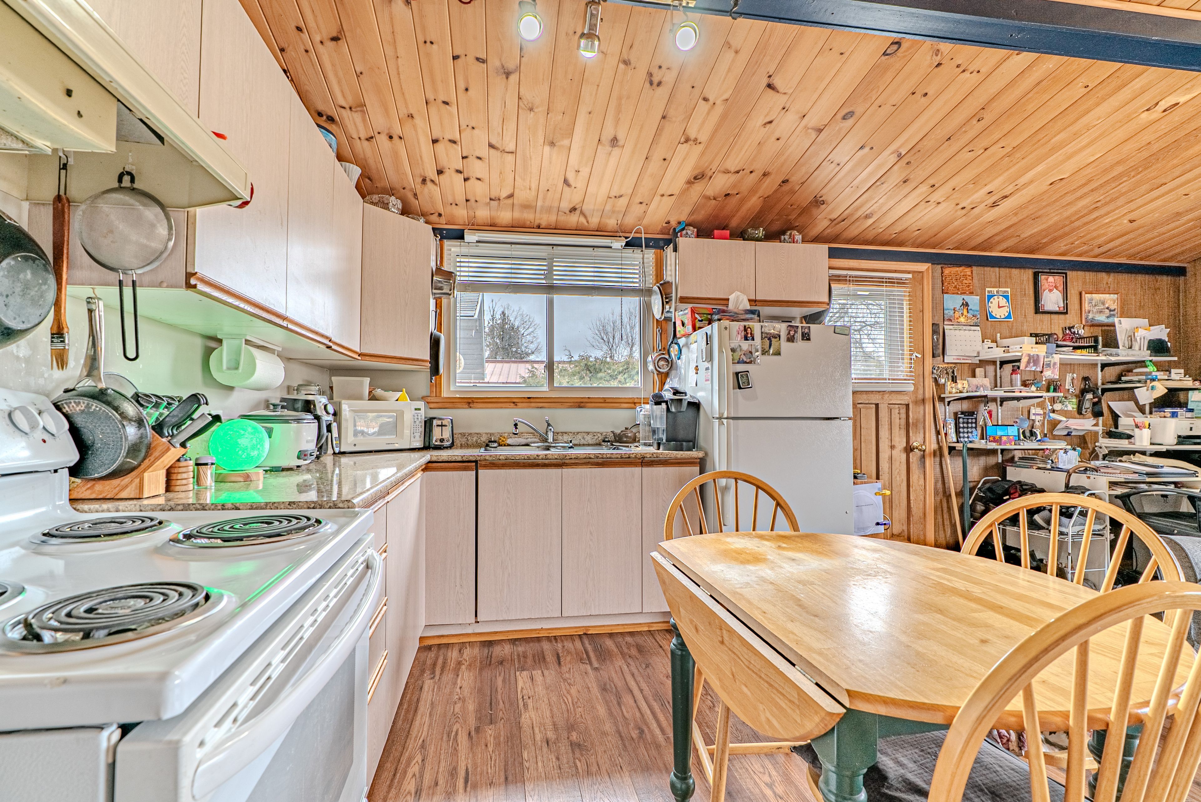 Charming 2-bedroom bungalow outside of fenelon falls offering great potential for first-time buyers, investors, or those looking to downsize. This home features an eat-in kitchen, a bright living room with a propane stove and walkouts to the deck, a 4-piece bath, 2 bedrooms, and convenient main floor laundry. Situated on a spacious lot with a large driveway providing ample parking, plus a detached heated single car garage. Enjoy public water access just steps away at the end of the road, perfect for making the most of summer in the kawarthas.