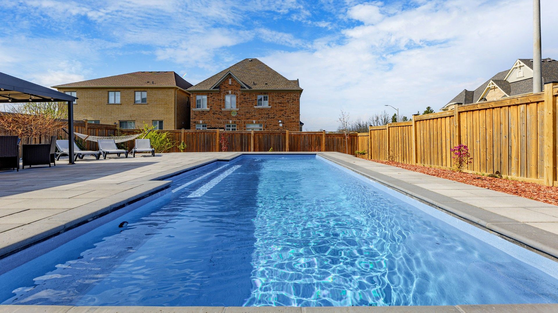 • Backyard oasis features a heated saltwater pool for relaxation.