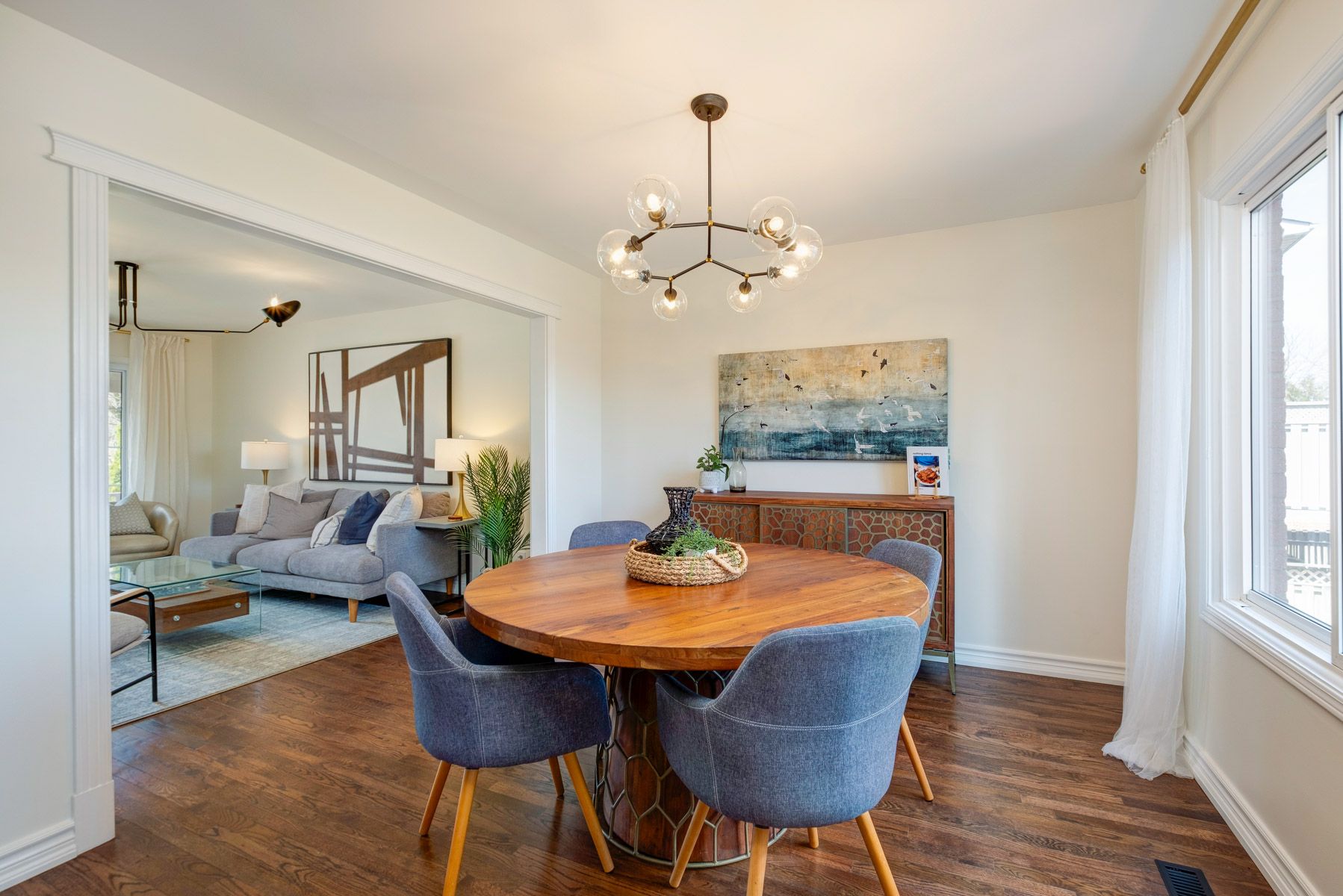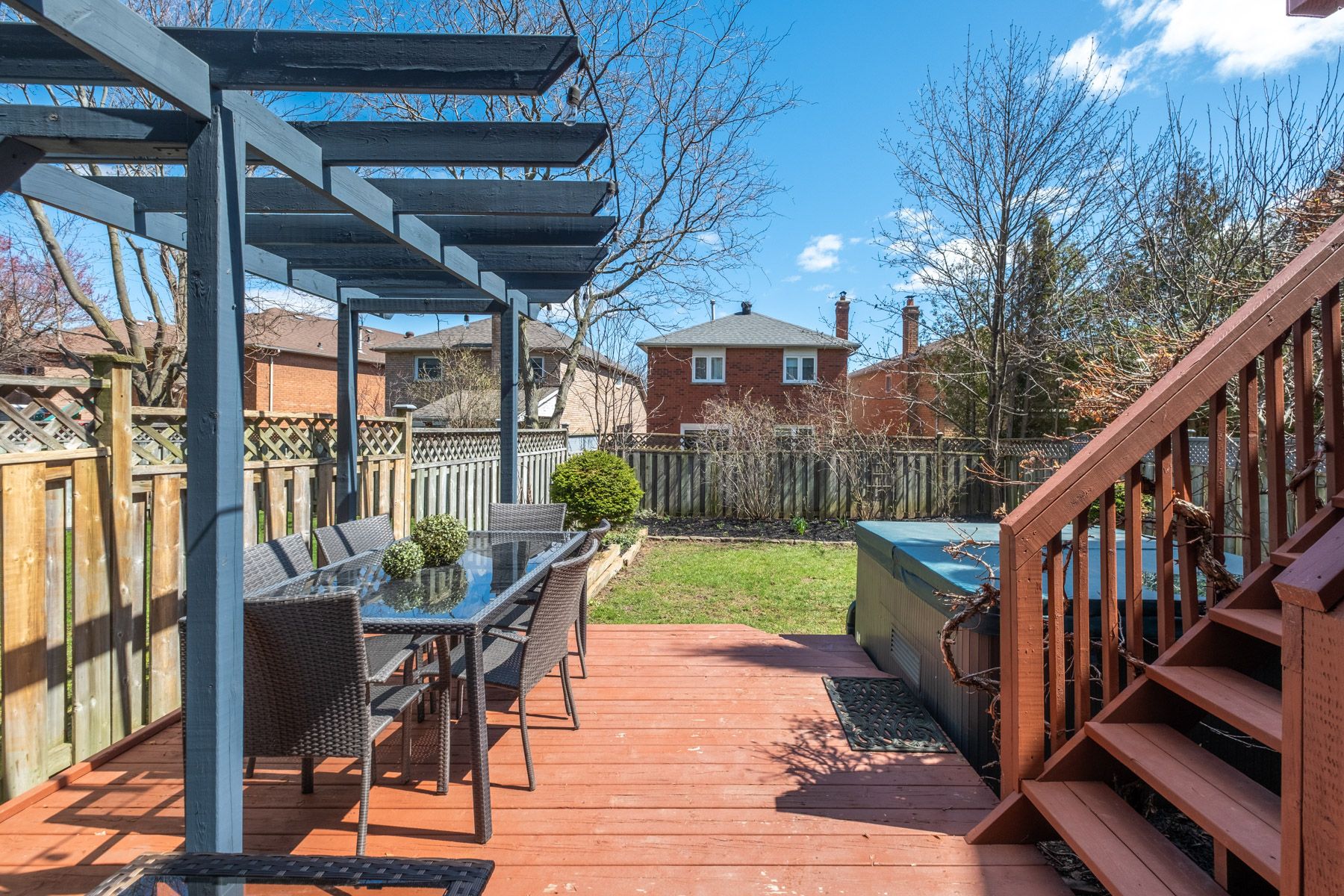 This stylish home blends classic charm with thoughtful, quality upgrades throughout. Filled with natural light, the main level offers a functional layout for family living, with separate living and dining areas and refinished oak hardwood floors. The renovated kitchen, featuring bordeaux granite and custom cabinetry, overlooks the backyard and provides direct walkout access to a two-level deck- ideal for indoor-outdoor entertaining. Upstairs, the spacious primary bedroom includes a walk-in closet and a private ensuite, complemented by two additional well-sized bedrooms and a full bath. The finished basement offers flexibility, currently set up as a home gym with a newly renovated bathroom, while still roughed-in for a kitchen-ideal for a future in-law suite with its own separate entrance. The backyard includes a dining area and hot tub, surrounded by gardens, creating a great space for relaxing or hosting. An attached garage adds convenience. Located in the rouge neighbourhood, just a 10-minute walk to rouge beach and rouge national urban park, with easy access to the go station and waterfront trails. Offering a rare combination of suburban tranquility, thoughtful upgrades, and lifestyle convenience, this beautifully maintained home is designed to impress.