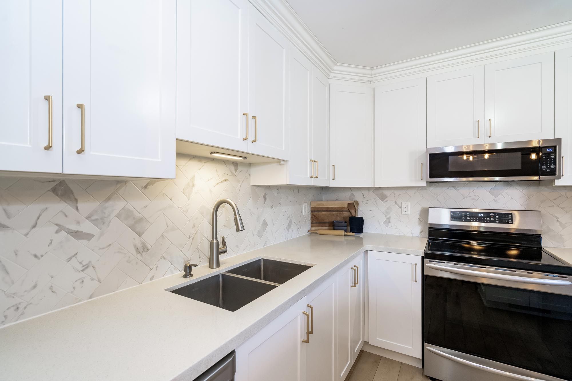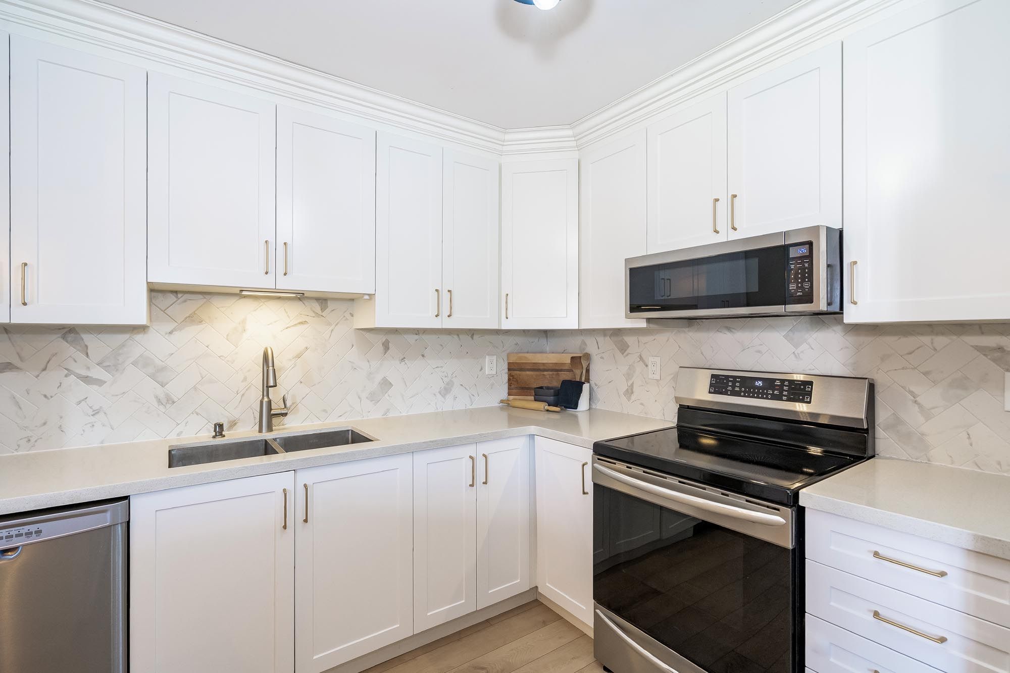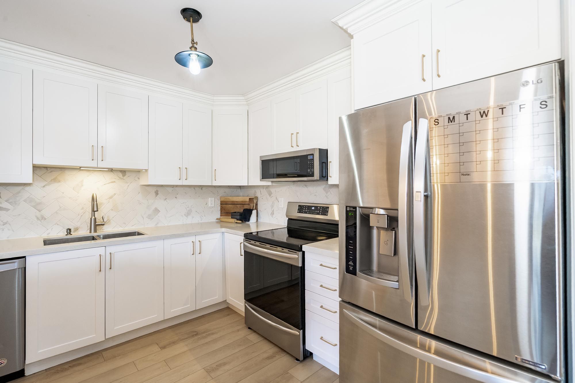 • Stylish main level kitchen with luxury flooring and a bright eat-in area.