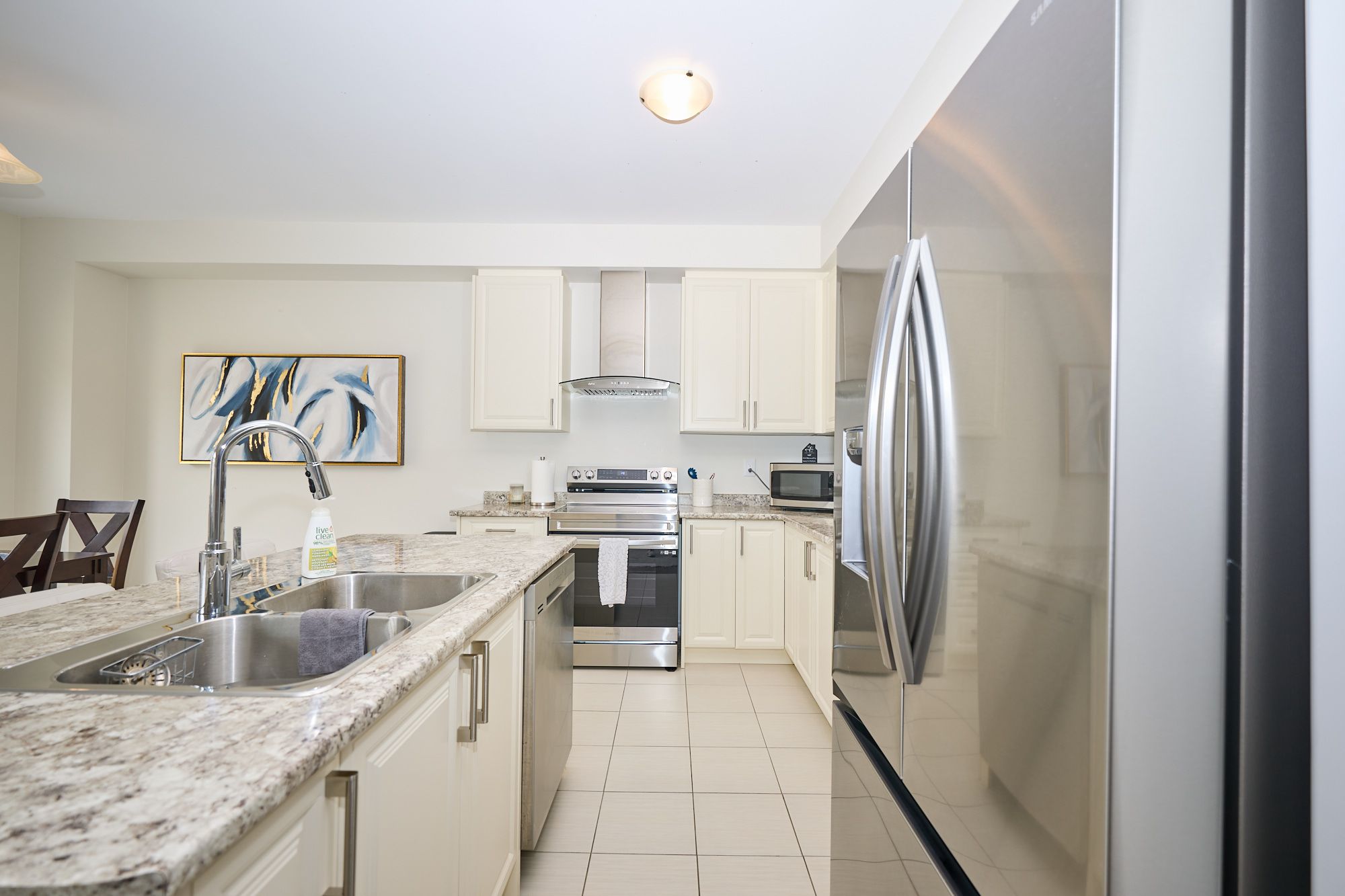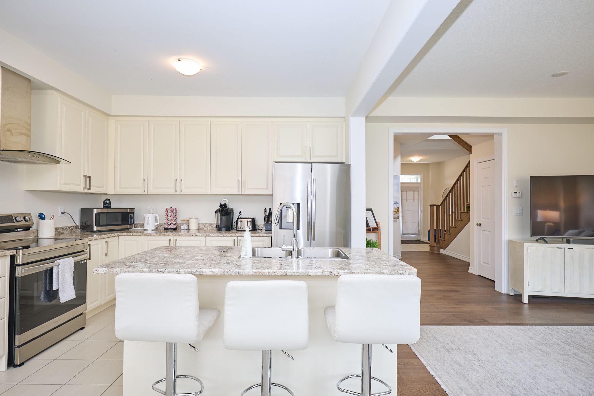 • Open-concept main level features a chef-inspired kitchen and dining area.