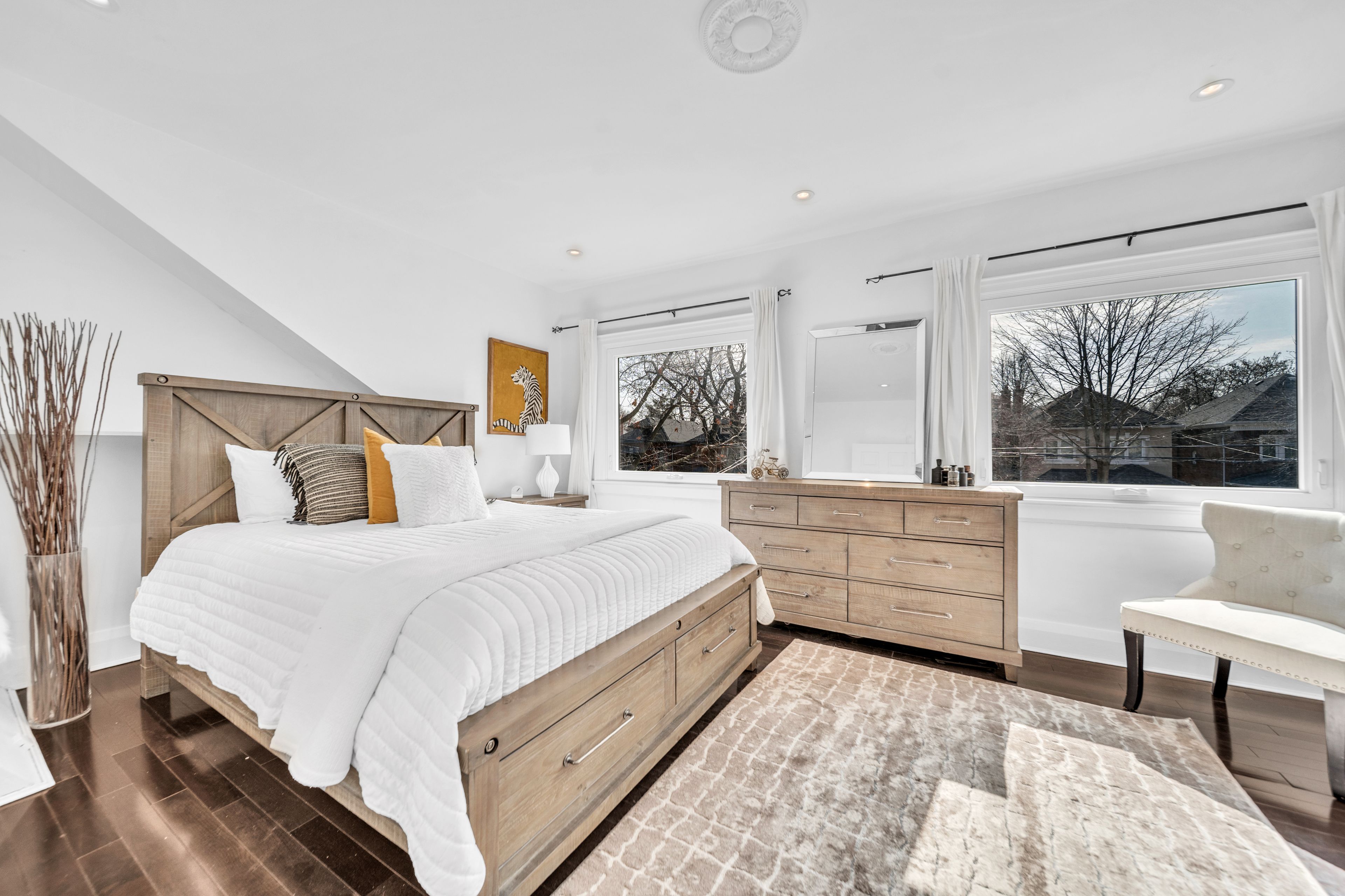 Beautifully renovated detached home in the highly sought-after lawrence park north community, just steps to yonge & lawrence. This charming home offers three spacious bedrooms and an exceptional blend of comfort, style, and convenience in one of toronto's most desirable neighbourhoods. The main floor features 9-foot ceilings, elegant hardwood flooring, pot lights, and a bright family room with a fireplace. The dining room overlooks the private backyard, creating a wonderful space for entertaining or relaxing with family. The main floor kitchen has been updated with newer cabinetry and appliances, and the home also features newer window coverings throughout. The property has been extensively renovated from top to bottom within the past five years, including major upgrades such as new windows, roof, soffits, gutters, insulation, furnace, air conditioning, hot water tank, updated electrical panel, deck, and front and back fencing. Additional highlights include a bbq gas line, upgraded fireplace mantle and casing, and modern finishes throughout. The fully finished and renovated basement with a separate entrance offers excellent additional living space and features pot lights, a renovated 4-piece bathroom, washer and dryer, and a second kitchen setup with existing electrical oven plug, hood fan connection, sink, and cabinetry. For added convenience, there is also a second washer and dryer on the second floor. Enjoy an unbeatable location within walking distance to the subway, top-rated schools, parks, restaurants, and shopping along yonge street. A rare opportunity to own a beautifully updated home in the heart of lawrence park north. 2024 windows, 2024 furnace, 2021 ac, 2024 fence& deck, 2024 major renovation top to bottom, 2021 roof, 2024 potlights, 2021 bbq gasline, 2 washer & dryers (upper and basement) the driveway accommodates parking for up to two small vehicles.