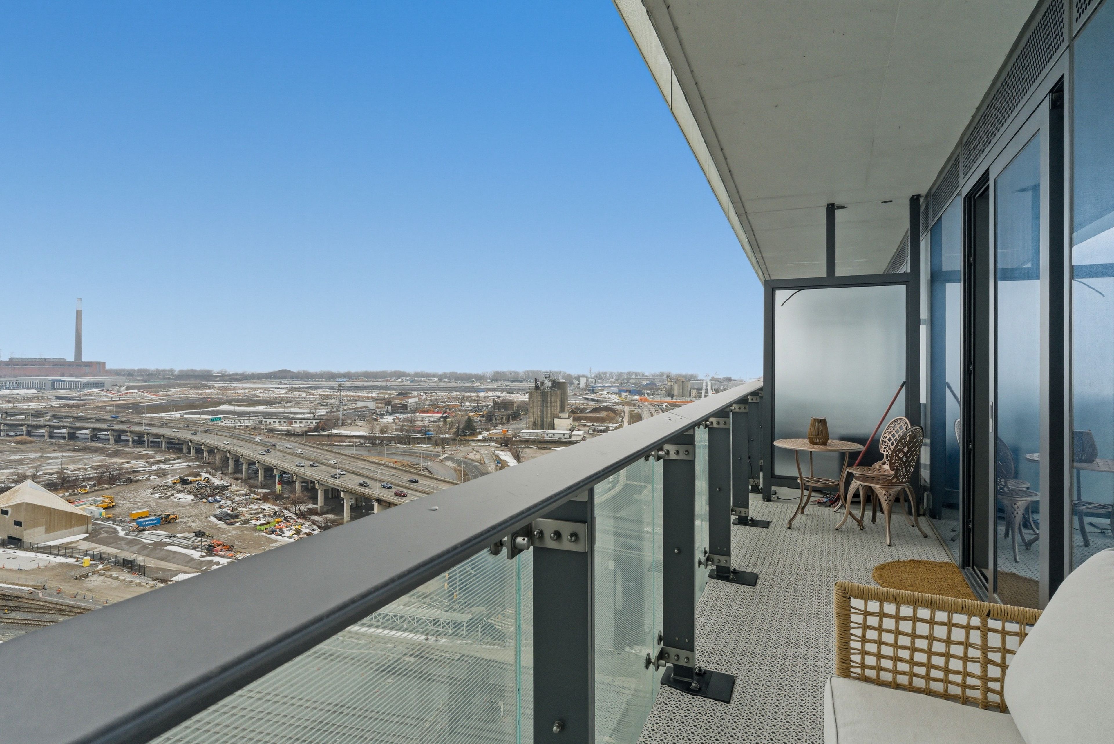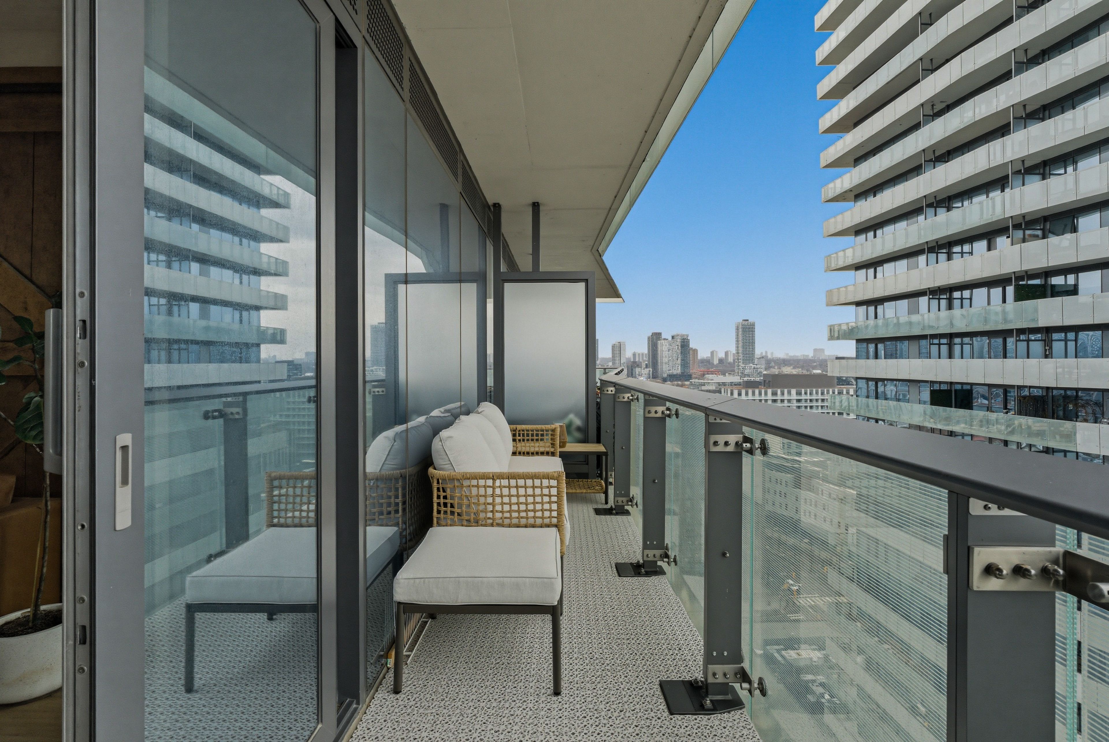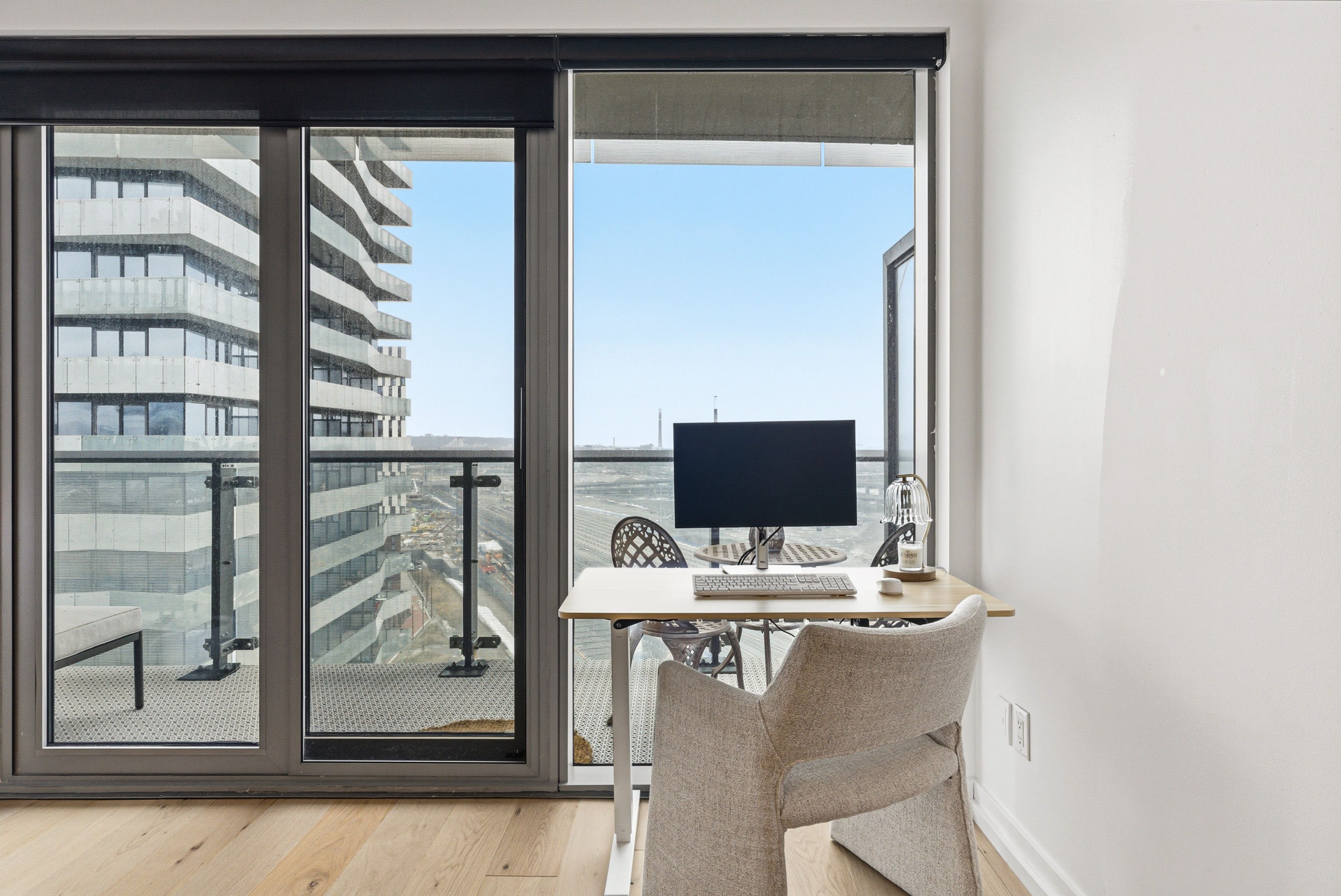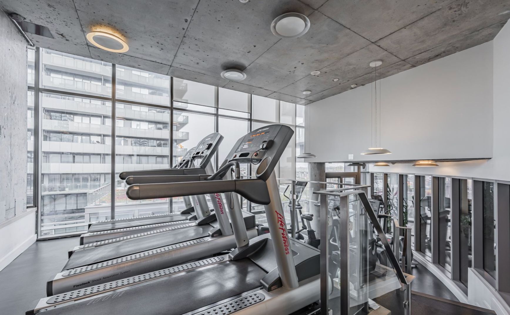 • Bright living space with floor-to-ceiling windows and lake views.