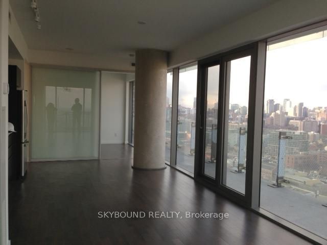 Distillery district corner split two bed, two bath on high floor with large wrap, round balcony with panoramic skyline view of a lake, north city and don river valley. Florida ceiling windows, ensuite spa like bath. Building amenities: outdoor pool, whirlpool and barbeque area, gym, yoga/pilates/game room and guest suites. 24 hour concierge. Steps to restaurants, cafes, shops, art, galleries, st. Lawrence, market, ttc, parks, waterfront, and much more.