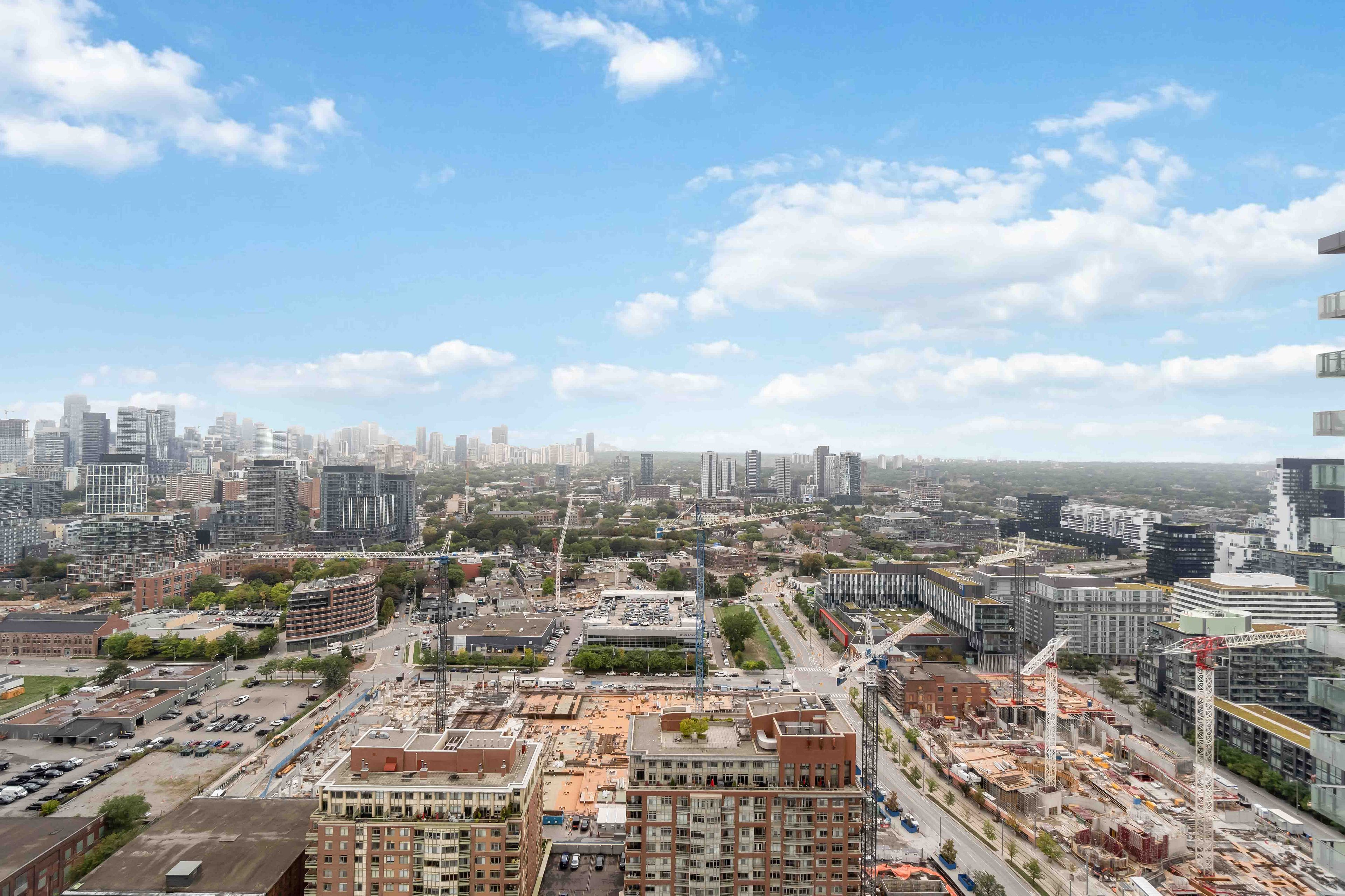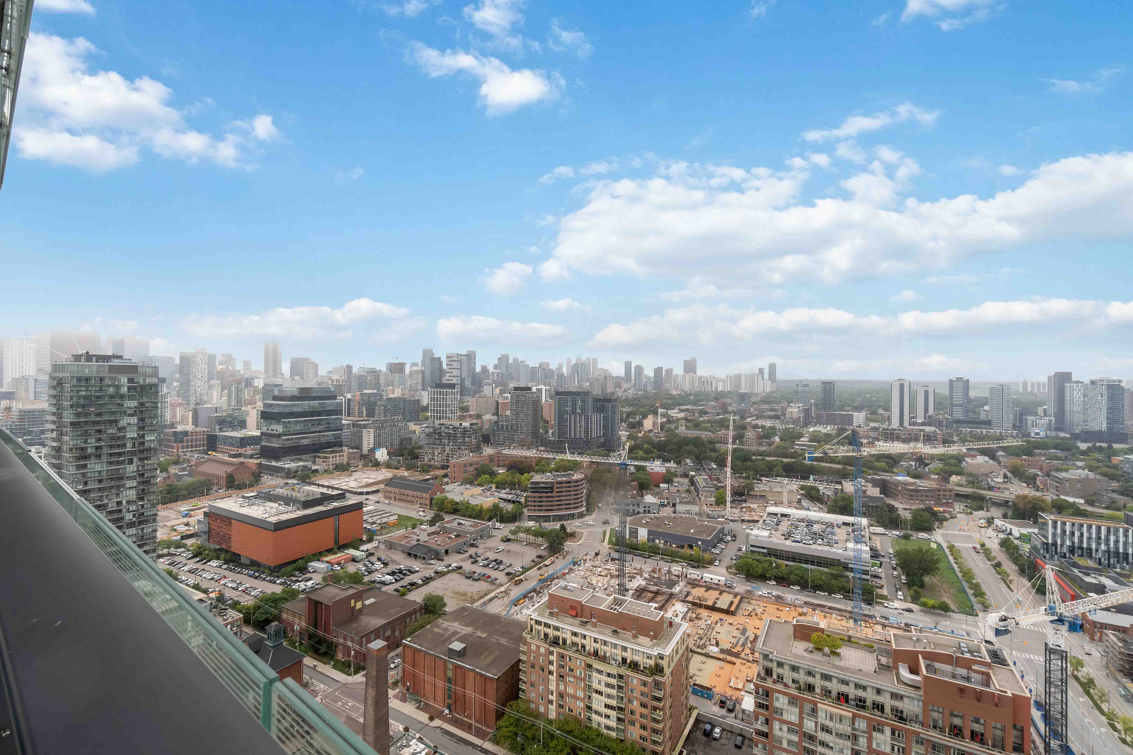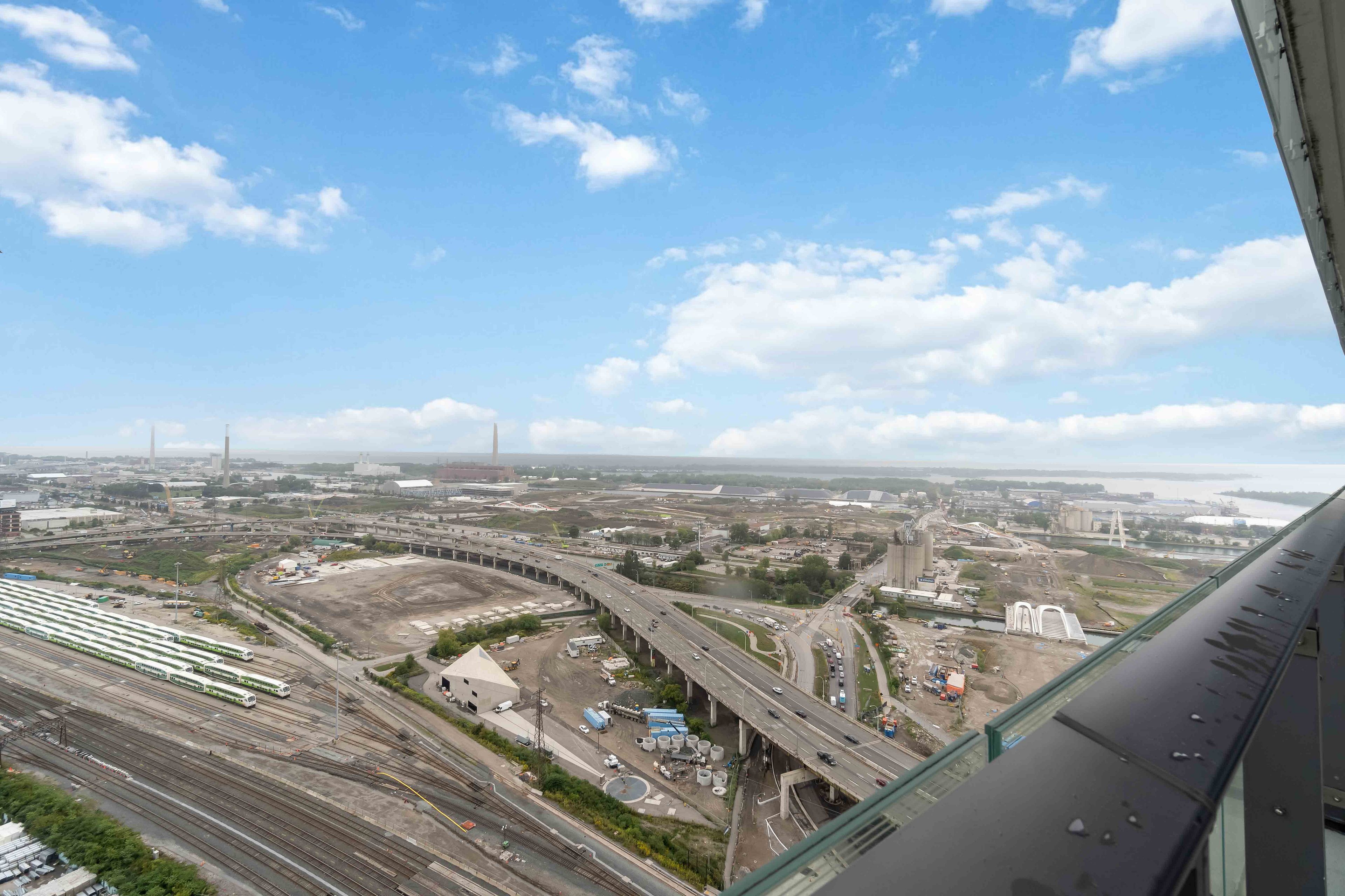 Bright and spacious corner unit on the 33rd floor in the heart of the iconic distillery district. This split 2-bedroom, 2-bath layout offers an open-concept design with 9 ft ceilings, updated flooring, and floor-to-ceiling windows framing stunning views of the city skyline and lake. The updated kitchen features refreshed cabinetry, a ceramic stovetop, built-in oven, built-in microwave, and built-in dishwasher plus a stacked ensuite washer/dryer for added convenience. Step outside onto your massive 365 sqft wrap-around balcony and take in the panoramic views. At street level, enjoy the best of the distillery district: unique cafes, acclaimed restaurants, boutique shops, and beautiful galleries, all steps from your door. Parking and locker included. Easy access to ttc, st. Lawrence market, the downtown core, gardiner expressway, lakeshore, and dvp.