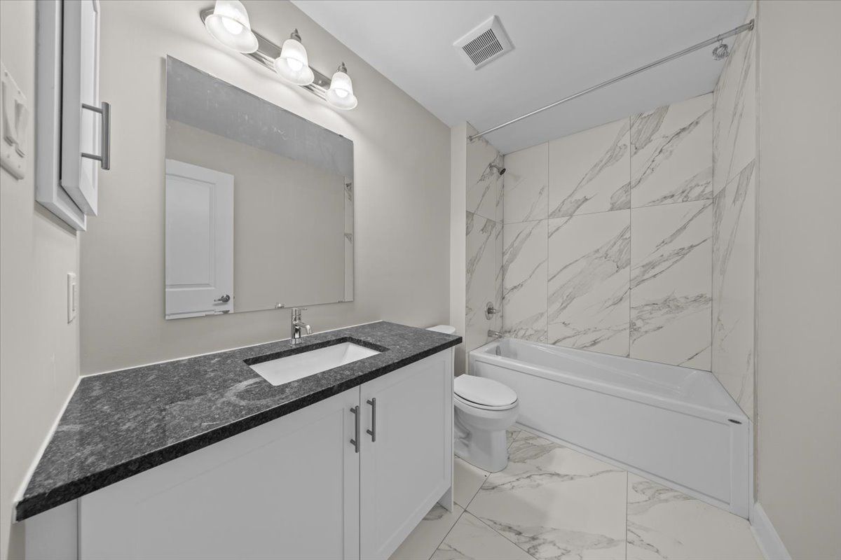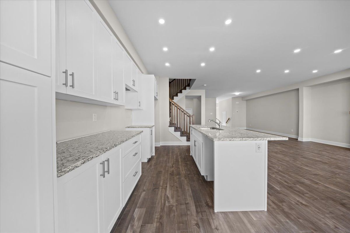 • Modern kitchen with granite countertops and breakfast bar for convenience.