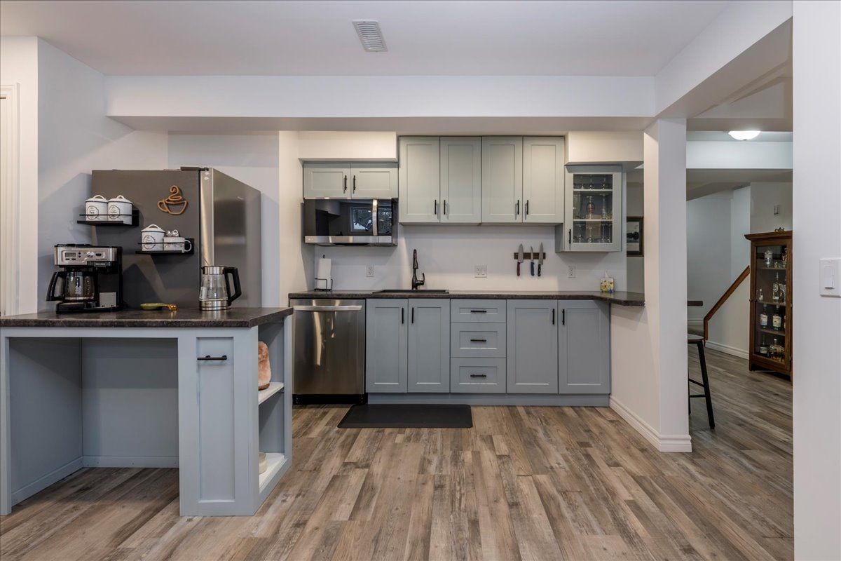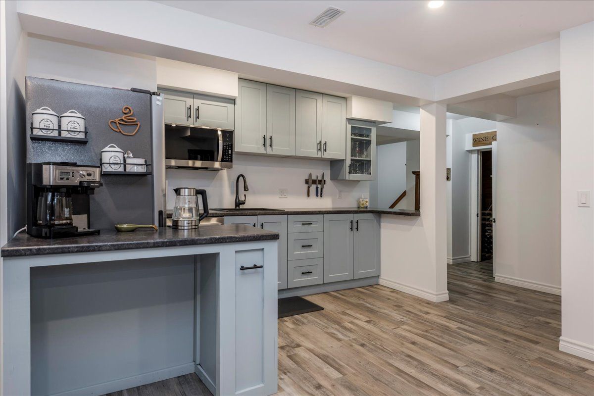Welcome to this beautifully upgraded 4 bedroom, two-storey home in the heart of bracebridge, where modern comfort meets the natural beauty of muskoka. Built in 2018 and designed with both style and functionality in mind, this move in ready home offers the perfect setting for families, entertainers, or multi-generational living. From the moment you step inside, you'll be impressed by the bright, open concept layout, filled with natural light and enhanced by upgraded hardwood flooring throughout the main living areas. The modern kitchen is the heart of the home, featuring stylish finishes, ample cabinetry, a pantry, and seamless flow into the dining and living spaces perfect for hosting, gathering, and everyday living. Upstairs, you'll find three spacious bedrooms, including a relaxing primary retreat designed for comfort at the end of the day. Thoughtfully upgraded bathrooms throughout the home add both style and convenience. The fully finished basement offers incredible added value, complete with its own kitchen, bedroom, and bathroom, ideal for extended family, overnight guests, or potential for a private in-law suite. A dedicated wine cellar adds a unique touch for those who love to entertain. Step outside and fall in love with the backyard setting. Sliding doors lead to a spacious deck overlooking mature trees, open greenery, and environmentally protected green space, offering exceptional privacy and a peaceful natural backdrop. Whether you're enjoying a quiet morning coffee, summer bbqs with friends, or evenings around the campfire, this outdoor space is made to be enjoyed. With main floor laundry, an attached two-car garage, and numerous upgrades throughout, this home checks all the boxes for buyers looking for space, versatility, and modern muskoka living. Opportunities like this don't come along often, book your private showing and experience all this beautiful bracebridge home has to offer.