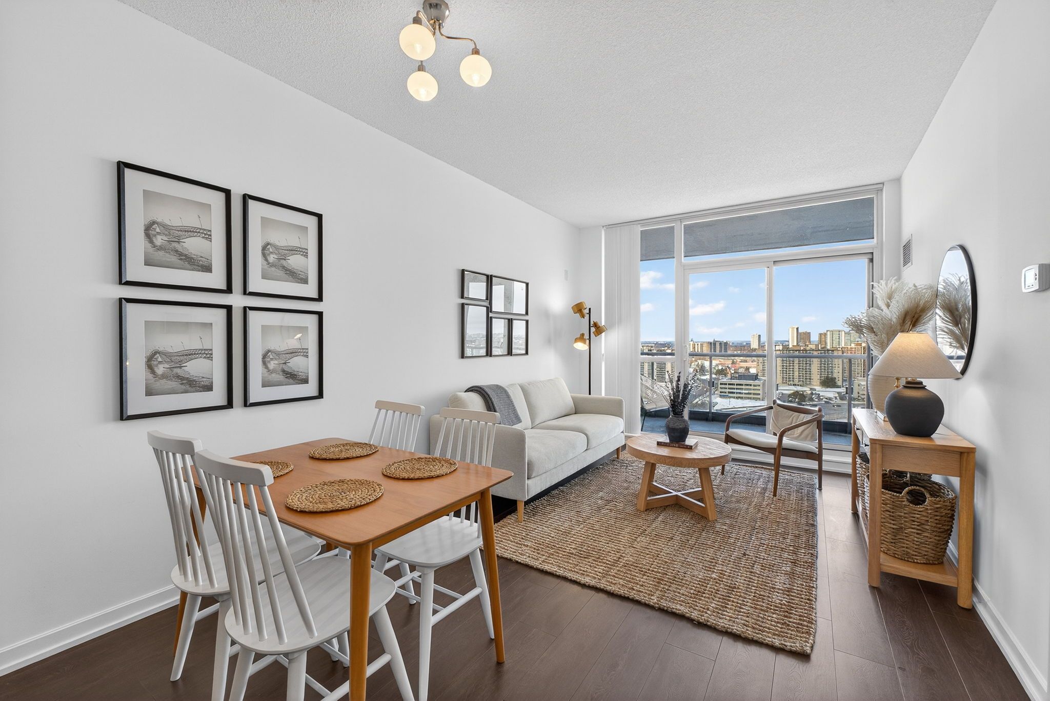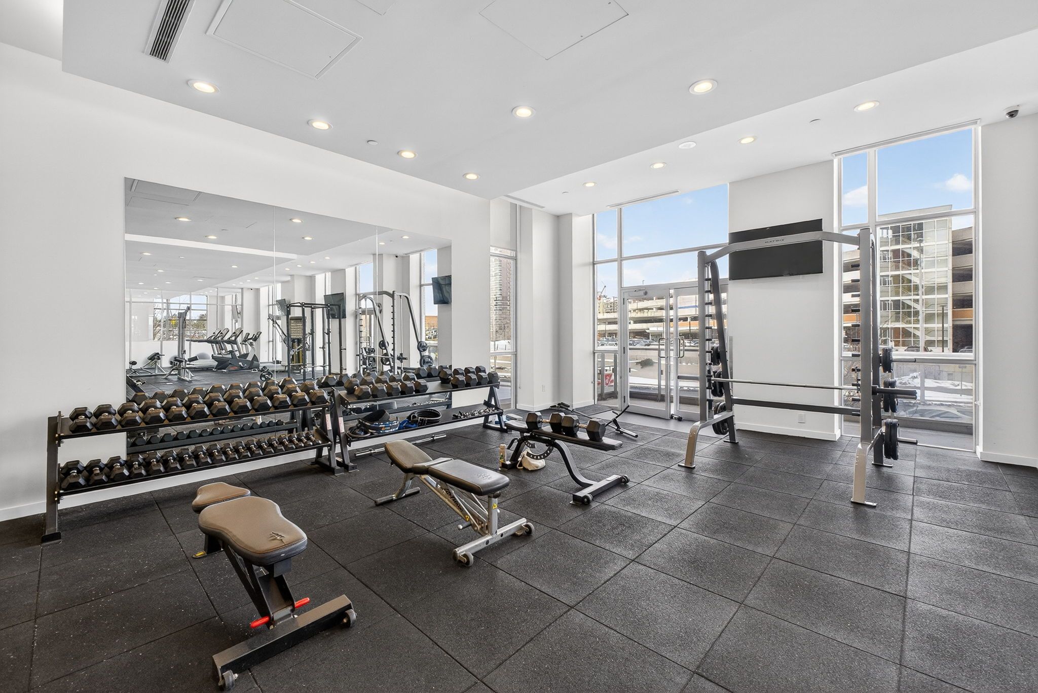 • Floor-to-ceiling windows and 9-foot ceilings fill the space with natural light.