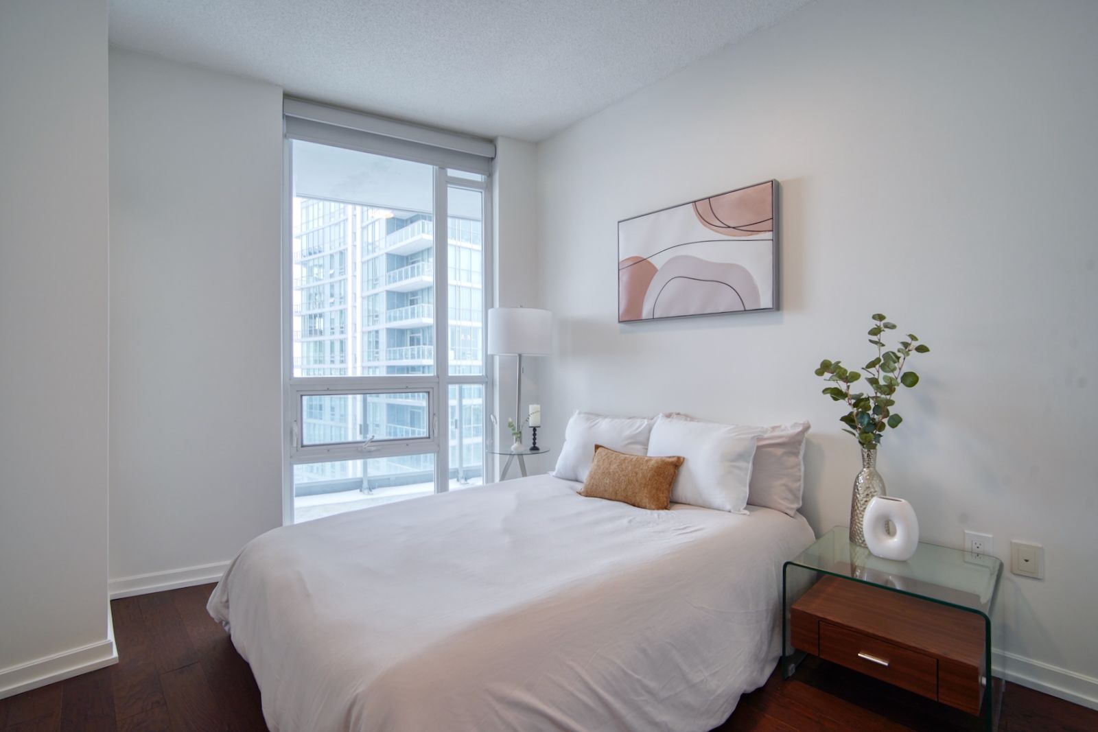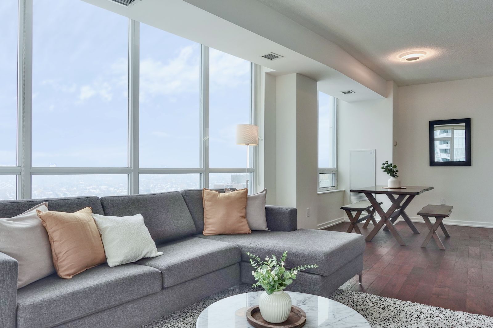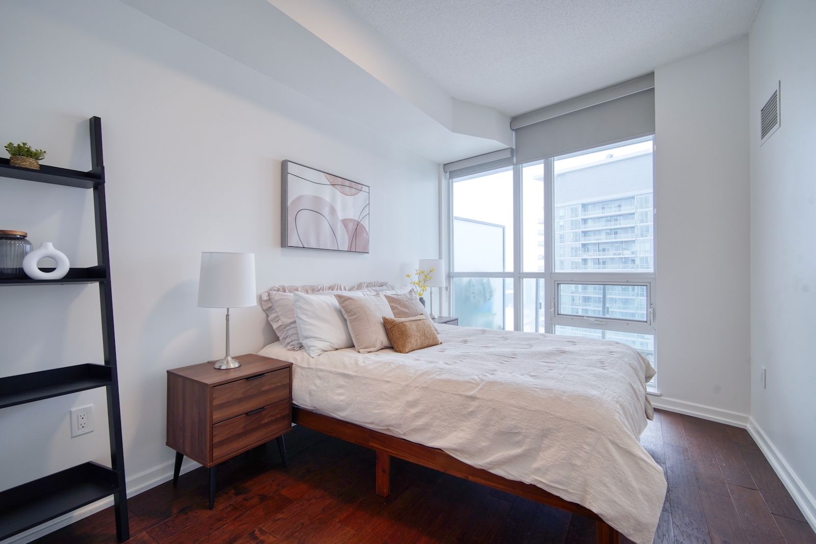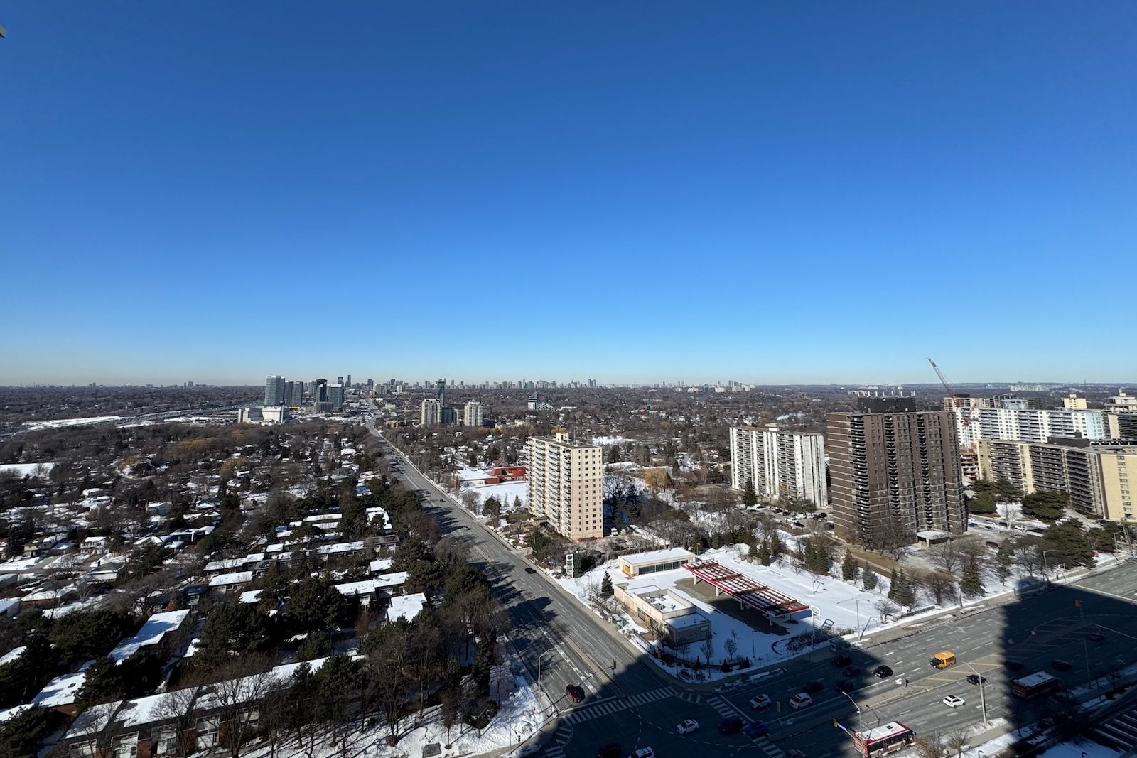 Step into sophisticated city living at unit 2006 located in emerald city. This 2-bedroom + den, 2-bath residence offers over 1,000 sq ft of sun-drenched, open-concept living space with southwest unobstructed views. Hardwood floors flow throughout, and the renovated luxury kitchen features quartz countertops, a centre island, and brand-new appliances including stove, dishwasher, and washer/dryer. The primary suite boasts a walk-in closet and 4-piece ensuite, while the second bedroom is bright and spacious. The den is perfect for a home office or additional storage. Includes one underground parking spot and locker. Location is unmatched: steps from don mills subway station with underground access to fairview mall, plus quick connections to highways 401 and 404, parks, and all conveniences of don mills & sheppard. Enjoy the luxury of a well-managed building with concierge and amenities, combining premium upgrades, functional layout, and a rare high-floor location.