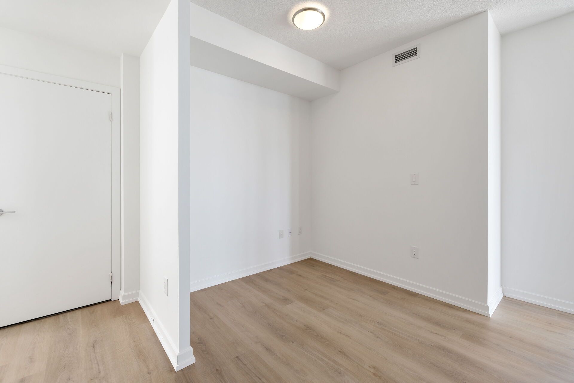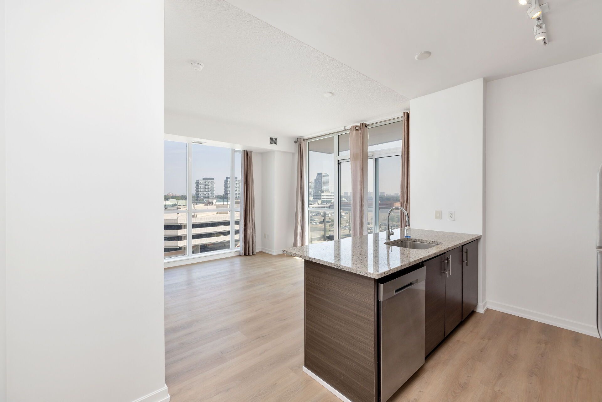 ***bright corner unit *** highly desirable layout must see! Welcome to emerald city 1, a luxury condo in the heart of north york. This bright and spacious 1 bedroom + den suite features a functional open-concept layout with no wasted space, floor to ceiling windows, 9 ft ceilings, and modern laminate flooring throughout. The versatile den is ideal for a home office or guest space. Enjoy a sleek kitchen perfect for entertaining, with ample cabinetry and counter space. Sun filled living and dining areas create a warm and inviting atmosphere. Includes 1 parking spot (conveniently located near the elevator) and 1 locker. Experience resort style living with premium amenities: 24 hour concierge, indoor pool, fully equipped gym, yoga & pilates studio, theatre room, whirlpool, party room, guest suites, outdoor terrace with bbqs & cabanas, and more. Unbeatable location directly across from fairview mall and just steps to don mills subway station with easy access to hwy 404/401. Walk to parks, schools, library, community centre, supermarkets, restaurants, and everyday conveniences. A fantastic opportunity in one of north york's most desirable neighborhoods. Some photos are virtually staged.