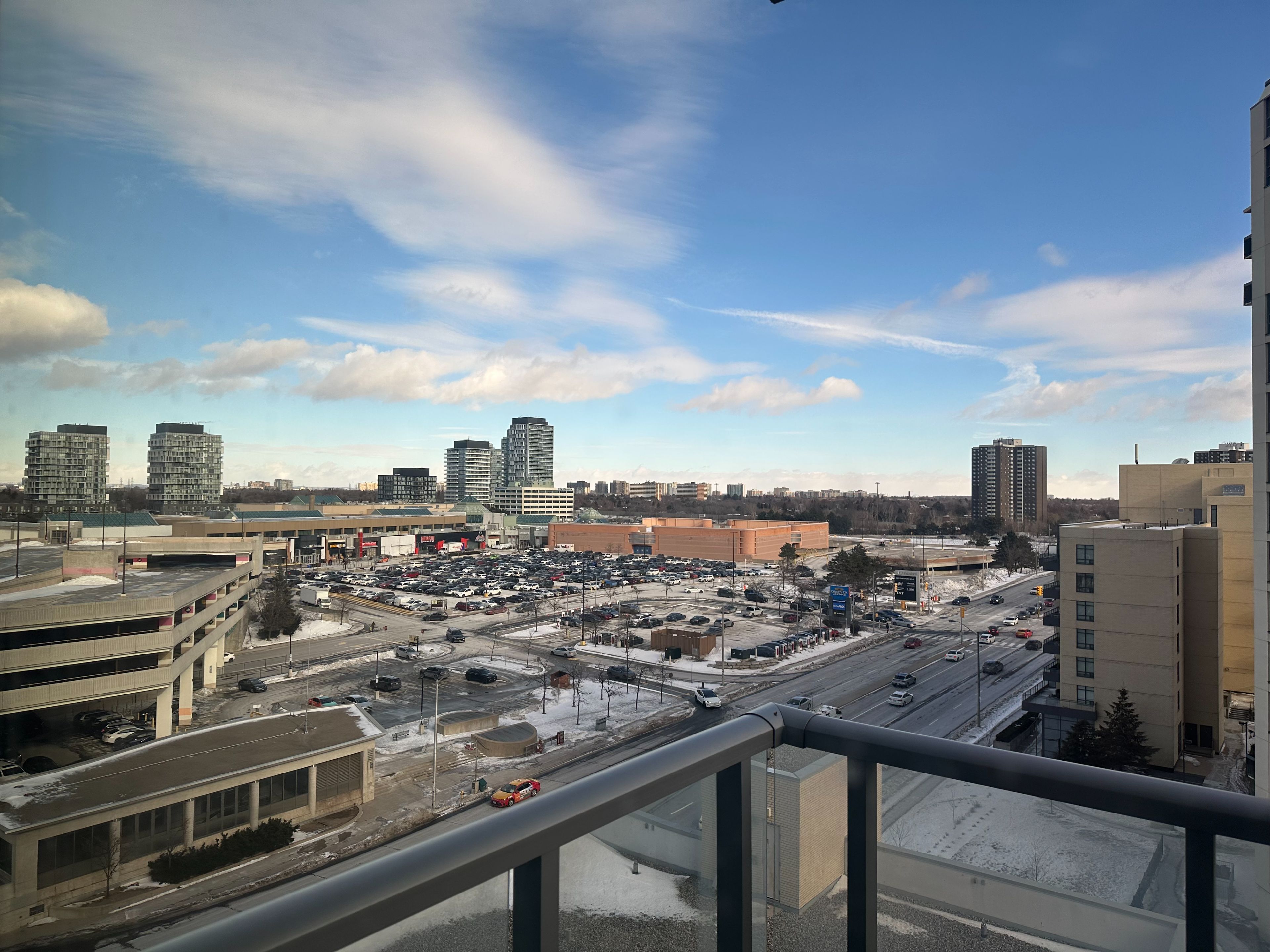 Luxury condo across from fairview mall. Professionally cleaned 1 bedroom + den. Approx 600 sq ft facing ne, very spacious and functional layout unit with 9 ft high ceiling, huge balcony, subway access at your door. Mins to 404 & 401. Full amenities: indoor pool, whirlpool, gym, yoga rm, theater, lounge, terrace, bbq area, party rm, guest suite & more.