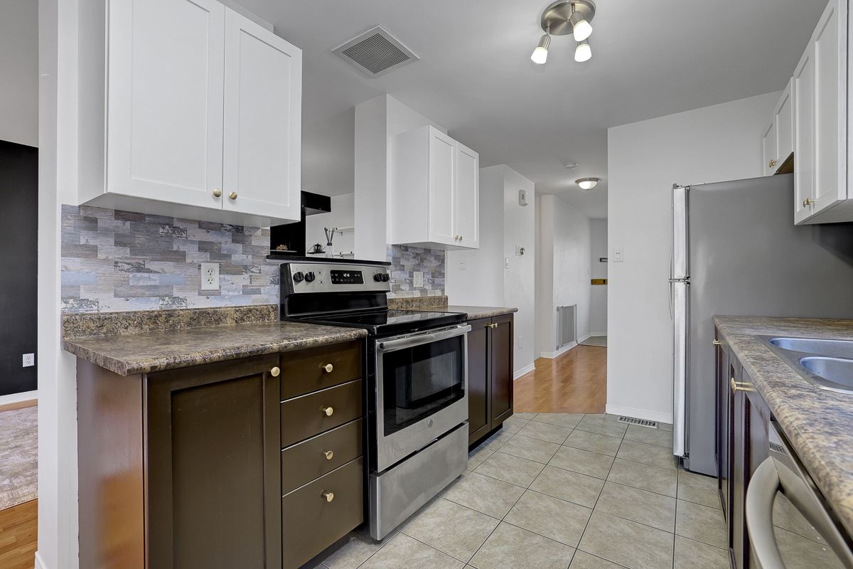 • Modern kitchen with stainless steel appliances and ample counter space.