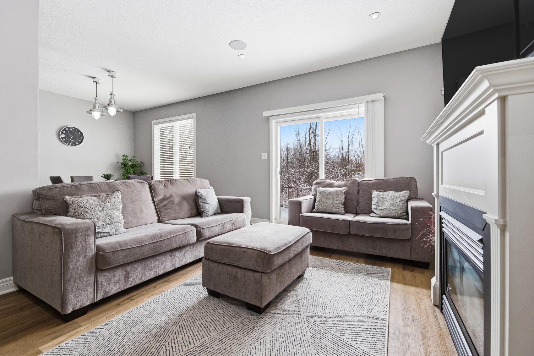 Nestled among gorgeous waterfront homes and just steps from lake ontario is 70 galileo drive, a highly desirable end-unit townhome backing onto peaceful greenspace. The bright main floor features 9-foot ceilings, a bedroom or office space, a cozy gas fireplace, and ample space for gatherings. The eat-in kitchen is both functional and stylish, complete with granite countertops, stainless steel appliances, and modern cabinetry that provides excellent storage and space for everyday living. Upstairs, you'll find two spacious bedrooms and a 5-piece ensuite featuring double sinks, a stand-alone tub, and a glass shower. The finished lower level adds even more versatile living space with an additional bedroom, a 3-piece bathroom, family room, and laundry area. With easy access to the qew and close proximity to the lake, location truly sets this home apart. Don't miss your chance to make it yours!