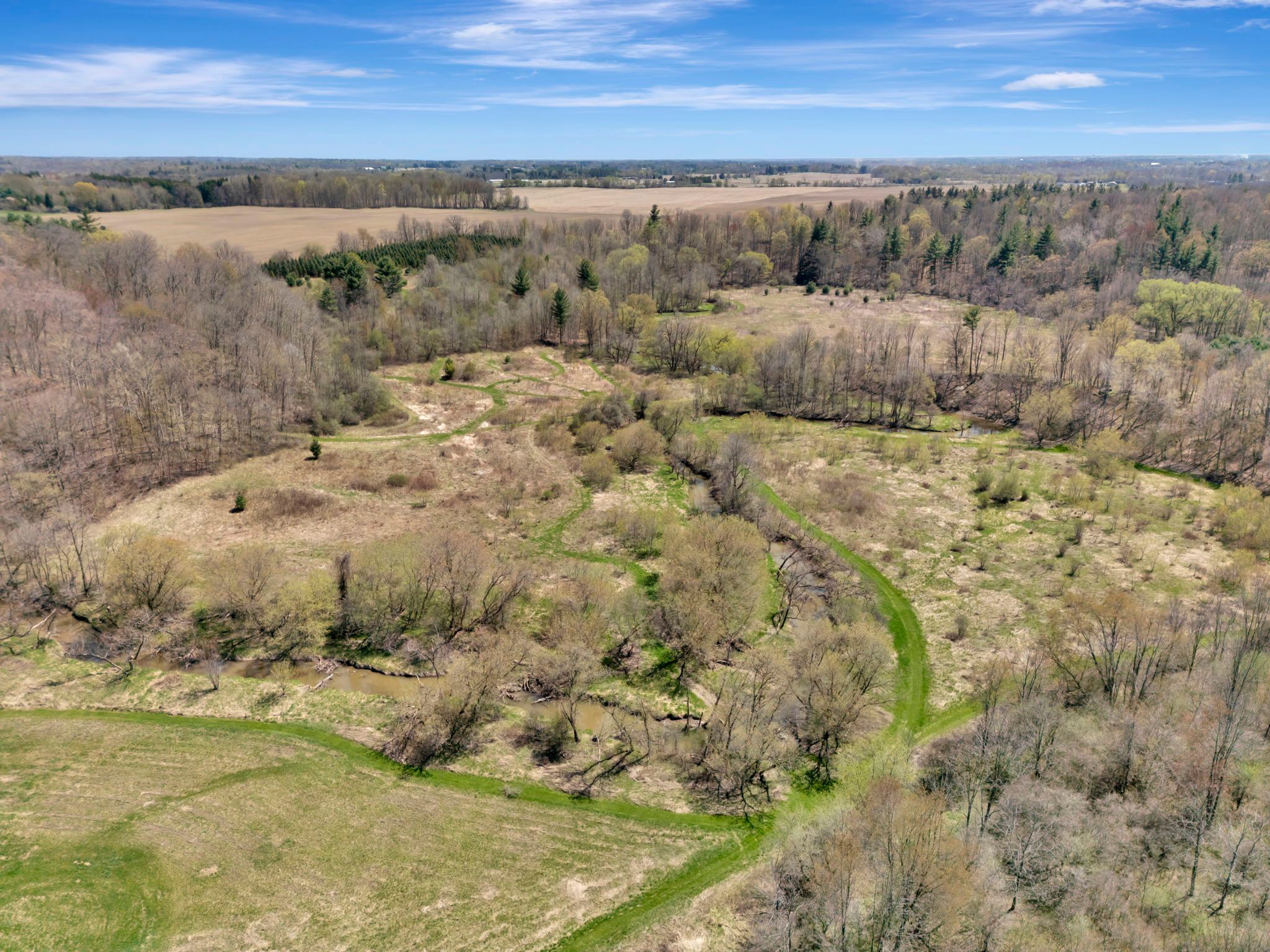 • Sprawling 57+ acre retreat with trails and Fairchild Creek running through it.