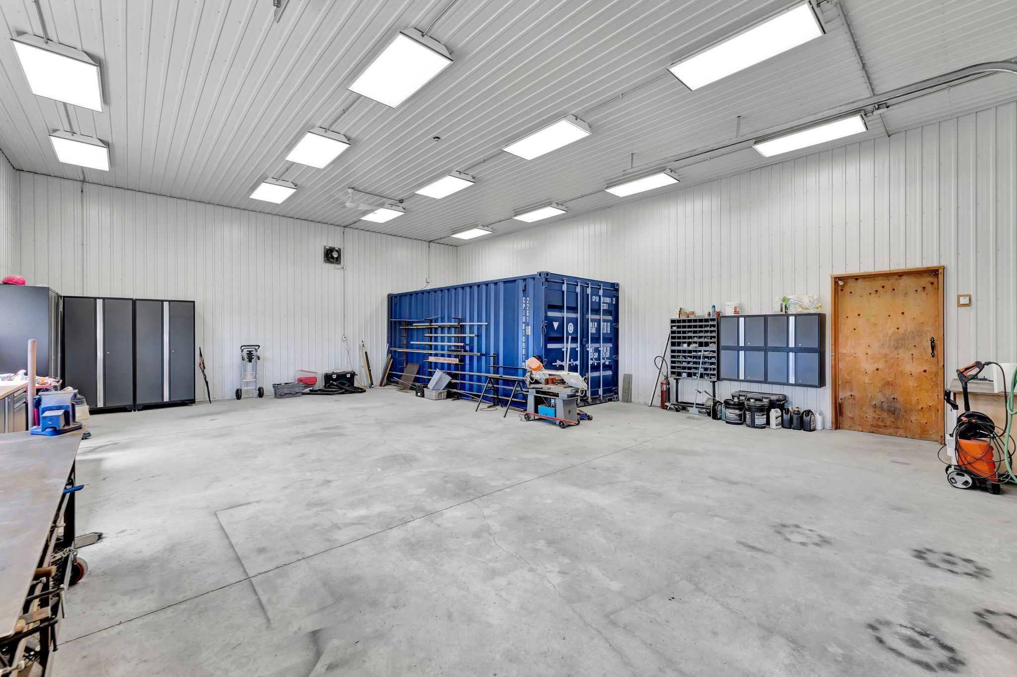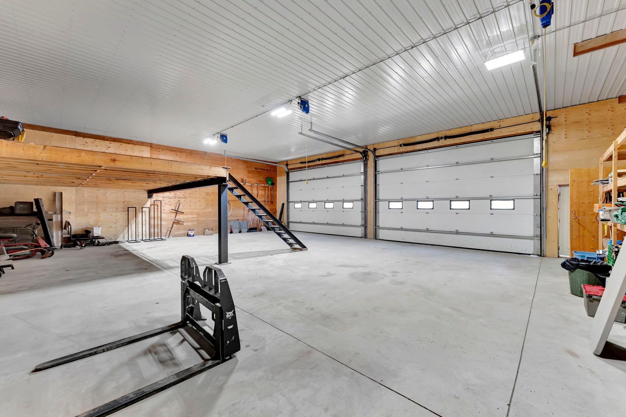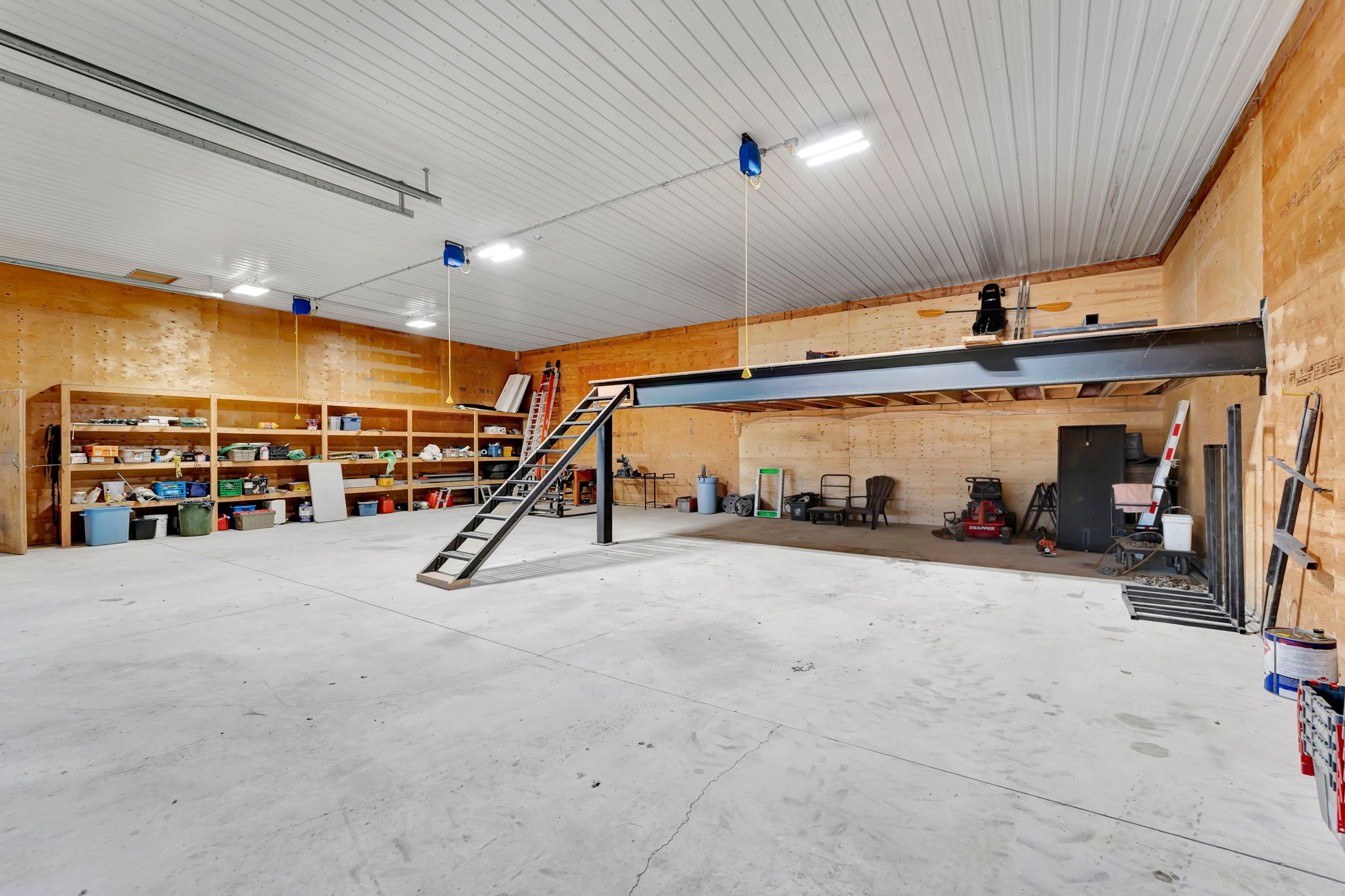 • Large insulated workshop with high ceilings, perfect for hobbies and storage.