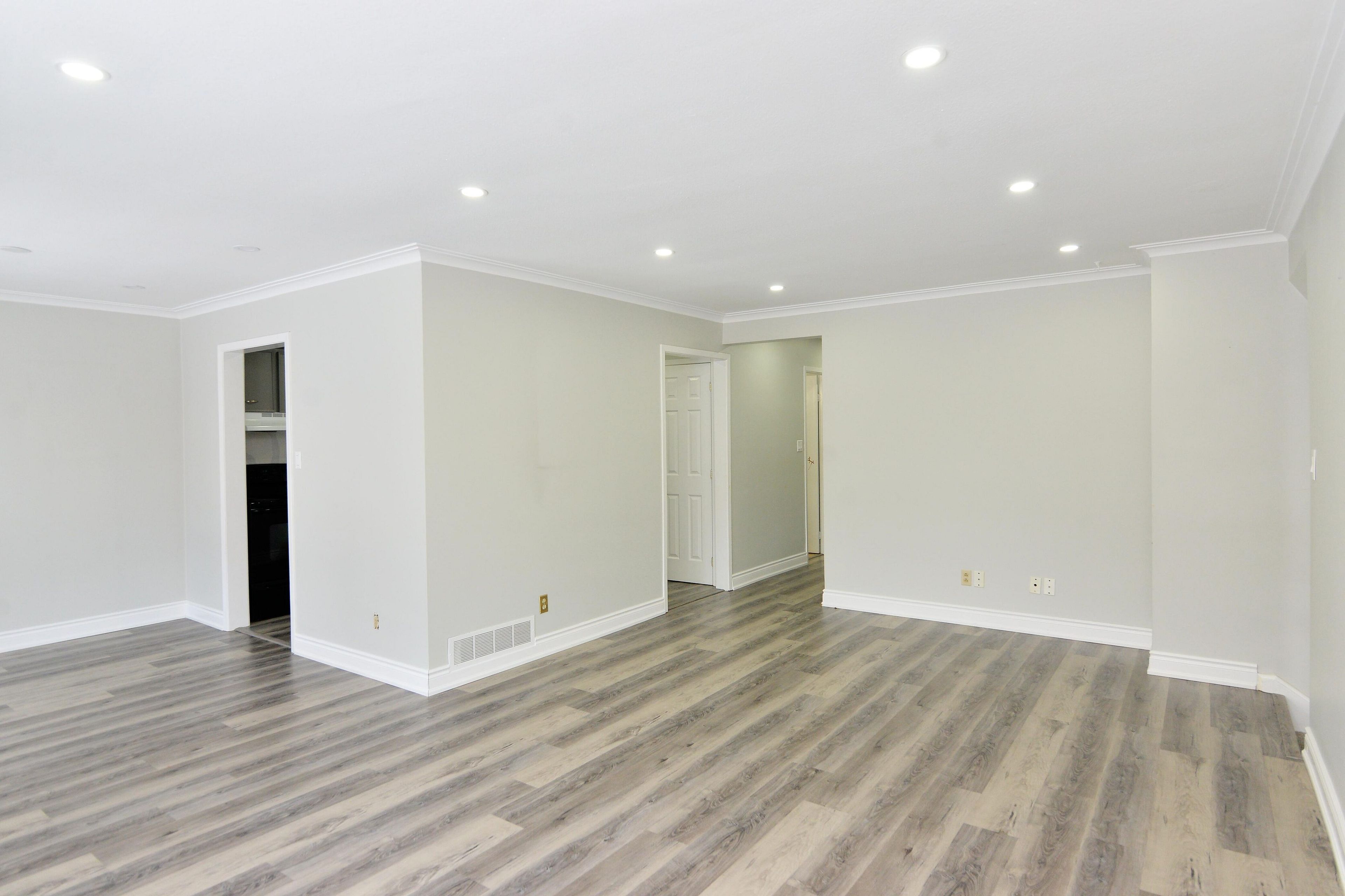 • Three bedrooms with bright open-concept living and dining areas.