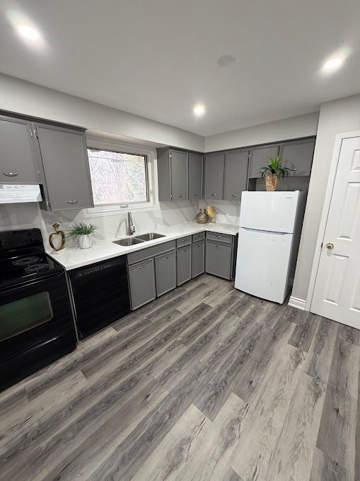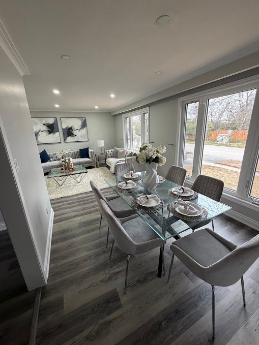Spacious home situated on a large corner lot backing directly onto a park. The property offers three bedrooms and a bright open-concept living and dining area. Vinyl flooring runs throughout the main level, complemented by led pot lights. The eat-in kitchen provides generous space for family meals. A separate entrance leads to a large basement with excellent potential for a future three-bedroom legal apartment. Enjoy the expansive fully fenced backyard with park views and a large storage shed, perfect for additional storage.
