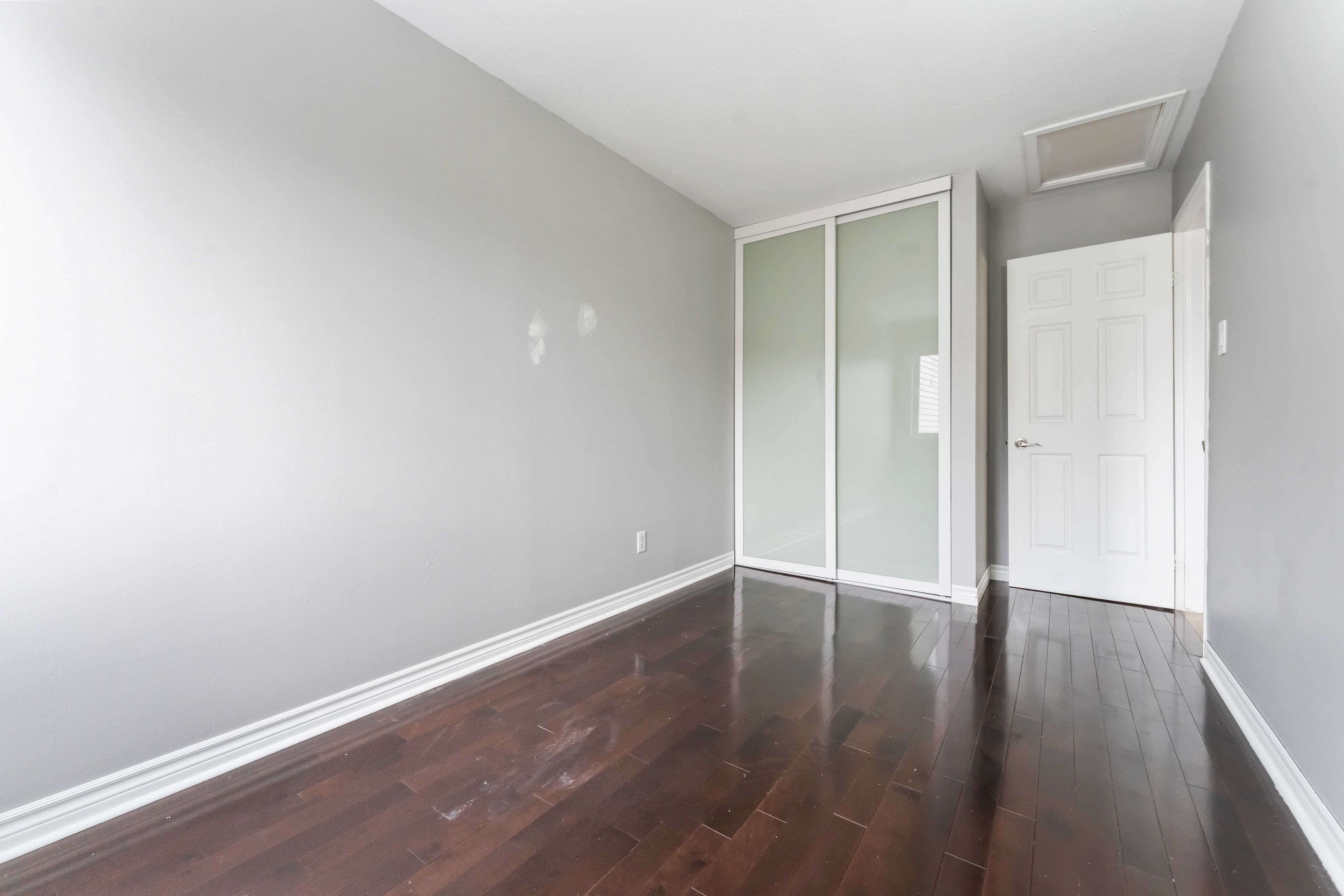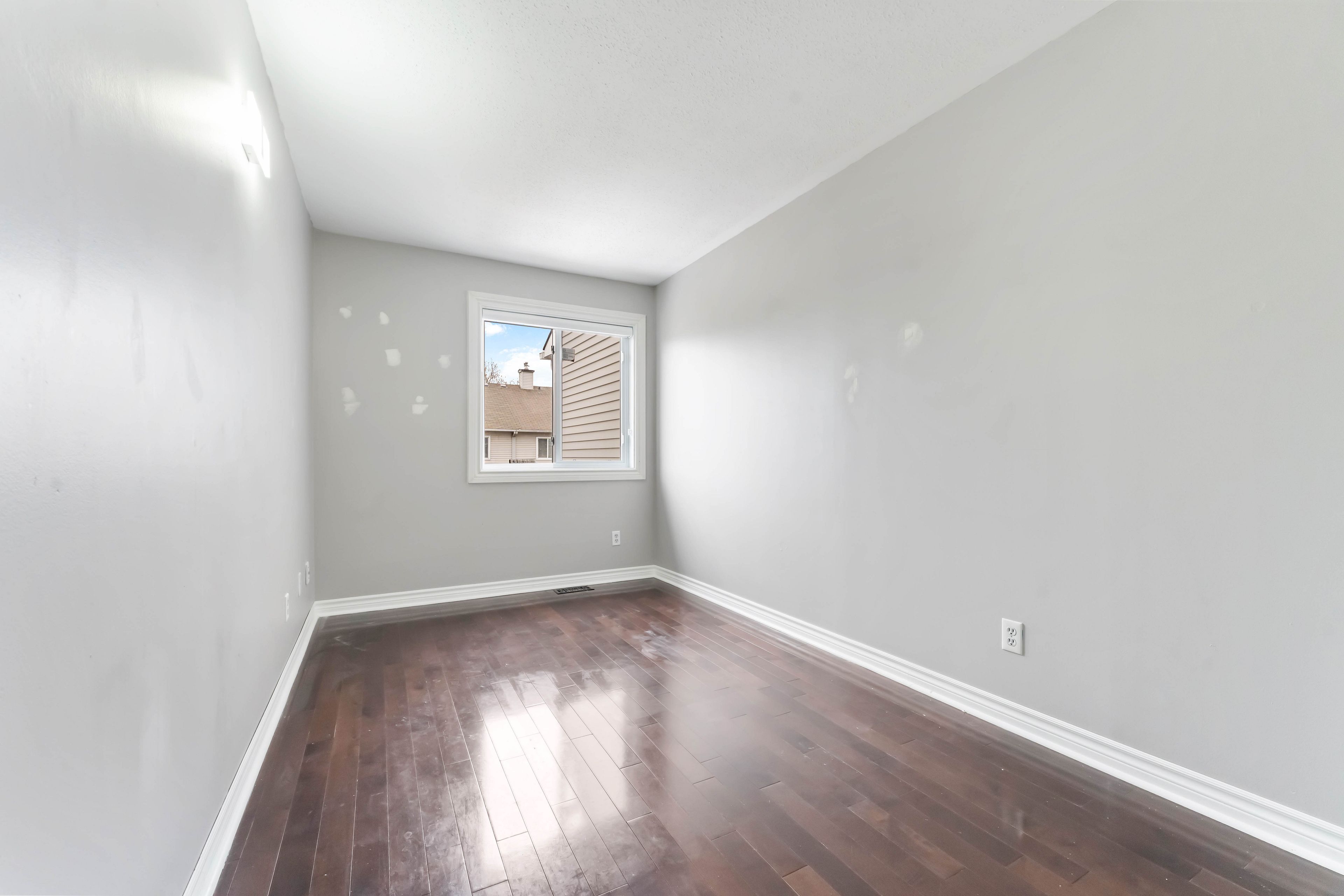 Beautiful and inviting 3-bed / 3 bath freehold townhome on a quiet, family-friendly street, complete with a charming front porch and fully fenced backyard. The main floor offers warm hardwood floors, a renovated, modern eat-in kitchen with stainless steel appliances, quartz countertops, and abundant cabinetry. The bright living room features a cozy wood-burning fireplace, while the dining room provides easy access to the backyard through large patio doors-perfect for indoor-outdoor living. Upstairs, you'll find three generous bedrooms, including a spacious primary with a beautifully renovated en-suite, plus an updated full bath. The fully finished basement adds valuable living space with sleek laminate floors, pot lights, a laundry area, and ample storage. Situated just minutes from parks, shopping, public transit, great restaurants, recreation facilities, and a movie theatre, this home offers the perfect balance of comfort and convenience. Move in and enjoy a lifestyle where everything you need is right at your doorstep-this is the one you'll be excited to come home to. (windows 2023, roof 2014, furnace 2009, a/c 2009)