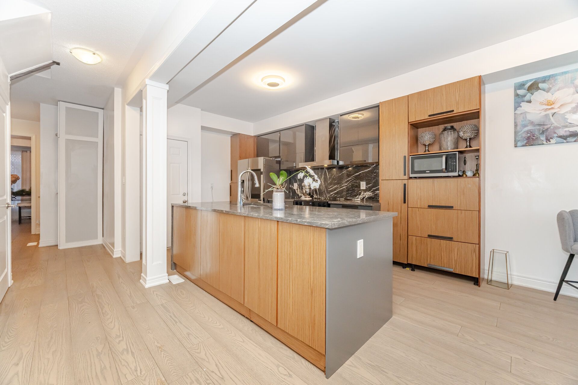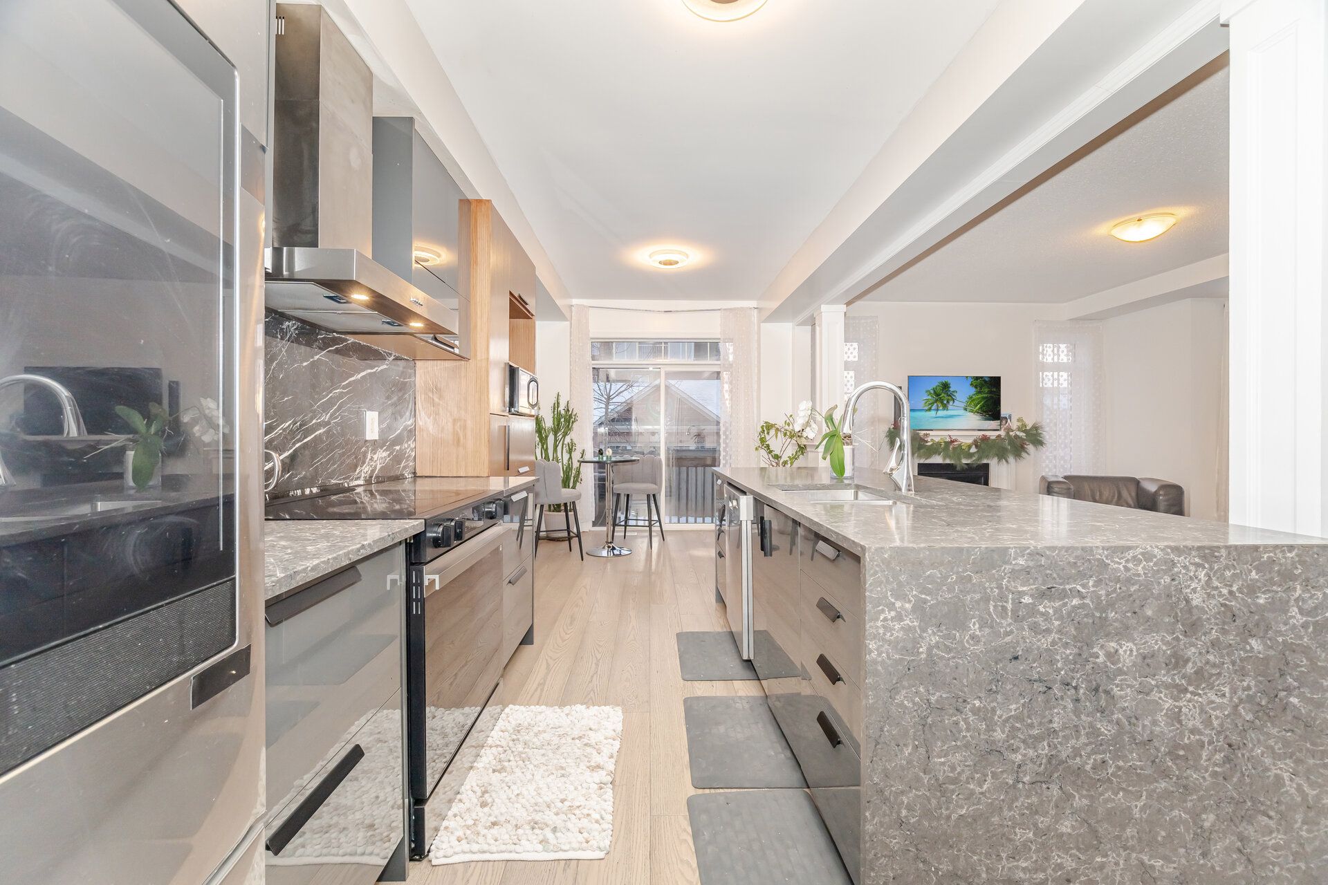 • Corner-lot detached home with a custom eat-in kitchen and center island.