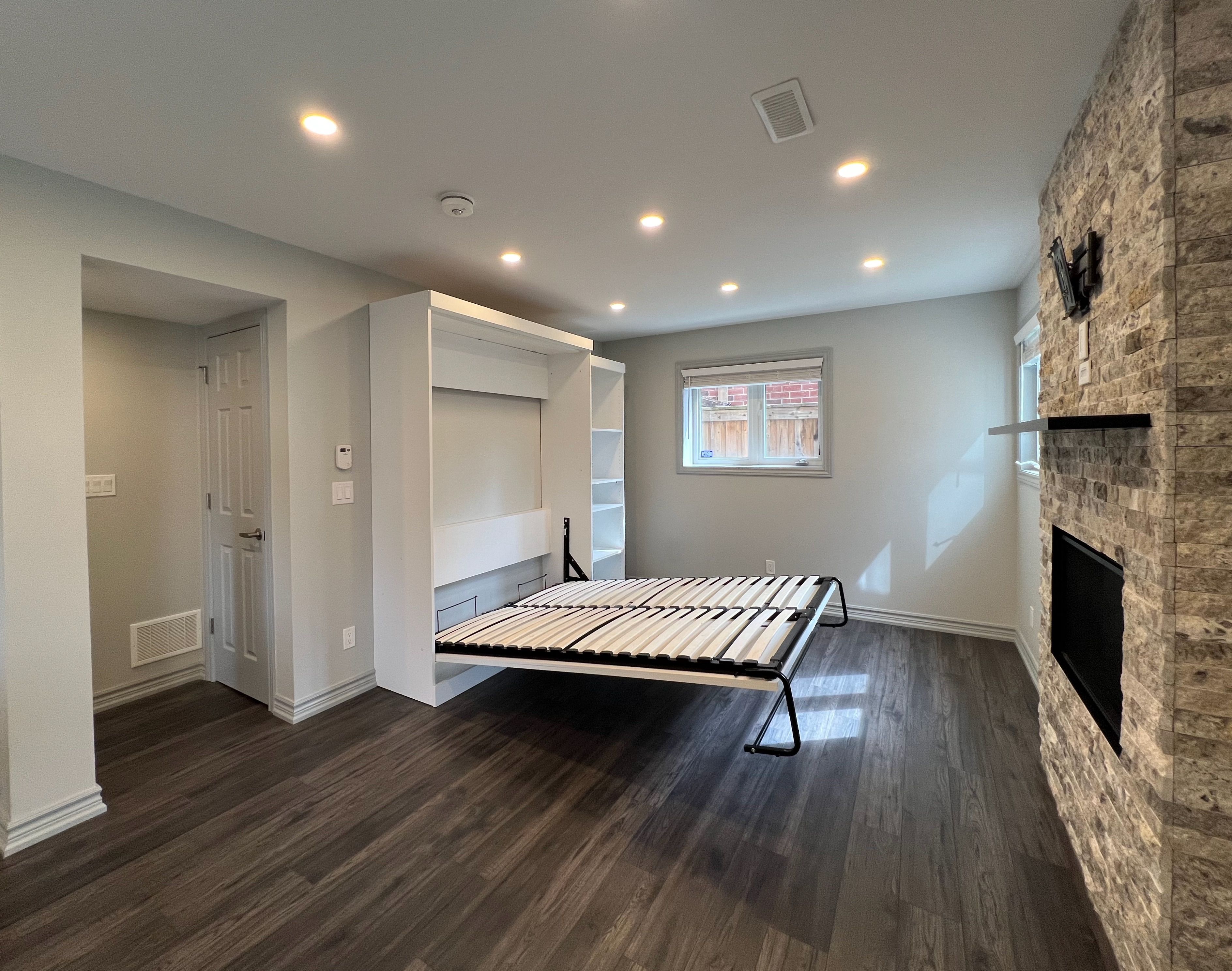 Experience the perfect blend of modern luxury and cozy comfort in this stunning, legal bachelor suite. Thoughtfully designed with soaring ceilings and expansive windows, the space is perpetually bathed in natural light. Step through your private walk-out to a beautifully crafted stone patio-your own secluded backyard oasis. Inside, the gourmet kitchen shines with granite countertops, a social center-island, and sleek stainless steel appliances (yes, there's a dishwasher!). From the warm glow of the gas fireplace to the elegance of under-mount lighting and soft-close cabinetry, every detail feels like home. Complete with a chic three-piece bath and private in-suite laundry, this partially furnished gem is ready for you to move in and level up.