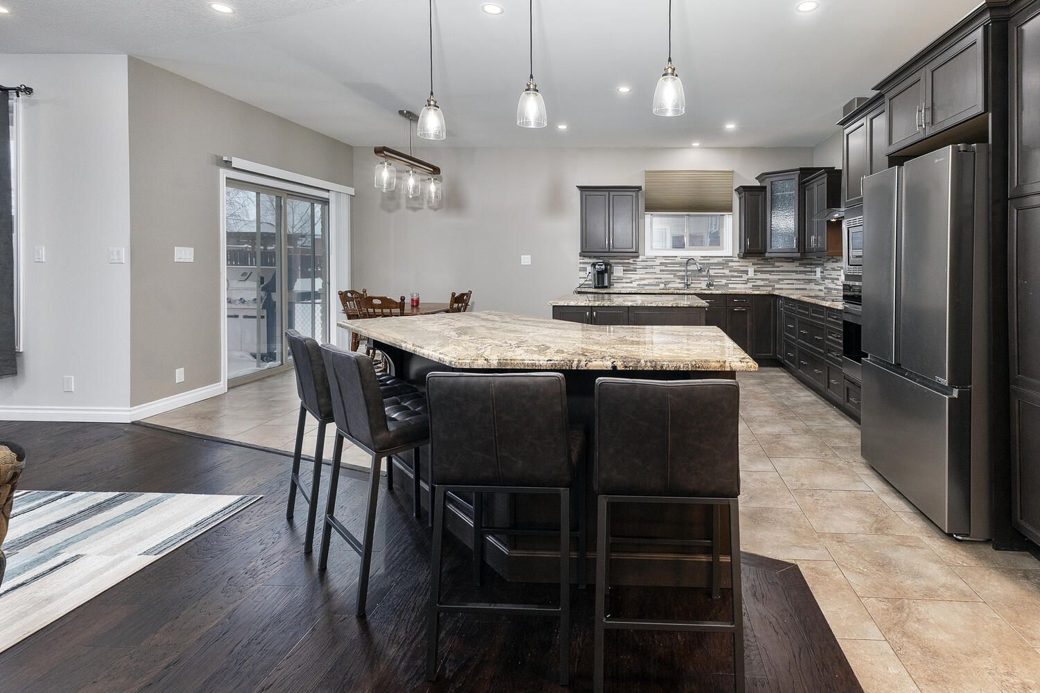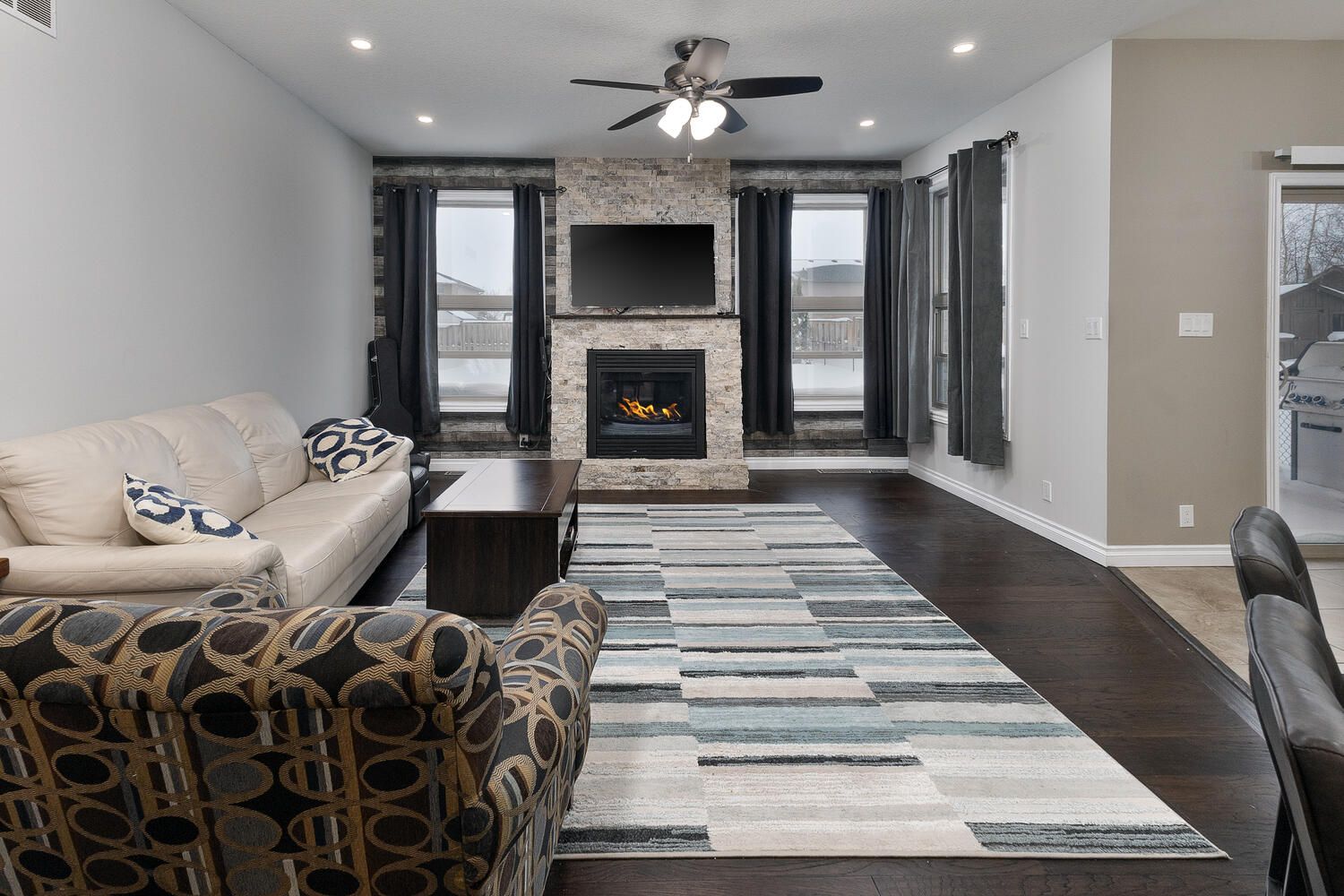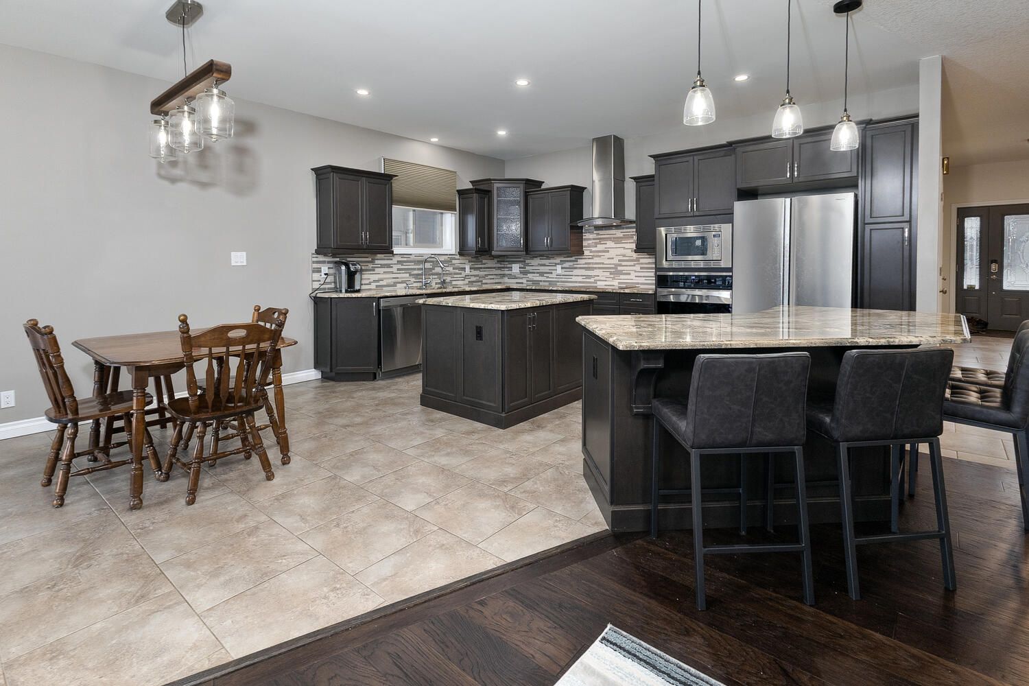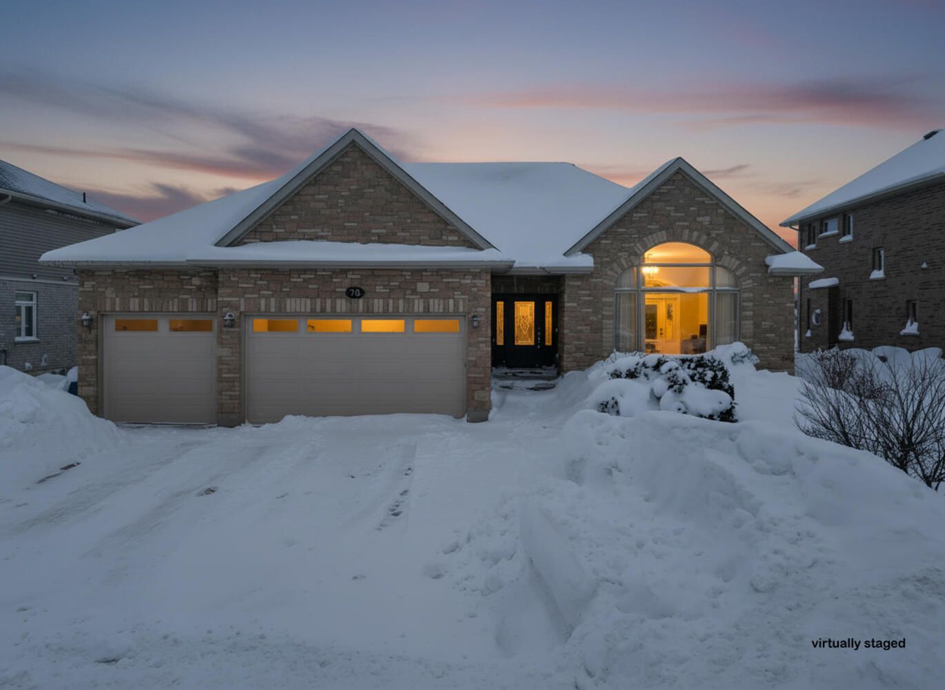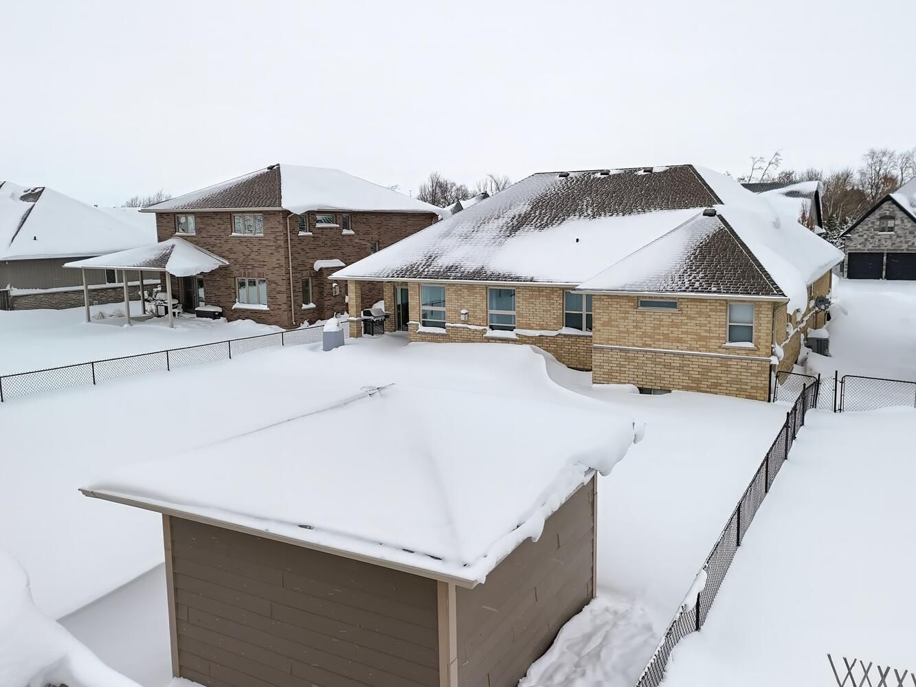 Executive 3+2 brick bungalow offering approx. 4,550-4,800 sq. Ft. Of finished living space with great potential for a separate suite in the basement. Located on a quiet street in mitchell, the main floor features 9' ceilings and a vaulted living room with an oversized feature window. The spacious layout includes formal living and dining rooms, open-concept great room with gas fireplace, and a custom maple kitchen with granite countertops and two granite islands. Sliding patio doors lead to a large, partially covered deck. The primary bedroom offers a walk-in closet and a luxurious ensuite. Main floor laundry, powder room, and additional full bath. Fully finished lower level with separate entrance features an oversized rec/games room with fireplace, two large bedrooms, and custom porcelain-tiled bath. Basement walk-out to garage. Fully fenced, pool-sized backyard with a covered bbq area on the deck and a shed. Oversized 3-car garage with 12' ceilings and insulated doors. Six-car driveway. Conveniently located approx. 20-30 minutes to stratford festival and lake huron beaches.