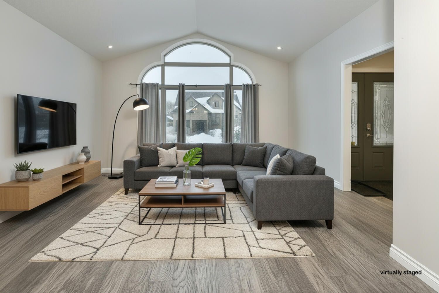 • Main floor features vaulted ceilings and an oversized window for natural light.