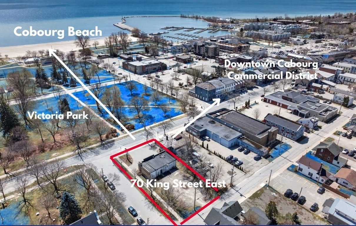Excellent corner lot exposure on the main street (king street) in the town of cobourg facing victoria park and the cobourg beach. Business is not for sale, only the land and building. This 1,580 sq. Foot commercial location has "main central commercial" zoning which allows a myriad of commercial, retail, office & residential uses. See list with listing broker. Building only encompasses a fraction of the buildable area on this lot with a maximum height of 39 feet which would have a great view over victoria park to lake ontario. Walk everywhere in downtown cobourg from this location with 7 minute access to highway 401. Currently front parking area front for about 7 cars and a huge back lot parking area for approximately 16 cars. Plot also includes a 25' x 37' piece of land in front of #68 king street east. High visibility corner location with rear access off swayne street. Level entrance front and back. No basement. Presale inspection available. Other documentation re: zoning, uses, and site available.