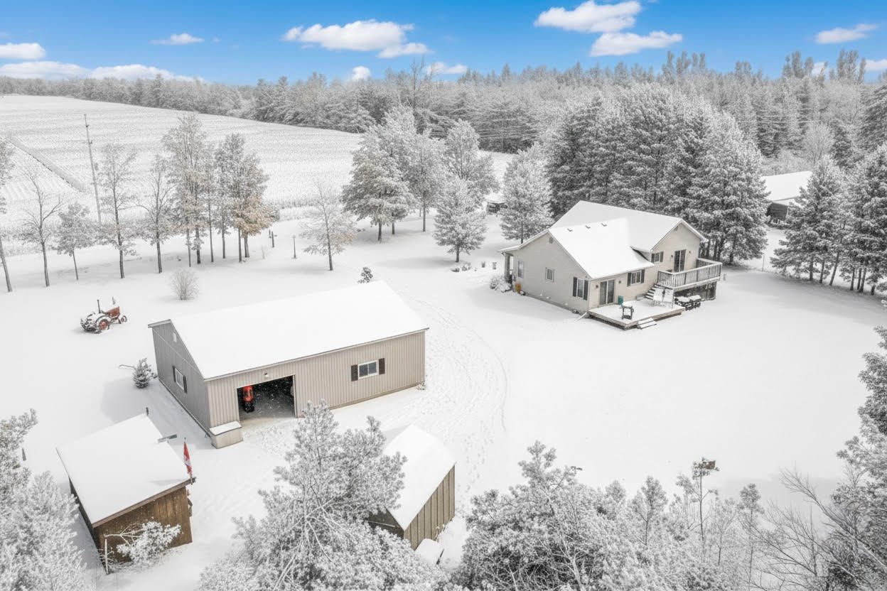 Opportunity abounds with this dream property in the desirable township of oro-medonte conveniently located between barrie and orillia. This beautifully updated 3+1 bedroom side split is move-in ready and offers the perfect blend of modern living and spacious, idyllic country life. As you step inside, you'll immediately appreciate the fresh updates throughout, including custom kitchen cabinetry with quartz tops (2022), plank flooring (2022) and propane forced air furnace and central air conditioning (june 2024). The open concept layout is perfect for family gatherings and entertaining, with a spacious living and dining area that flows seamlessly into the heart of the home. The large windows and doors invite natural light to fill every room, enhancing the home's warm and inviting atmosphere. Upstairs, you'll find 3 bedrooms, including a primary suite with a 3 piece ensuite that offers a peaceful retreat and scenic views of the surrounding property from the sliding doors leading to an elevated deck. The lower level boasts a bright open family room complete with modern shiplap finishes, custom built in wall units and gas fireplace along with a 3 piece bathroom, additional bedroom and separate laundry room. Step outside and prepare to be wowed by the incredible 30'x40' workshop (2020)with hydro, 2 overhead doors and epoxy floor making it an absolute dream for hobbyists, contractors, or anyone in need of a large work space. This workshop is fully equipped with ample storage, and offers plenty of room for projects, equipment, or even a home business. The property sits on a coveted 8. 9 acre parcel with highway exposure while providing a perfect blend of open space and natural beauty. Easy access to major highways, schools, shopping, and abundant recreational amenities. This is a great opportunity to own a move-in-ready home with all the space you need for both living and work!