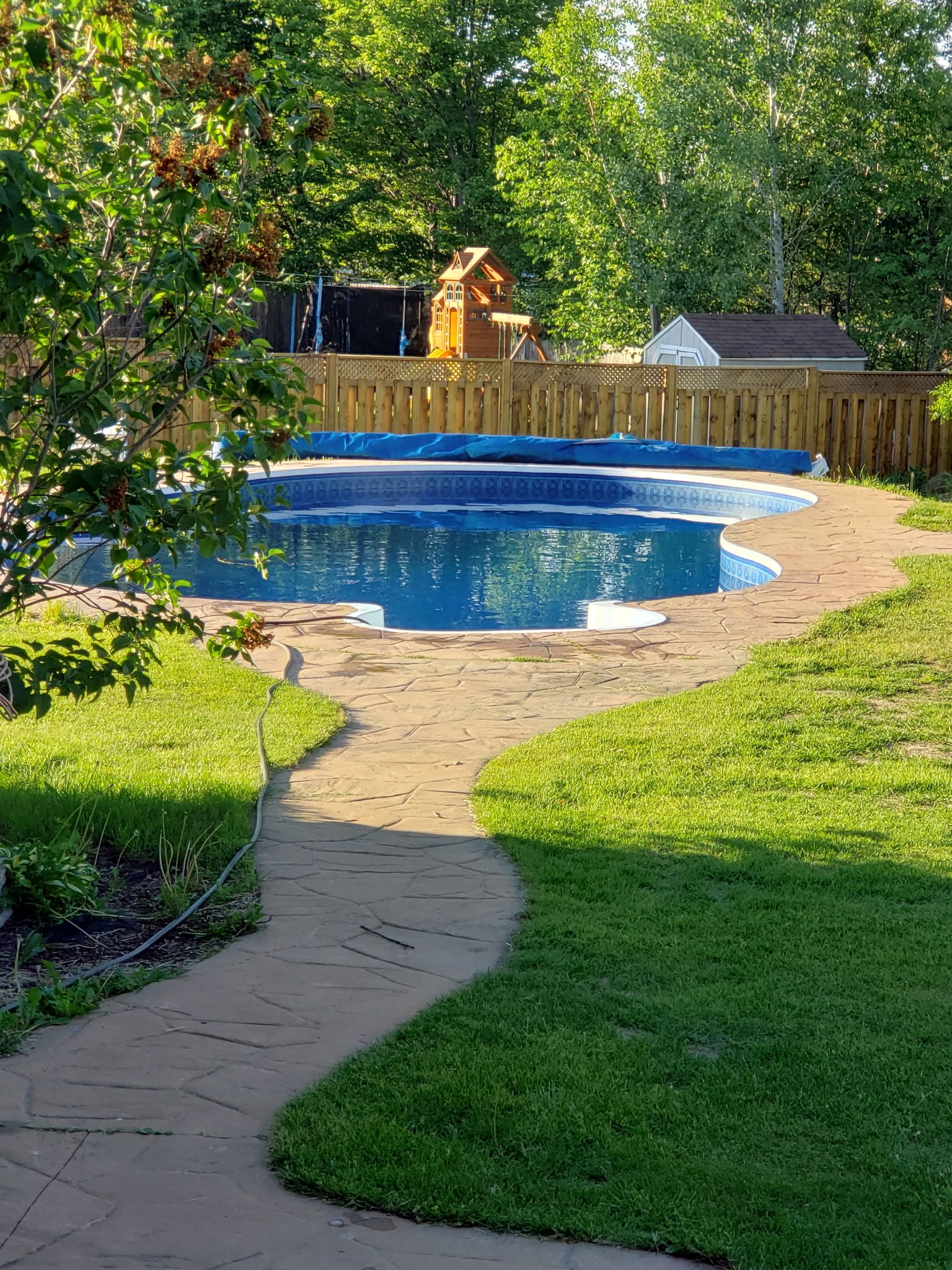 • Private backyard oasis featuring a heated saltwater inground pool.