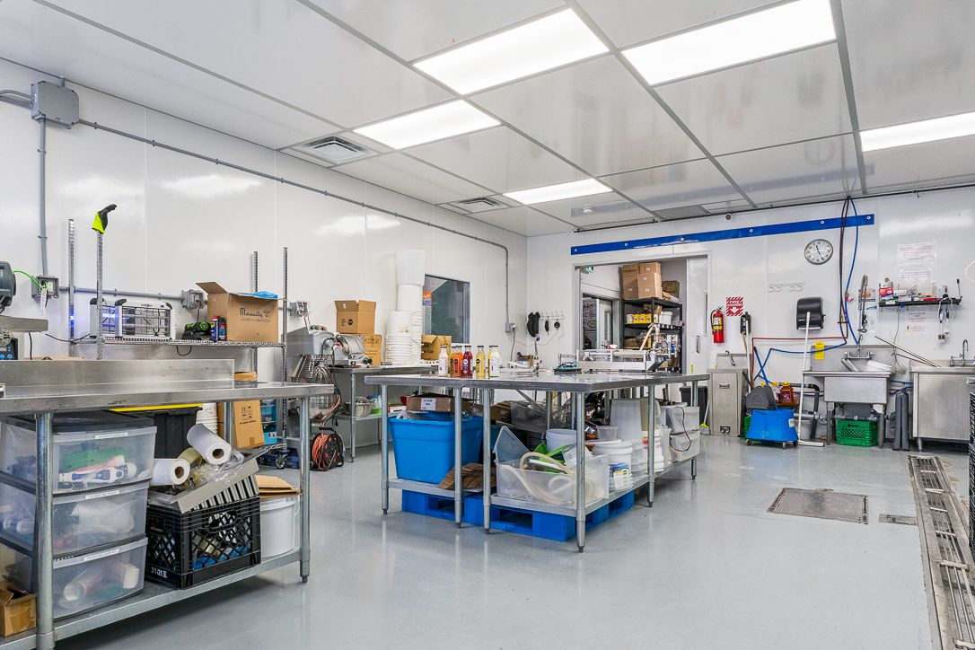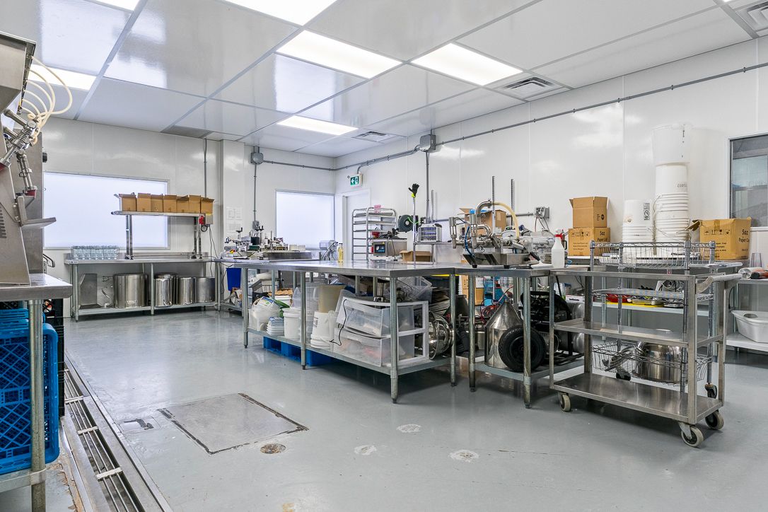 Exceptional opportunity to acquire an immaculate 2,100 sq. Ft. Industrial condo in one of north guelph's most sought-after commercial hubs. This prime end-to-end unit is currently optimized for high-standard food production, featuring integrated clean rooms and extensive storage solutions that offer a "plug-and-play" advantage for specialized operators. The versatile b4 zoning permits a wide array of industrial and commercial uses, providing long-term investment flexibility. The functional layout includes a professional reception area, a private restroom, and a 10' x 12' grade-level overhead door with an automatic opener for seamless shipping and receiving. Situated in a high-visibility, high-traffic plaza with rapid access to major highways and exceptionally low condo fees, this well-maintained asset is perfect for owner-occupiers or savvy investors. City permits are available; buyers/agents to verify all zoning and permitted uses.