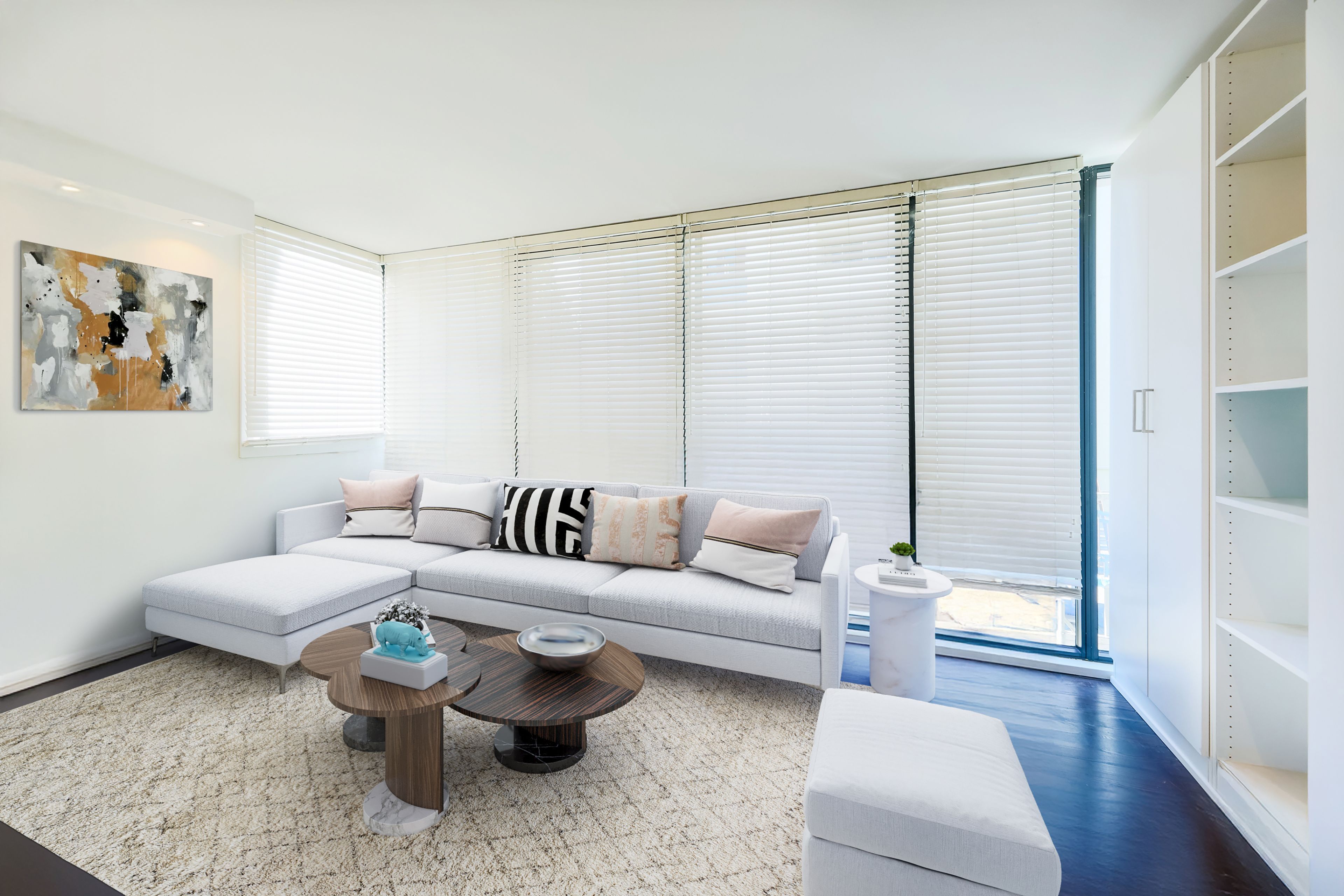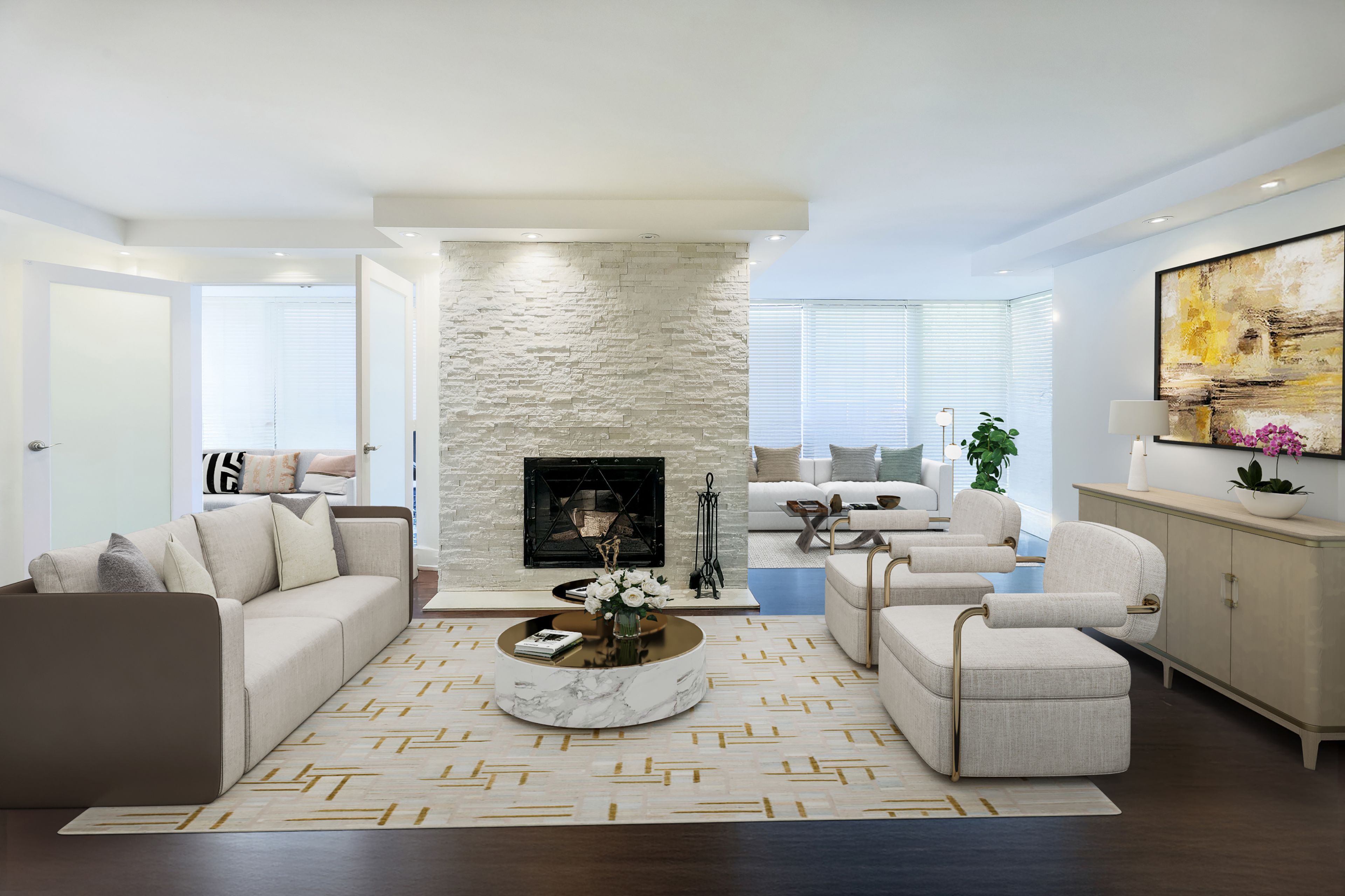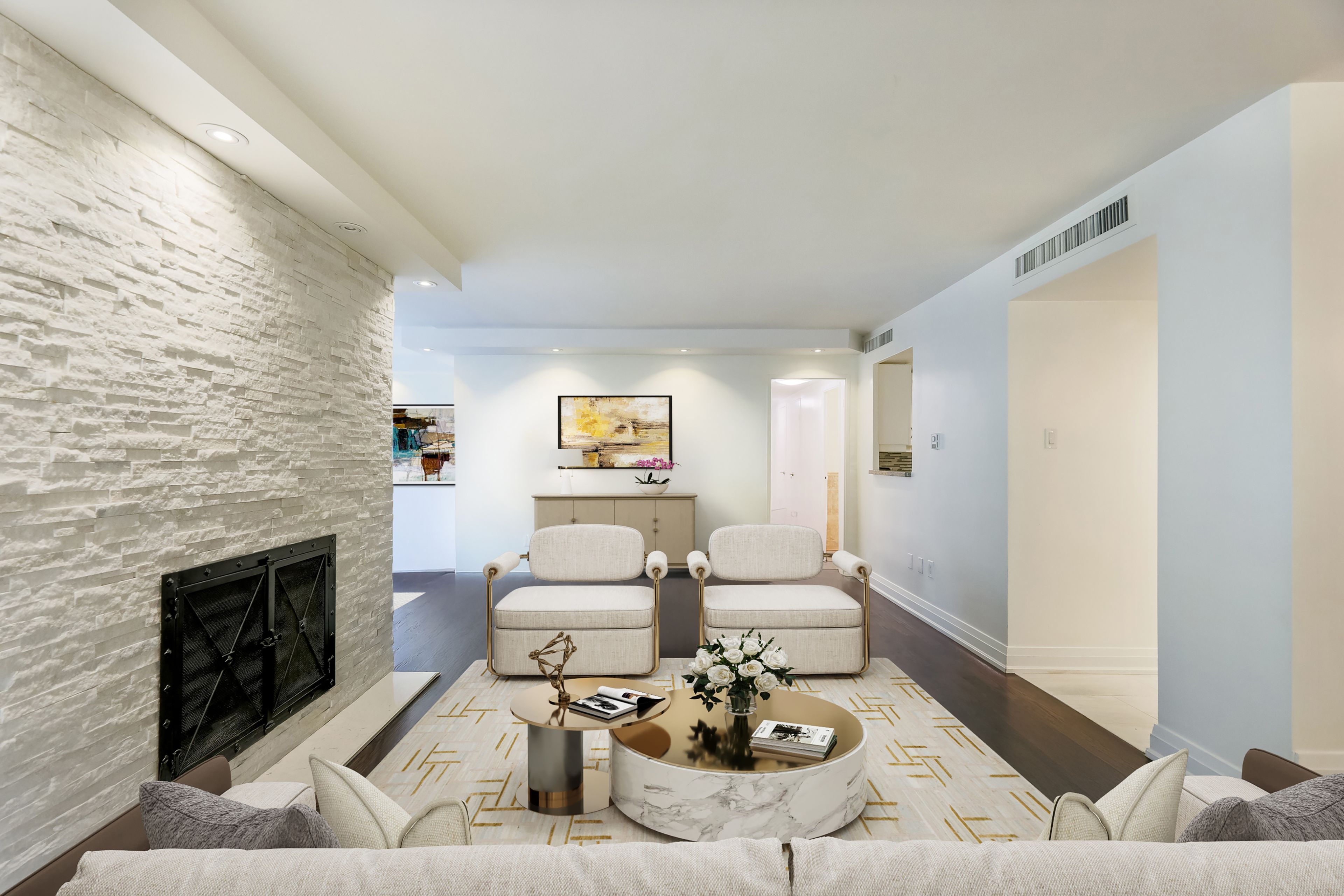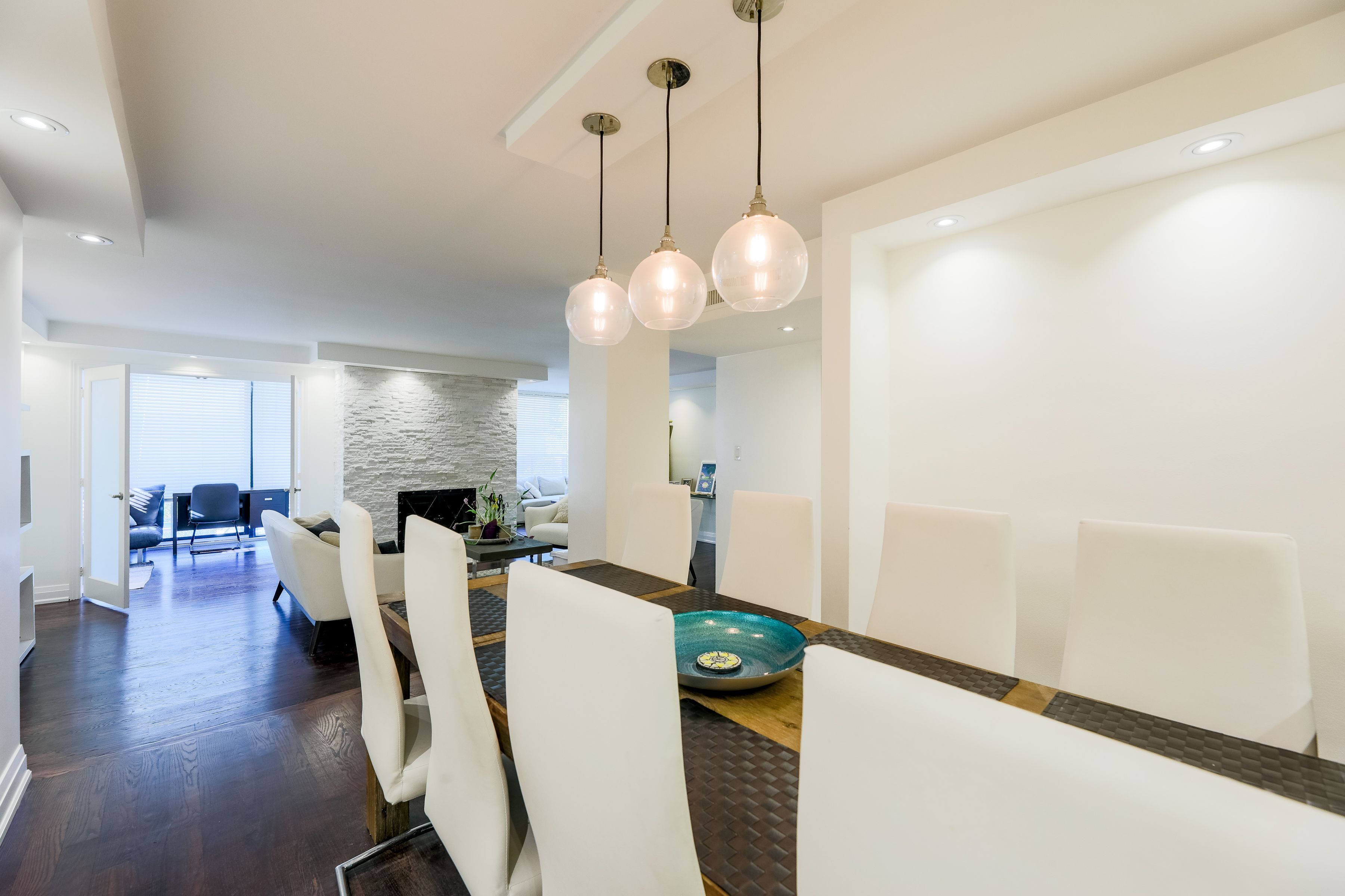 • Large living areas with a dining room that fits an 8-person table.