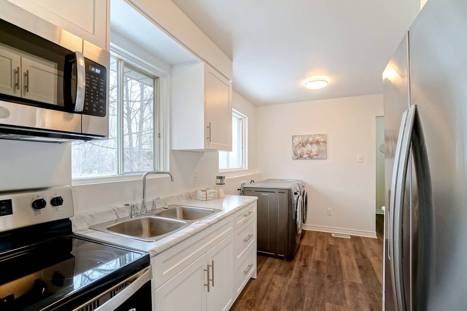 • New kitchen appliances and private laundry for convenience.