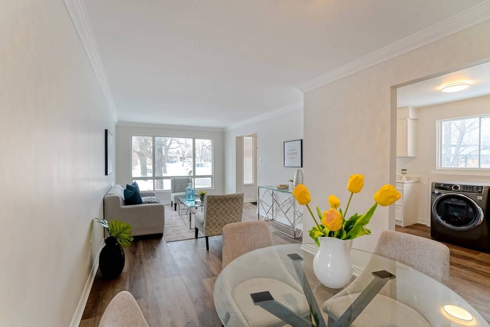 • Bright open-concept living and dining area filled with natural light.