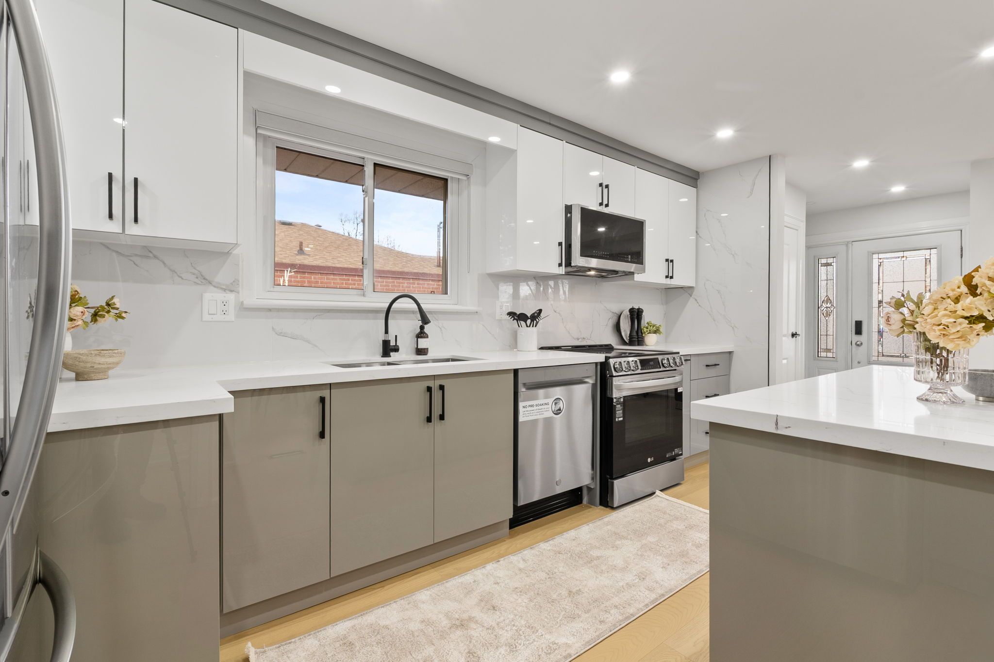Experience modern living in this fully renovated 3+2 bedroom, 3 bath bungalow in the highly sought-after, family-friendly tam o'shanter neighbourhood. Renovated in 2024, the home features a bright eat-in kitchen with quartz countertops, stainless steel appliances(both levels), custom range hood, centre island, pot lights throughout, and light hardwood flooring. Main level includes 4-pc & 3-pc bathrooms and an upgraded bay window in the family room that fills the space with natural light. $$$ spent on upgrades & brand-new ss appliances! Fully finished basement with separate entrance, kitchenette, private washer/dryer, 2 bedrooms & 3-pc bath-perfect for an in-law suite or rental income ($4,500+/mo) with potential to create two self-contained units. Private backyard backs onto open space for extra privacy. Prime location minutes to tam o'shanter golf course, hwy 401, schools, parks, shopping & transit. Move-in ready home ideal for families and investors-an exceptional opportunity in a prime location!