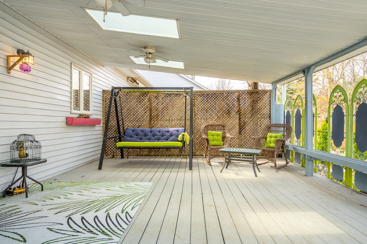 • Fenced backyard with a covered veranda for outdoor enjoyment.