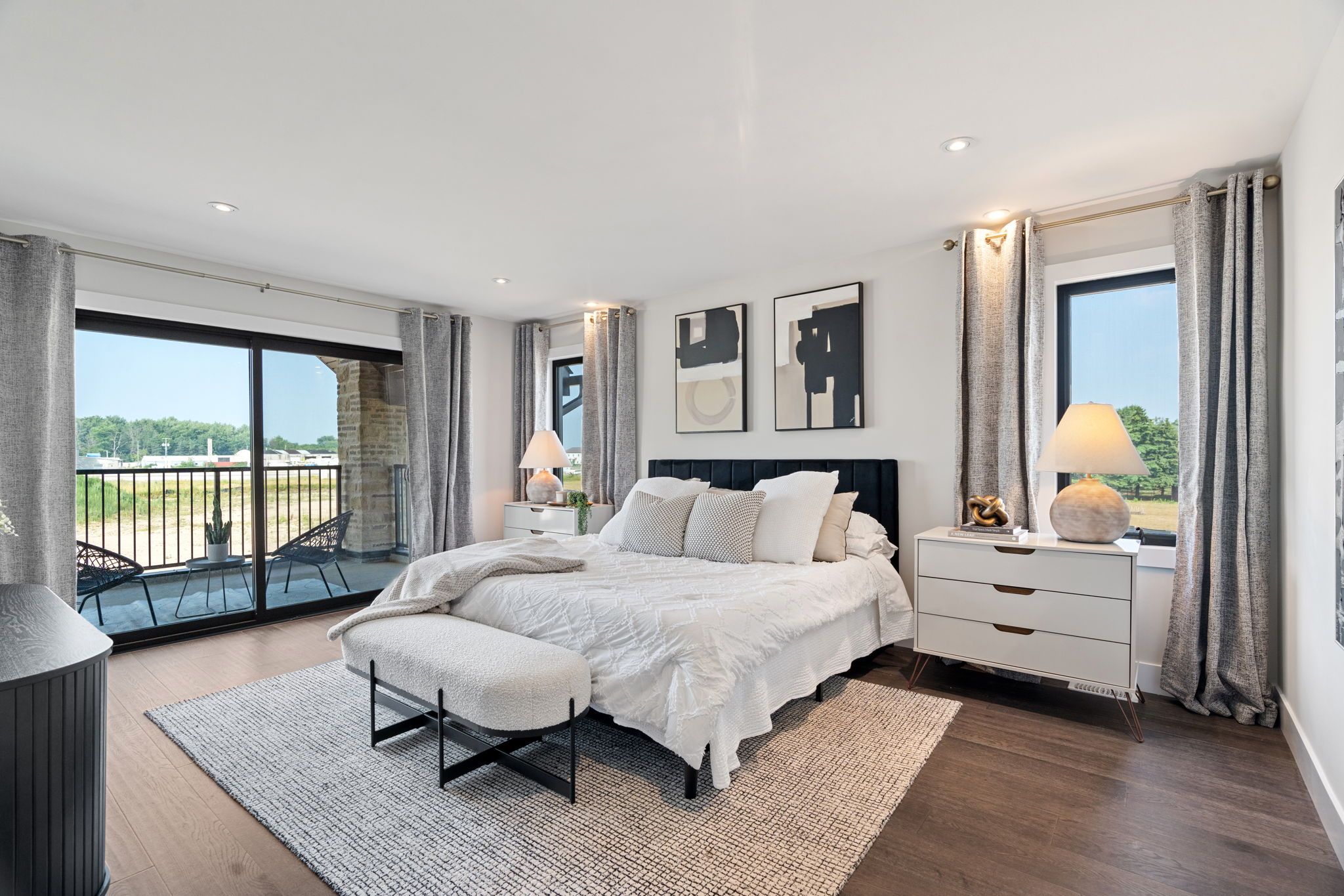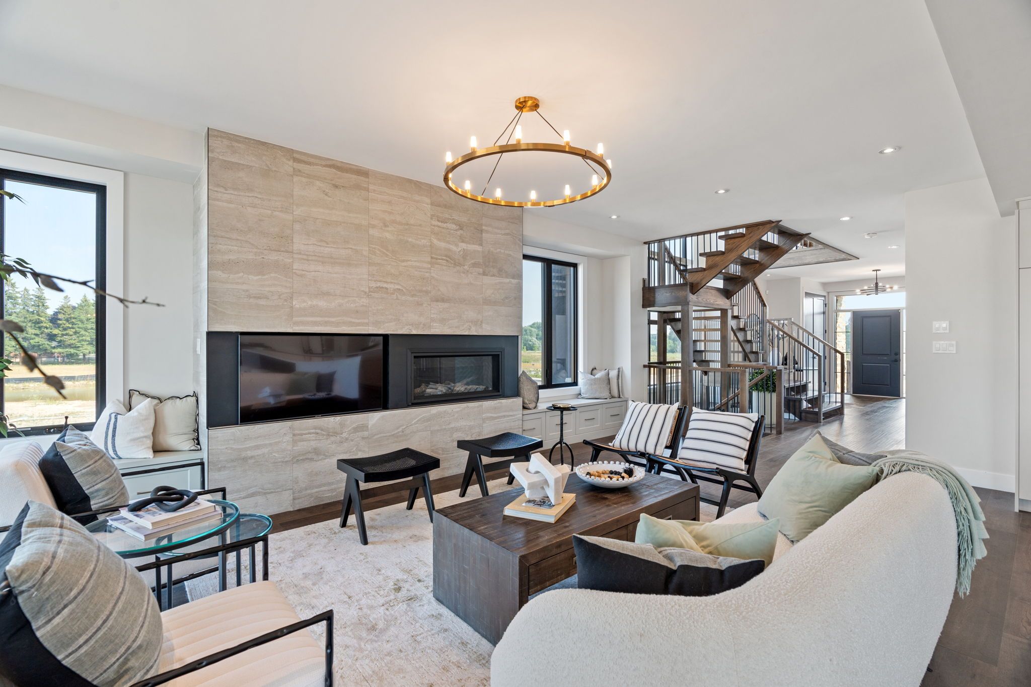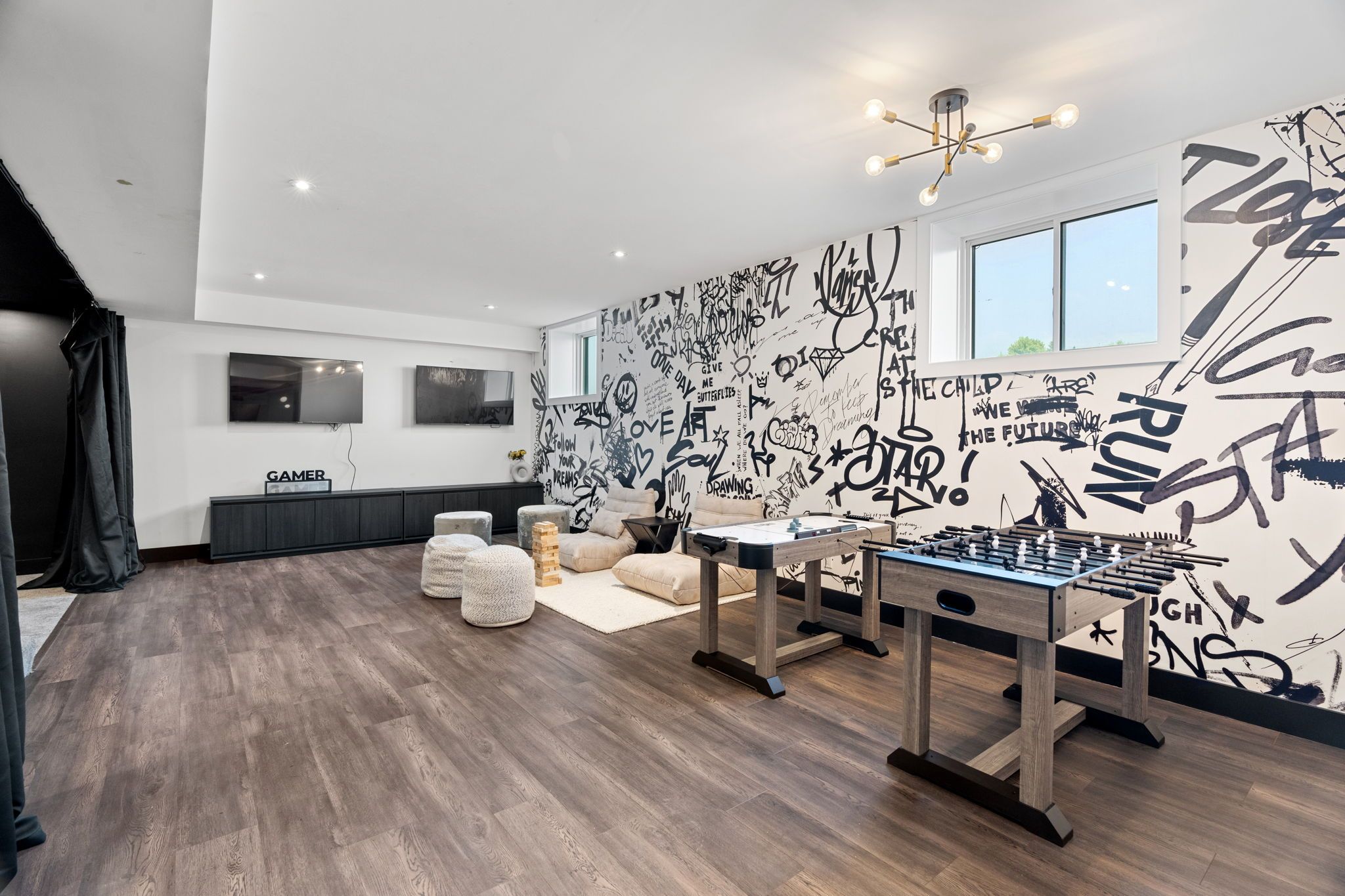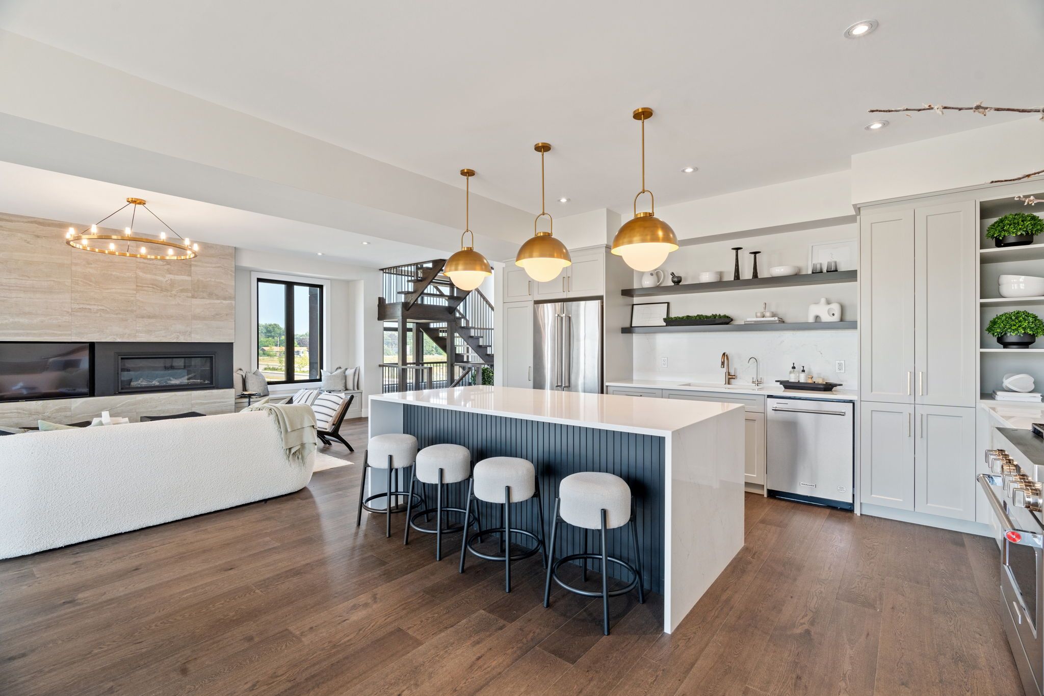 This standout residence in stratford is a 3,717 sq ft architectural masterpiece that commands attention from the moment you arrive. Newly built in 2024, this luxury single-detached home blends timeless design with modern sophistication. Every detail has been curated to impress, from its grand curb appeal to its meticulously crafted interior finishes. This fully furnished residence is thoughtfully designed, making it ideal for families seeking both style and functionality. Boasting 4 spacious bedrooms plus a loft and 4. 5 bathrooms, this home offers plenty of room for everyone. The open-concept main floor features a stunning kitchen, perfect for culinary enthusiasts and entertaining guests. Convenience is paramount with a main floor laundry area designed to simplify your daily routine. The fully finished basement is an entertainer's dream, complete with a movie room for immersive viewing experiences and a dedicated home gym, allowing you to stay active without leaving the comfort of your own home. Step outside to enjoy two balconies that provide peaceful spots to unwind, plus a large, partially covered back deck perfect for alfresco dining, summer barbecues, or simply relaxing in a beautiful outdoor setting. Located in one of stratford's newest neighbourhoods, offering convenient access to kitchener-waterloo, ideal for commuters looking to enjoy luxury living just outside the city. Move in and start living your dream lifestyle immediately. This home is sold fully furnished with stylish decor that complements the architecture perfectly.