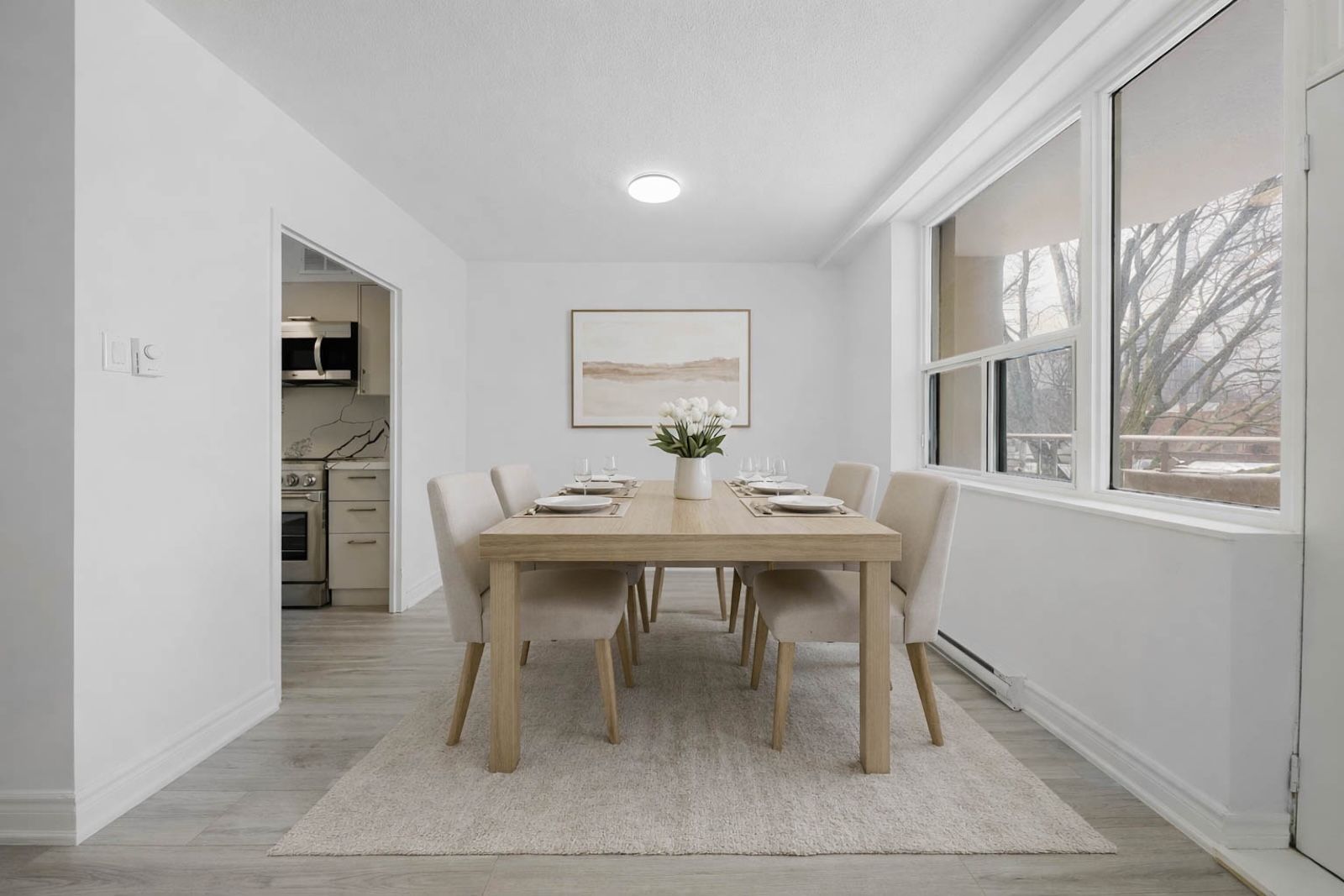 Discover exceptional value in this beautifully renovated 3-bedroom, 1-bathroom residence offering approximately 1100 square feet of thoughtfully designed living space. Situated within a quiet, boutique low-rise building of just 50 units, this second-floor suite provides unmatched convenience with easy access. The stylish kitchen features elegant stone countertops, brand-new stainless steel appliances, and generous cabinetry, seamlessly connecting to the open living area. Premium light oak vinyl flooring runs throughout the suite, enhancing the bright and contemporary aesthetic, while the fully renovated four-piece bathroom offers both comfort and sophistication. Spacious bedrooms feature large windows and ample storage, creating bright and inviting retreats. Maintenance fees provide outstanding value, including all utilities-heat, hydro, water, high-speed rogers internet-and one parking space, ensuring true peace of mind. This pet-friendly building also offers visitor parking for added convenience. Ideally located on a quiet street just steps from the serene green spaces of old sheppard park and muirhead park, residents enjoy the perfect balance of tranquility and urban accessibility. Commuting is effortless with quick access to the dvp, highways 404 and 401, nearby ttc and yrt transit, and only a short walk to don mills subway station at fairview mall. With premier amenities, shopping, dining, and north york general hospital all within close reach, this exceptional residence presents a rare opportunity to own stylish, turnkey living in a highly connected location.