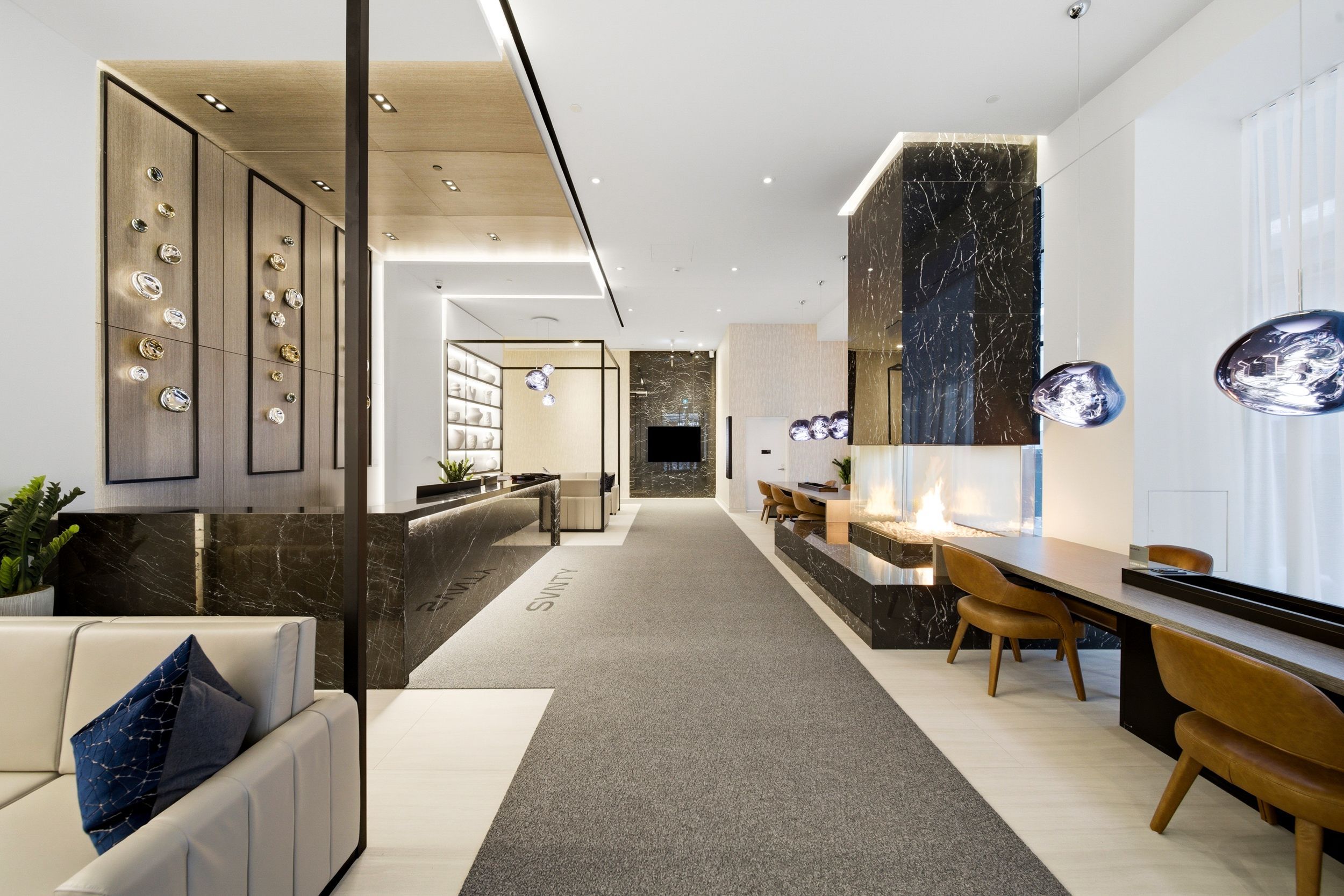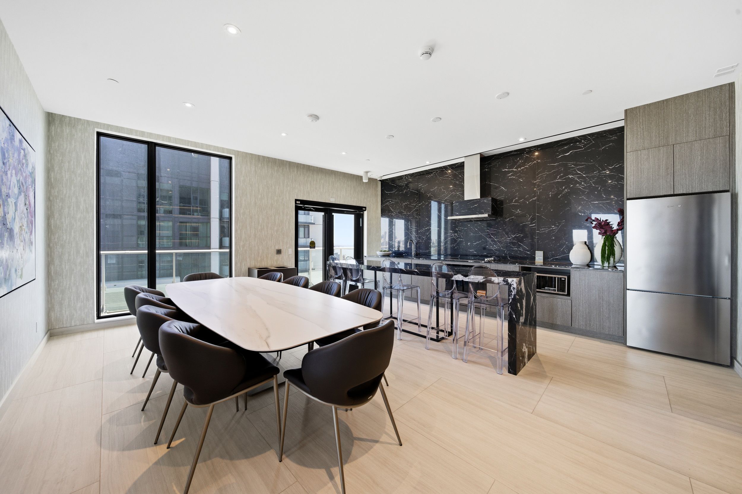 • Extensive amenities include fitness center, lounges, and outdoor entertaining spaces.