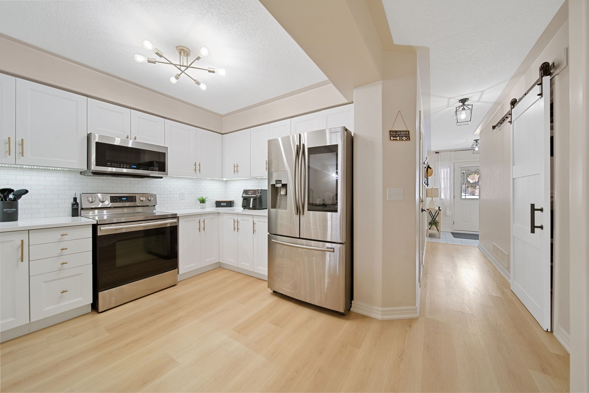 Discover this charming two-storey home in orillia, where modern style meets everyday life. No expense spared and renovated top to bottom. New flooring, brand new deck, updated kitchen and bathrooms and tile. Lots of room for growth with 4 beds and 3 bathrooms. Great for entertaining with your cozy fireplace and open concept main floor living. Convenient entry from the garage to bring those groceries in plus additional driveway parking spots. Nestled in a welcoming neighbourhood close to everyday essentials, the property also features a private fenced backyard with brand new deck. Enjoy this prime central location with convenient access to public transit, close proximity to the highway, grocery stores, schools, ski hills, golf courses, and a nearby lake, all just minutes away. This home is move in ready and cute as a button.