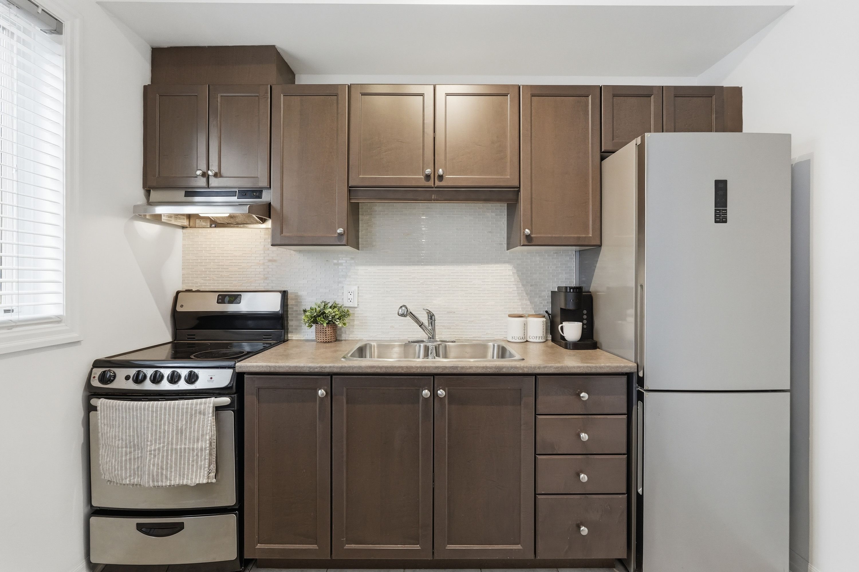 Welcome to this spacious stacked townhouse offering over 1,100 sq ft of comfortable living space, perfect for first-time buyers, families, or savvy investors. Featuring a bright open-concept main living area, this home is designed for both everyday living and entertaining. Enjoy your own private backyard retreat complete with a beautiful mature tree that creates a peaceful backdrop, along with a private deck-ideal for morning coffee or relaxing on warm summer days. This versatile layout offers two separate living spaces, providing excellent rental or in-law suite potential. The home is finished in modern, natural tones throughout and includes a brand new washer and dryer for added convenience. The basement bedroom features a stylish open-concept built-in closet and offers endless possibilities to suit your needs. Located within walking distance to a wide range of convenient amenities, this home combines comfort, flexibility, and location-an opportunity you won't want to miss!