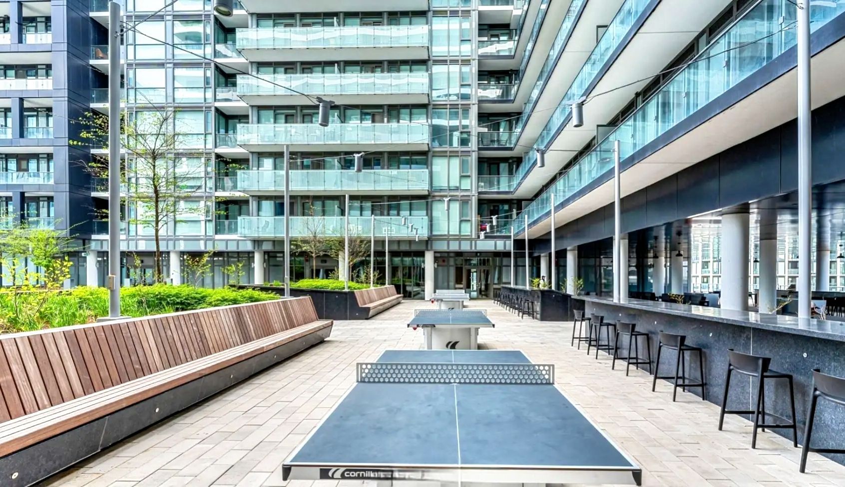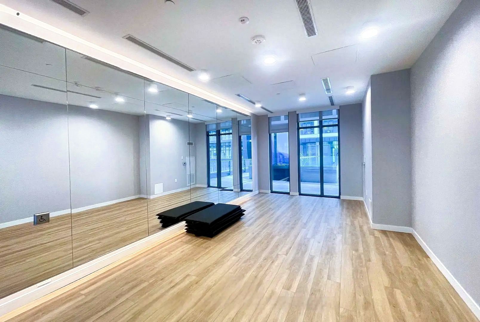 • Amenities include pool, gym, rooftop cabanas, and party room.