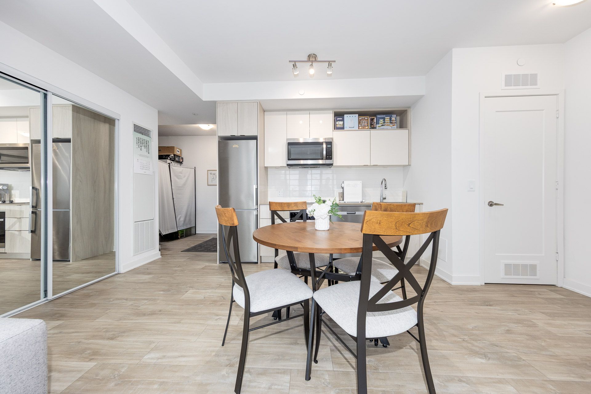 • Modern kitchen featuring built-in stainless steel appliances for convenience.