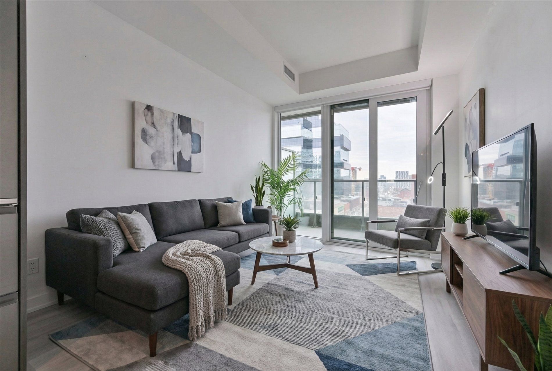 • Modern 2-bedroom, 2-bath suite with a massive private balcony.