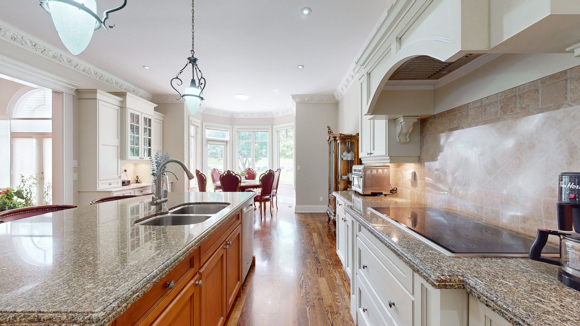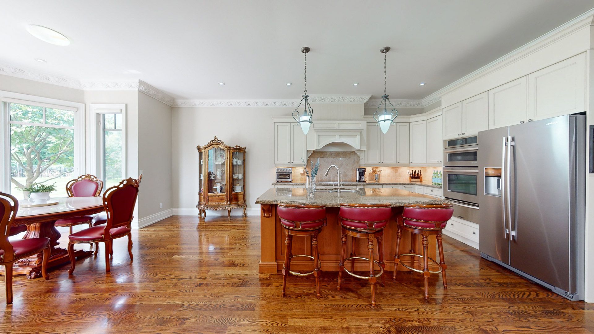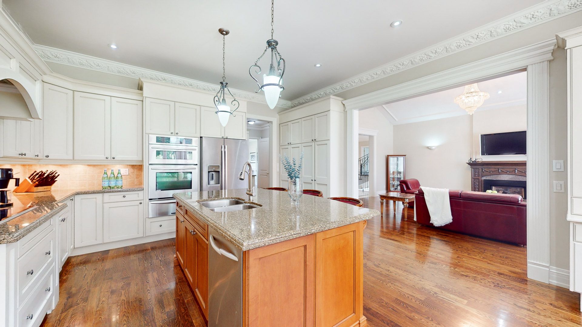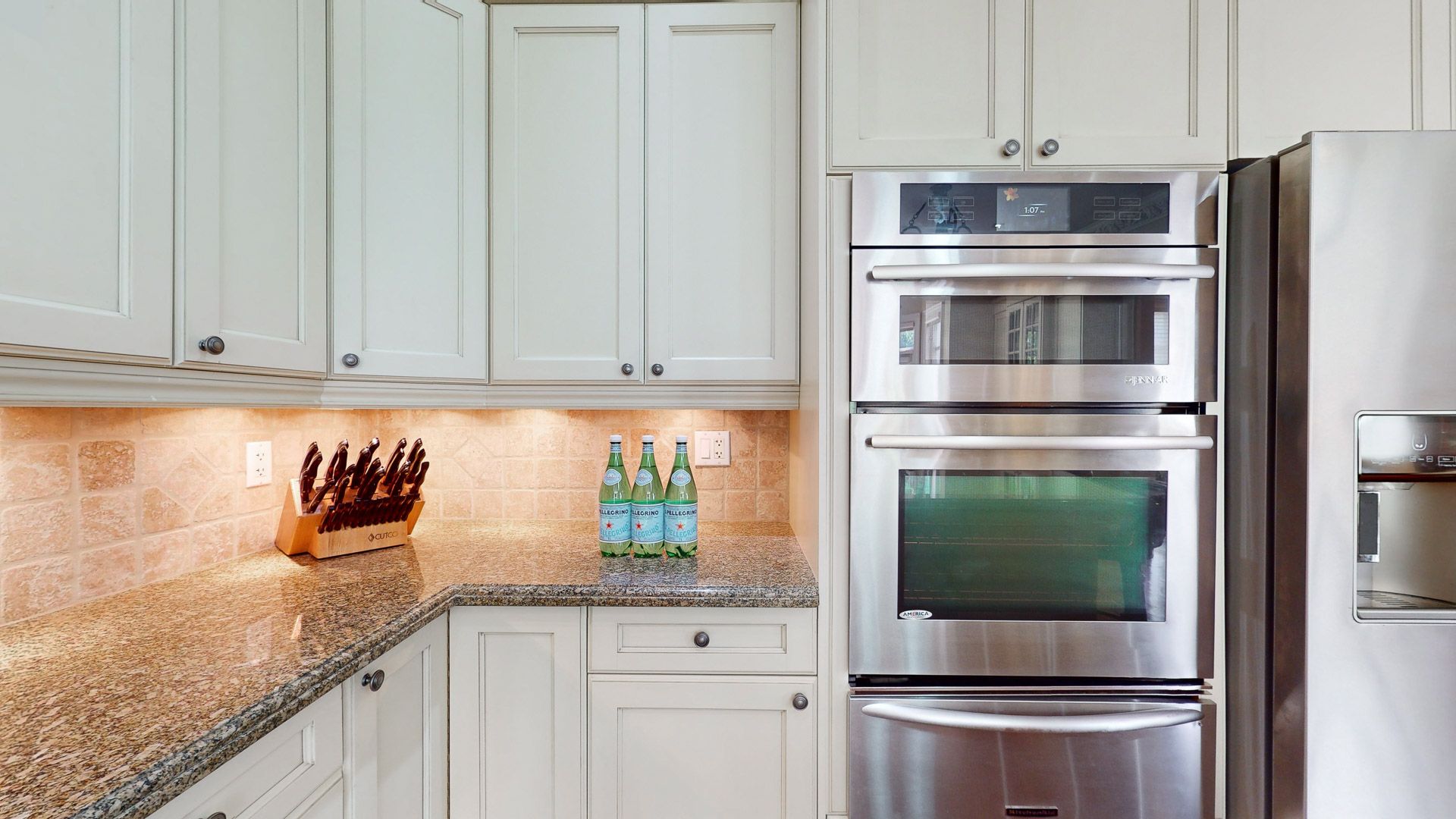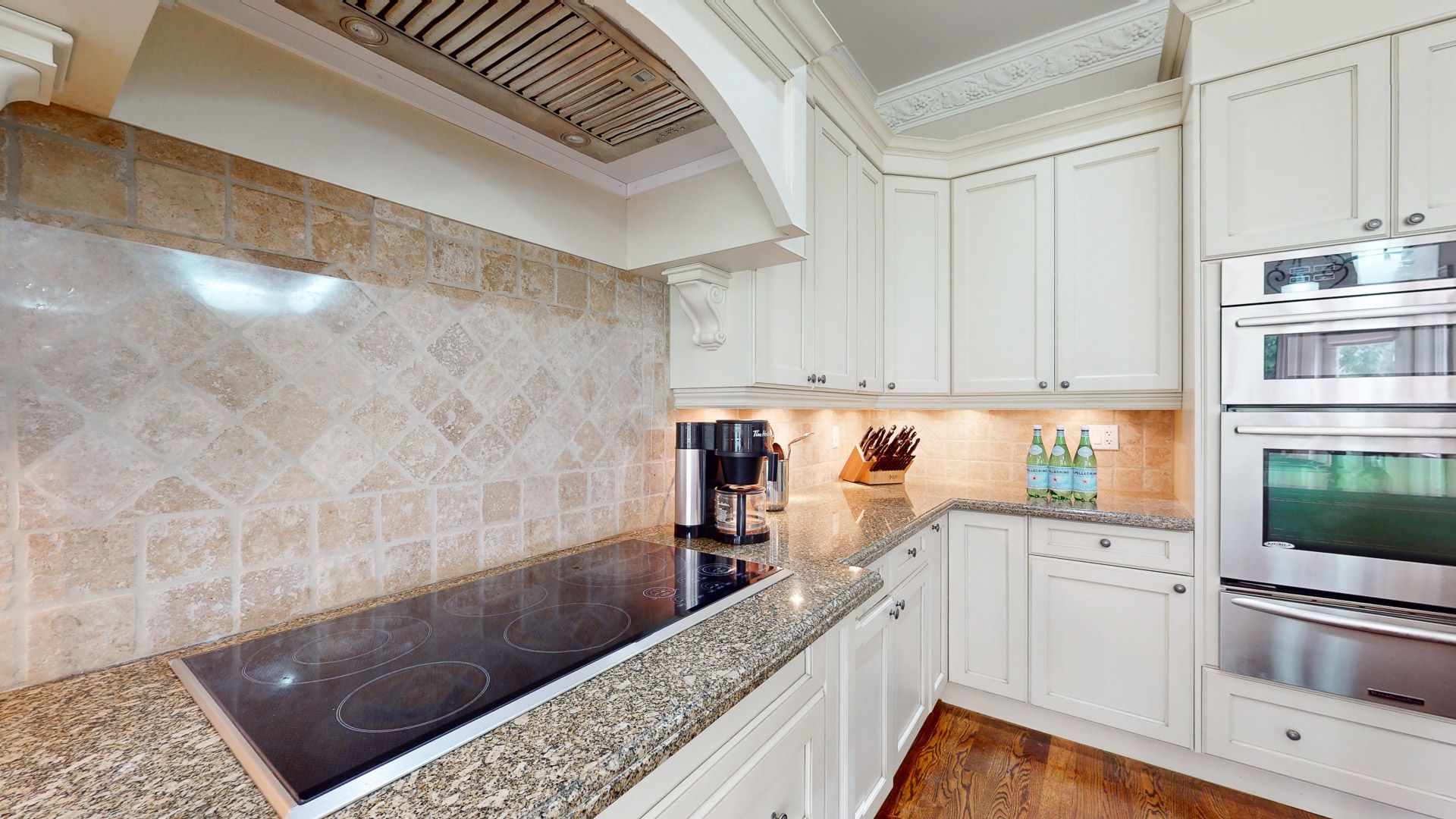 • Large kitchen features solid wood cabinets and high-end appliances.