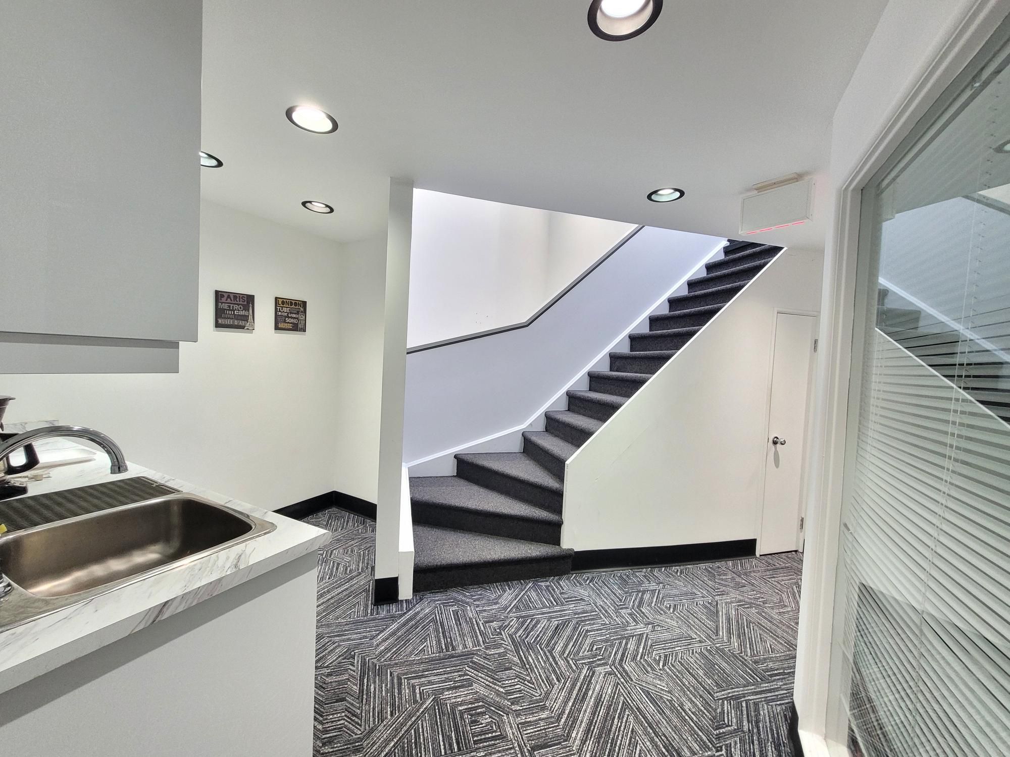 Excellent main floor office space; ideal for many professional users such as accountants or lawyers. Consists of reception, kitchenette, private offices with a boardroom, skylights, and an open work areas.