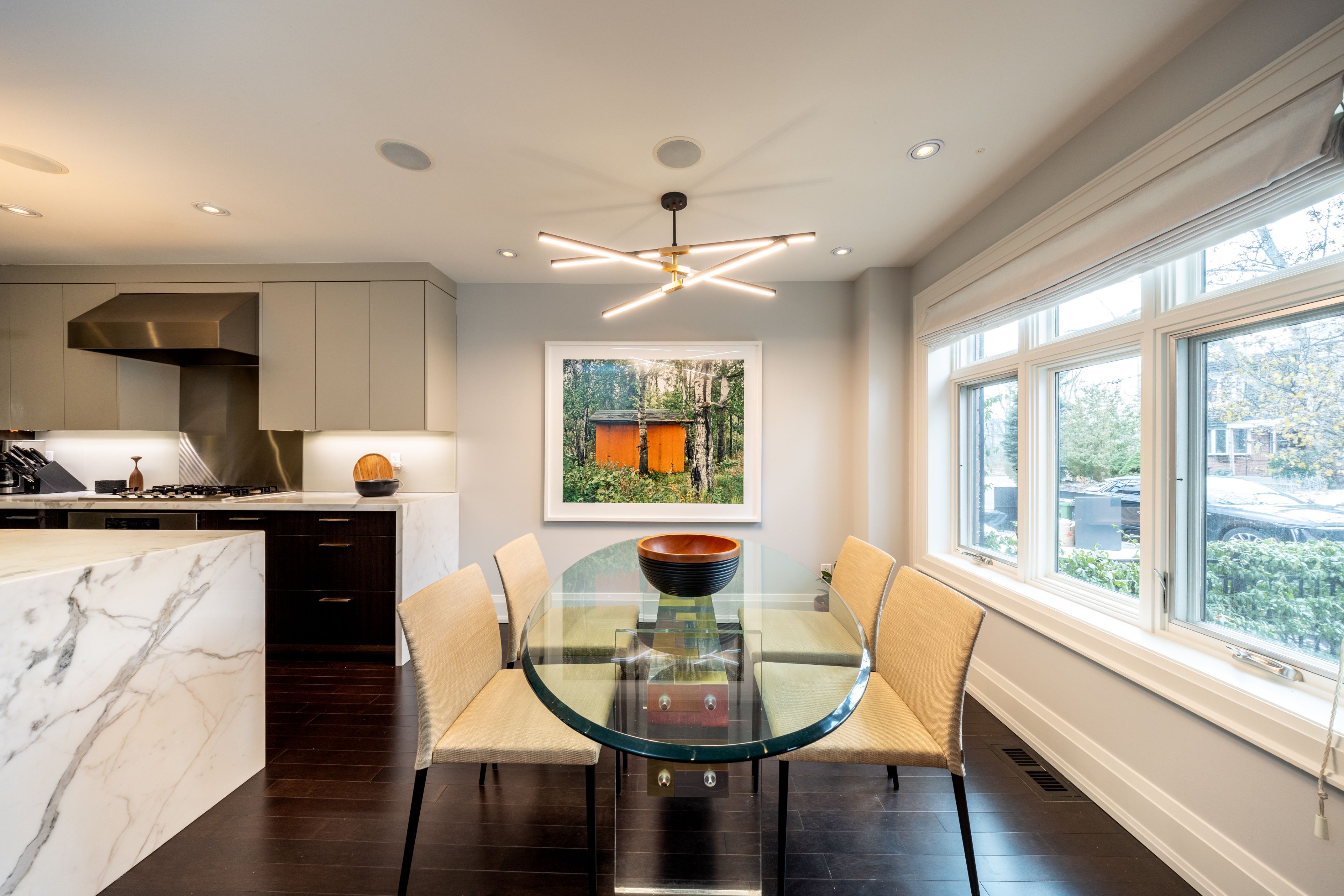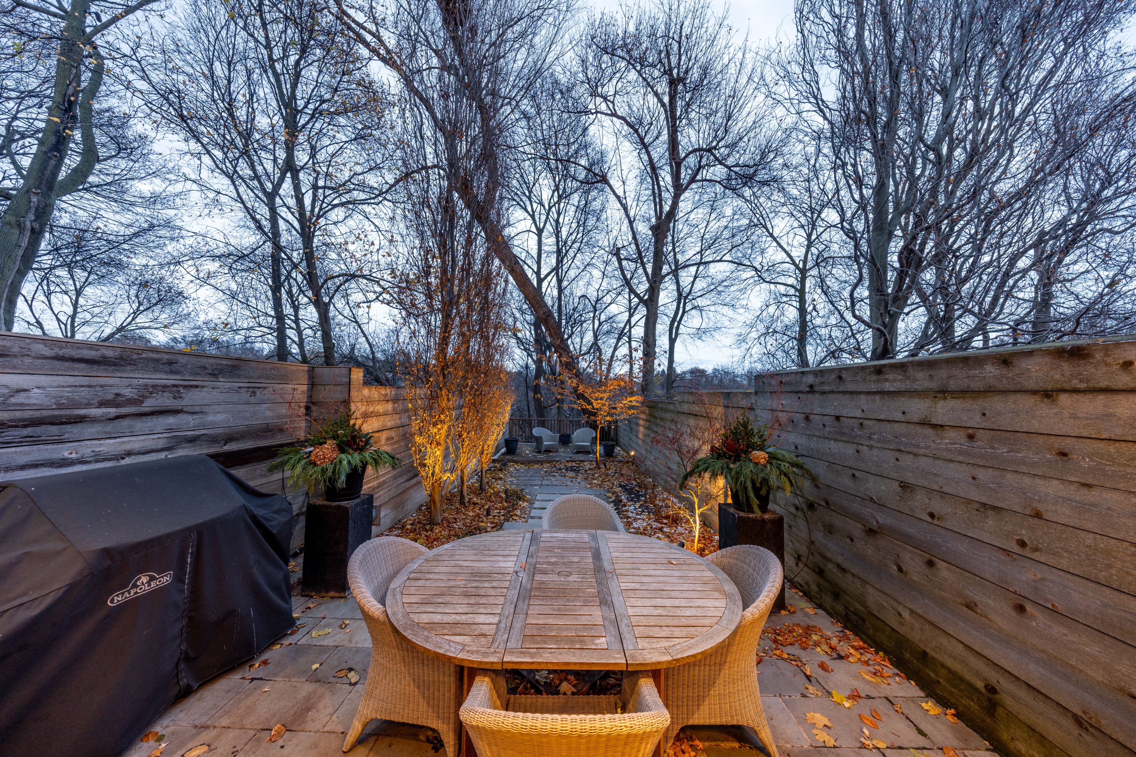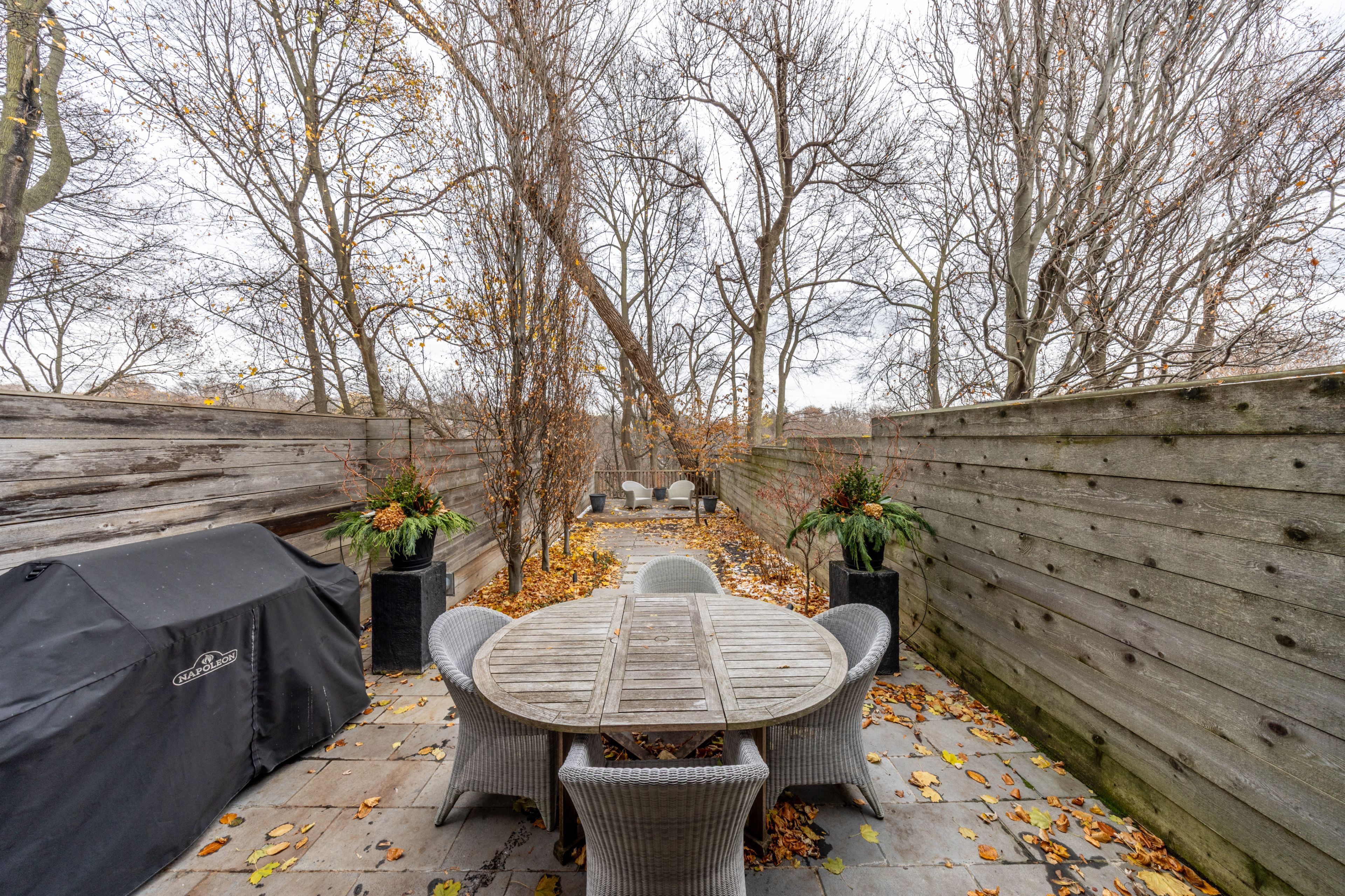 The open-concept main floor is tailored to modern living. A generous dining area overlooks the pretty front garden and tree-lined street, while the large irpinia kitchen anchors the centre of the home with high-end appliances, an oversized waterfall-marble island and extensive work surfaces-ideal for everyday living as well as easy entertaining. At the rear, a sunken living room with custom millwork and fireplace opens to a beautiful decked terrace overlooking the ravine-an especially lovely setting as spring approaches and the canopy begins to fill in. A striking white-granite feature wall adds subtle architectural drama and carries through the home. Upstairs, two serene bedrooms offer a refined, boutique-hotel sensibility. The primary suite sits at the back of the house, with elevated ravine views, custom built-ins, a walk-in closet and access to a luxurious 5-piece semi-ensuite. The second bedroom at the front features west-facing windows over summerhill gardens, along with a built-in desk and closet. The fully dug-out lower level provides flexible space for a family room, office or home gym, complete with front walkout and radiant-heated floors that extend to the outdoor concrete surfaces. At the back, the private, maintenance-free garden and expansive deck create a rare urban retreat, with stunning leafy ravine views soon to come into full bloom. A superior condo alternative, this turnkey home is perfectly suited to a professional couple seeking a polished, low-maintenance residence just moments from green space, the subway, and the very best of summerhill.