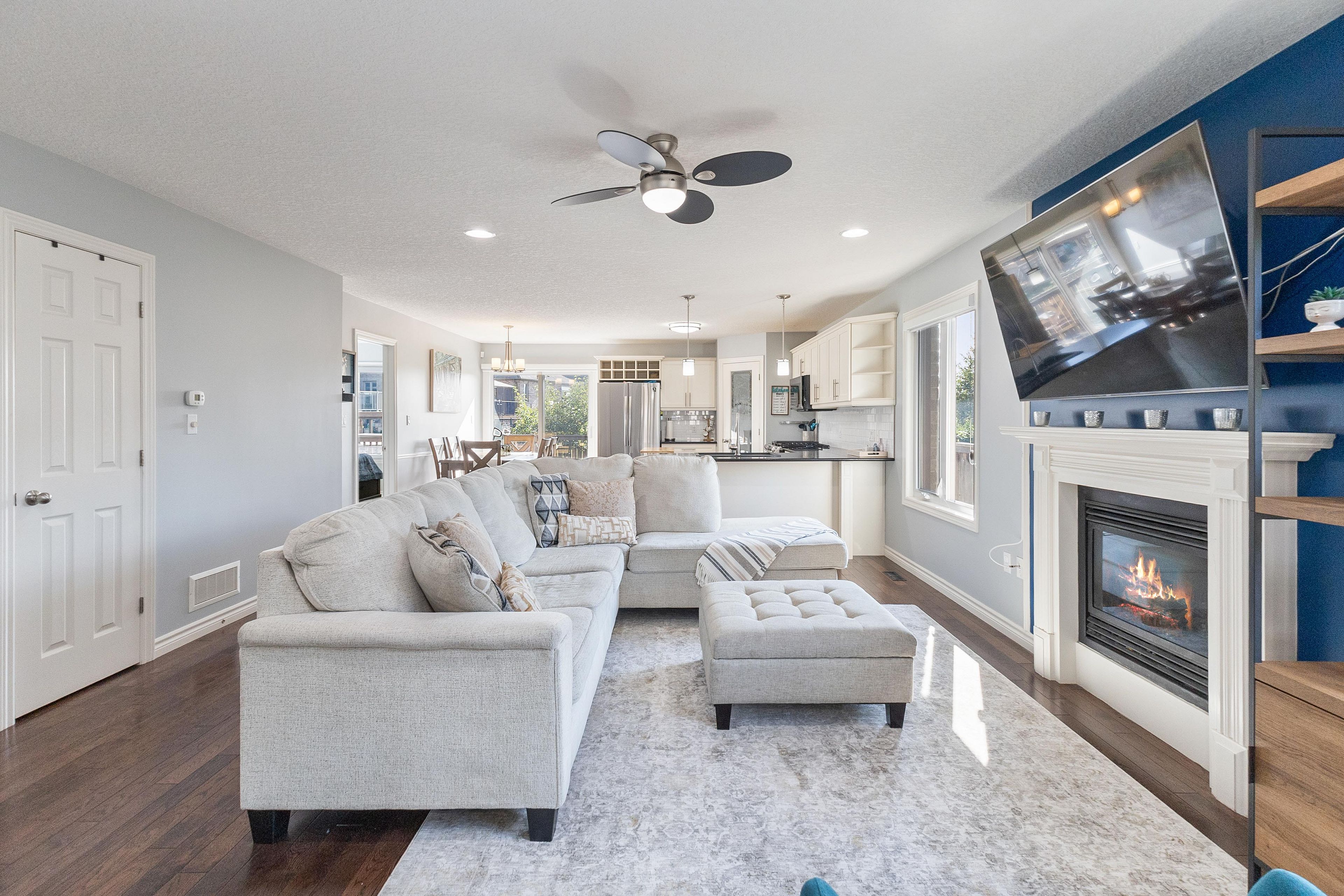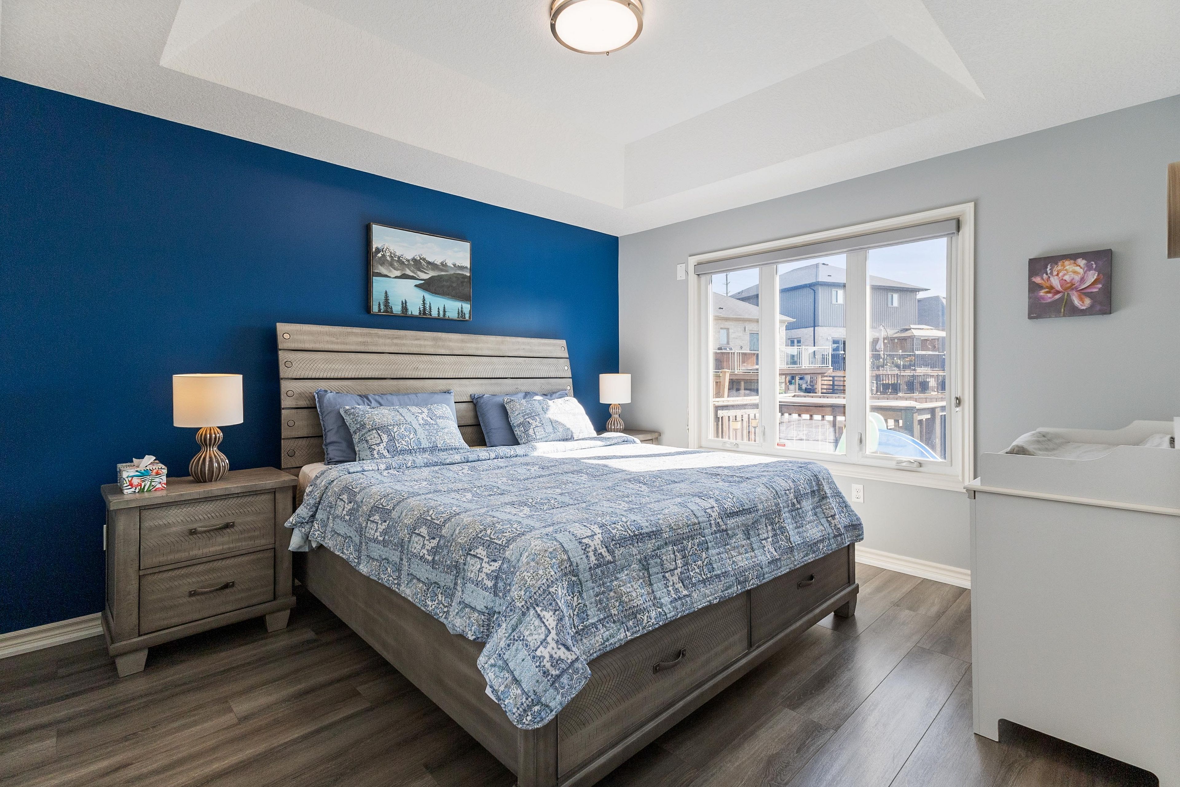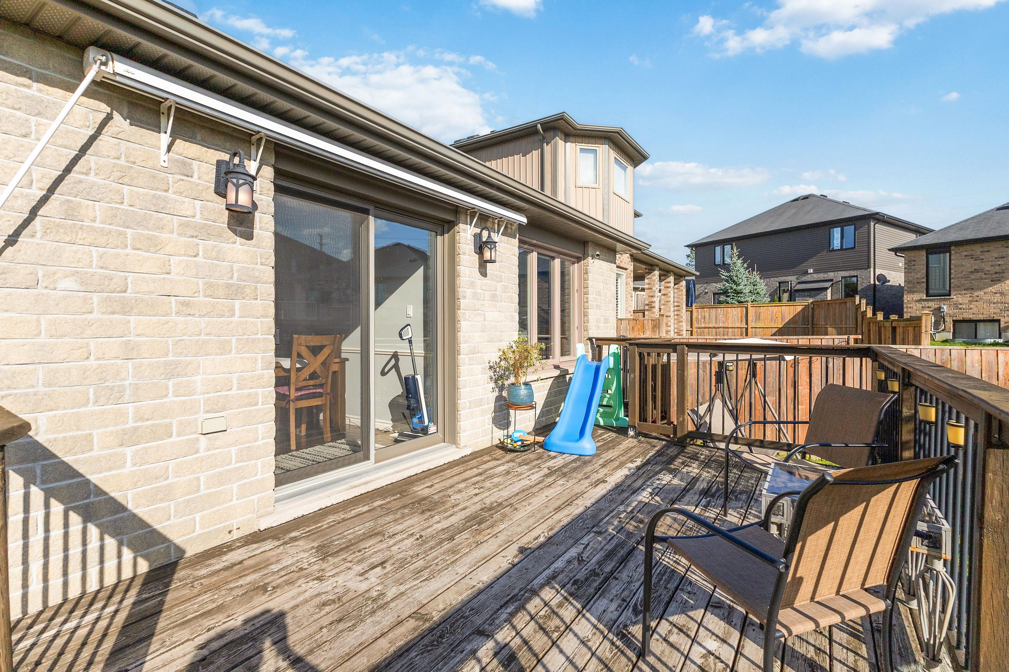 Welcome to one of north london's most desirable communities! This stunning home blends comfort, style, and thoughtful upgrades in every corner, offering plenty of space for both everyday living and entertaining. The main floor features a bright open-concept design with a cozy gas fireplace and a custom kitchen complete with quartz countertops, backsplash, custom cabinetry, stainless steel appliances, and an under-mount sink. From the dining area, step out to your private composite deck, fitted with a custom awning and overlooking quiet green space-perfect for morning coffee or evenings with friends. Upstairs, the primary suite is a true retreat with a tray ceiling, a large walk-in closet, and a spa-like 5-piece ensuite featuring a soaker tub and a glass-enclosed shower with custom tile. The fully finished lower level expands your living space with a spacious great room featuring a custom accent wall, a third bedroom, bathroom, laundry, and abundant storage. A dedicated fitness area and a generous recreation room provide endless flexibility, making it ideal for guests, hobbies, or family fun. Recent updates include professional paint throughout, hand-scraped hardwood and luxury flooring on both levels, upgraded easy-close cabinetry, intricate tile work, and professional landscaping. An oversized double garage with inside entry and a fenced yard add convenience and curb appeal. Ideally located just steps from excellent schools, parks, trails, and shopping, this home combines elegance, functionality, and a low-maintenance lifestyle in one of london's premier neighborhoods. Whether you're hosting a dinner party, relaxing in your backyard oasis, or exploring nearby amenities, this property truly has it all and is move-in ready for its next owner. Don't miss the chance to call this gorgeous home your own schedule your showing today!
