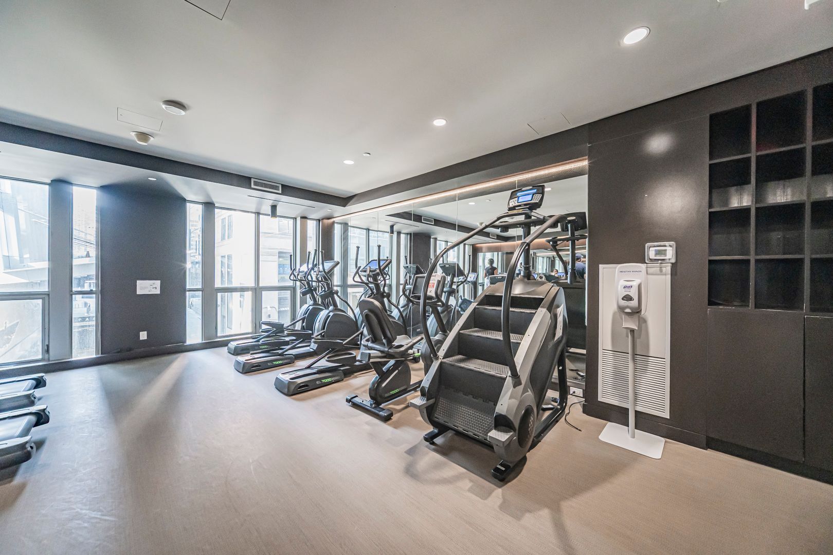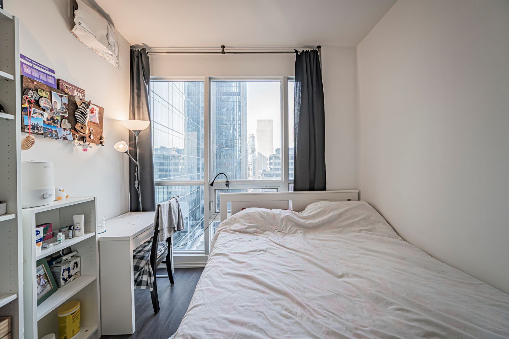 Rare find! Large 2 bdrm + study, quiet corner unit with south west exposure! 821 sq ft plus big balcony. High floor suite, luxurious building tucked into the very beating heart of toronto's powerful financial district, steps to everything one might need, toronto path network and subway line at your doors. Featuring 9 f smooth ceilings, floor to ceiling windows and gorgeous city views, 2 large sun filled bedrooms, modern kitchen, open concept layout. Fabulous building amenities include 24 hr concierge, gym, party room, billiard room, golf simulation, outdoor terrace w/bbq, guest suites & more.